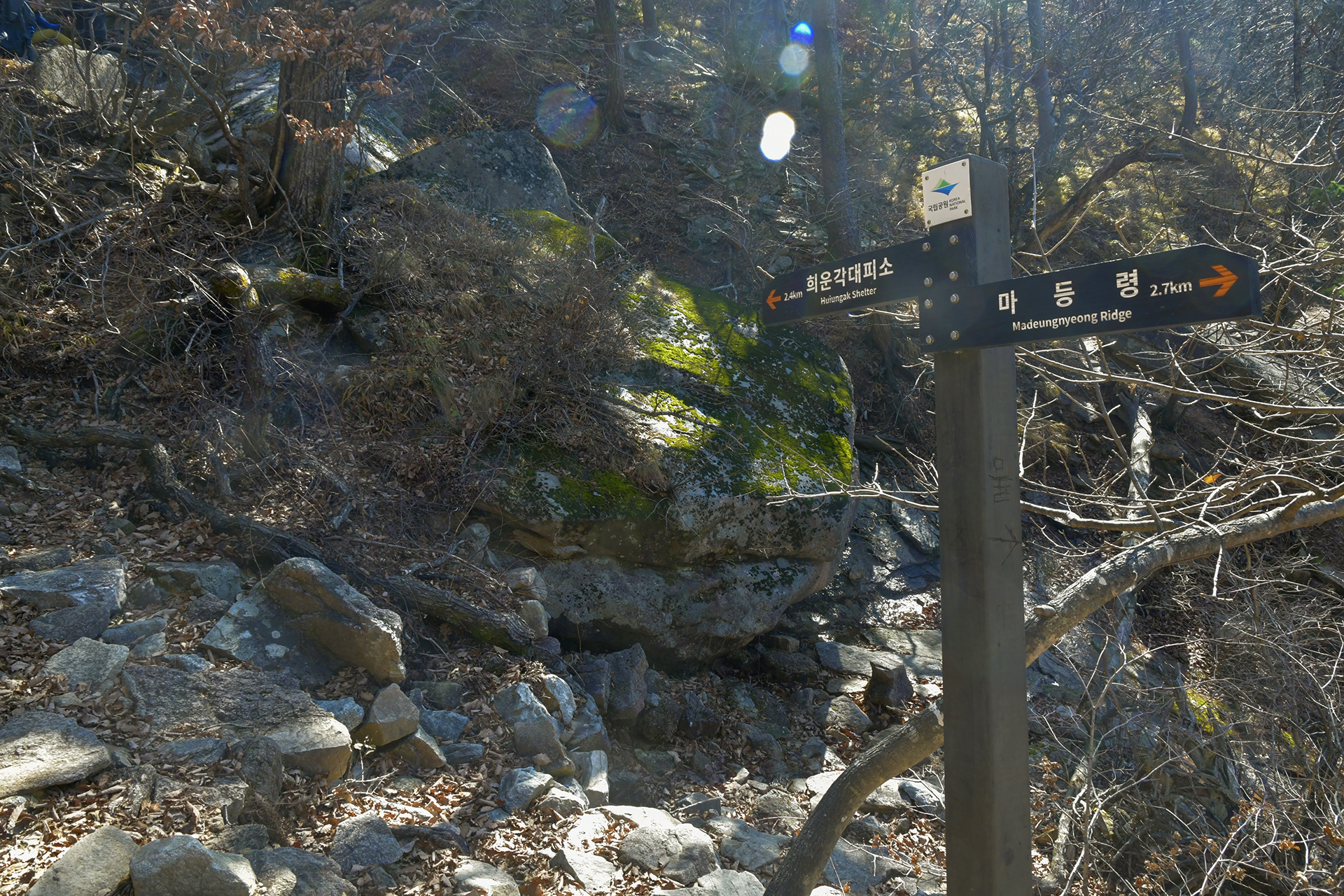 신선대에서 내려오는 길은 별 이벤트 없이 쭉쭉 내려와 30분만에 무너미고개에 도착했다.