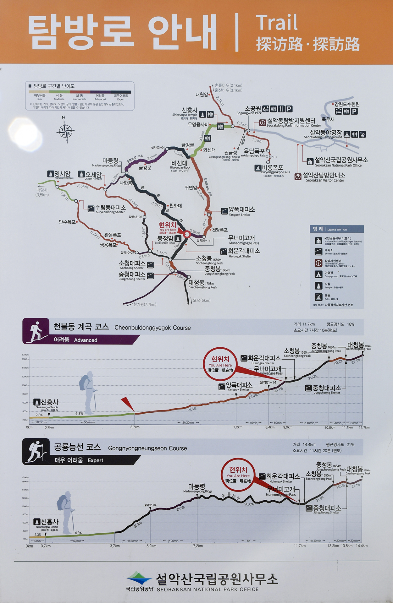 잠시 천불동계곡 코스 탐방로 안내도를 살펴본다.