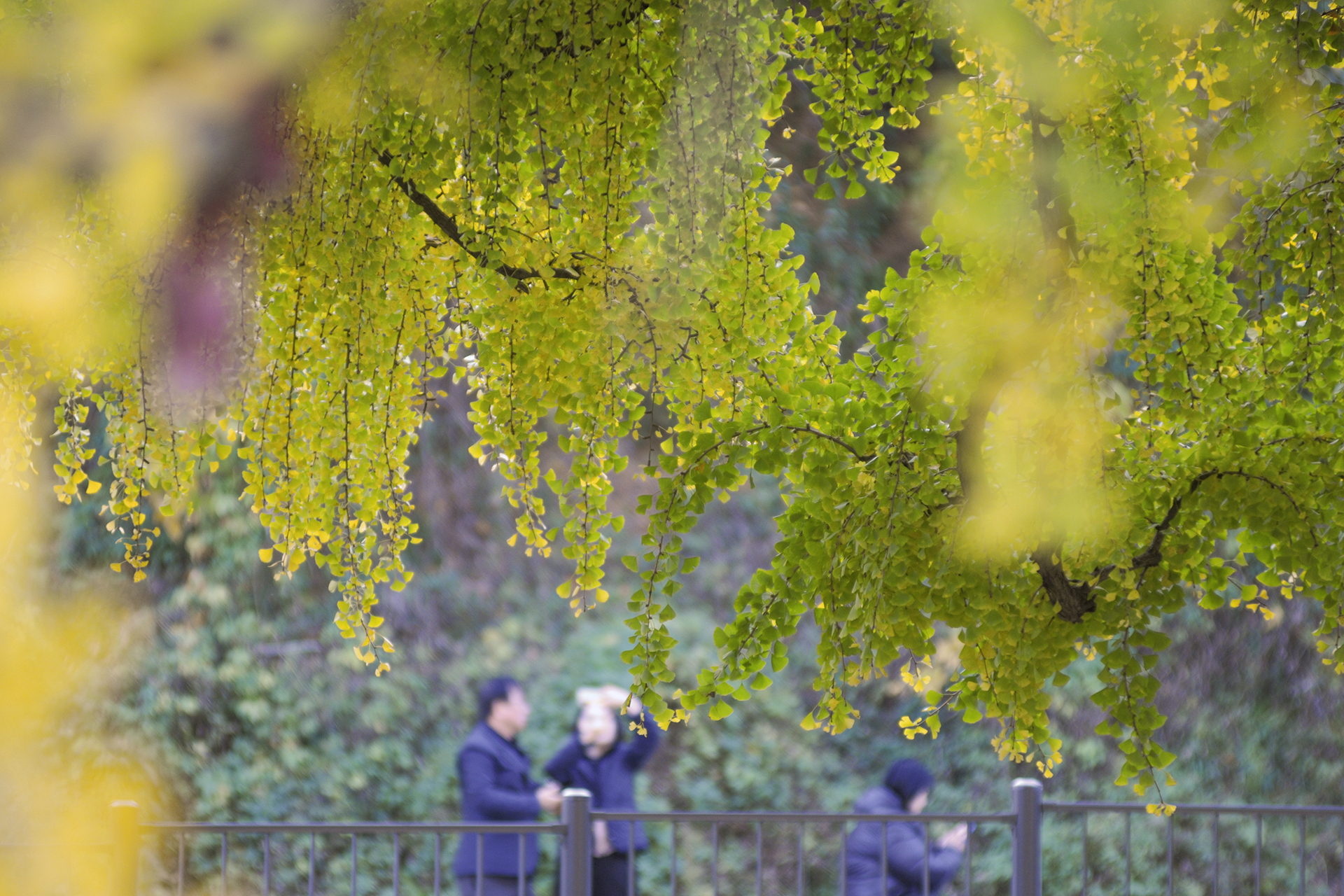 윗쪽은 노랗게 물들었는데 아래쪽은 아직,,