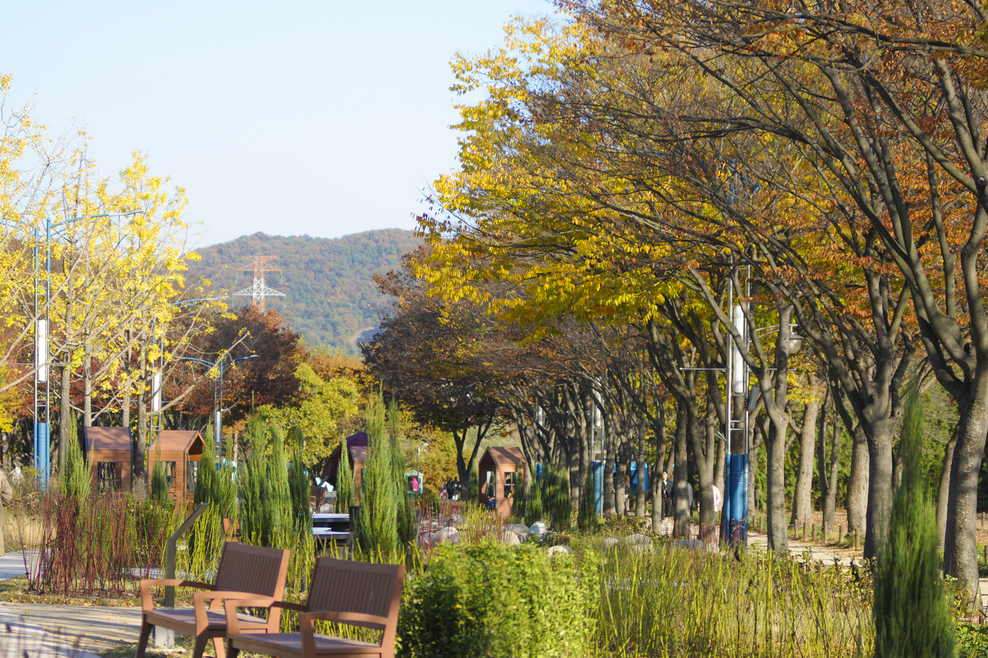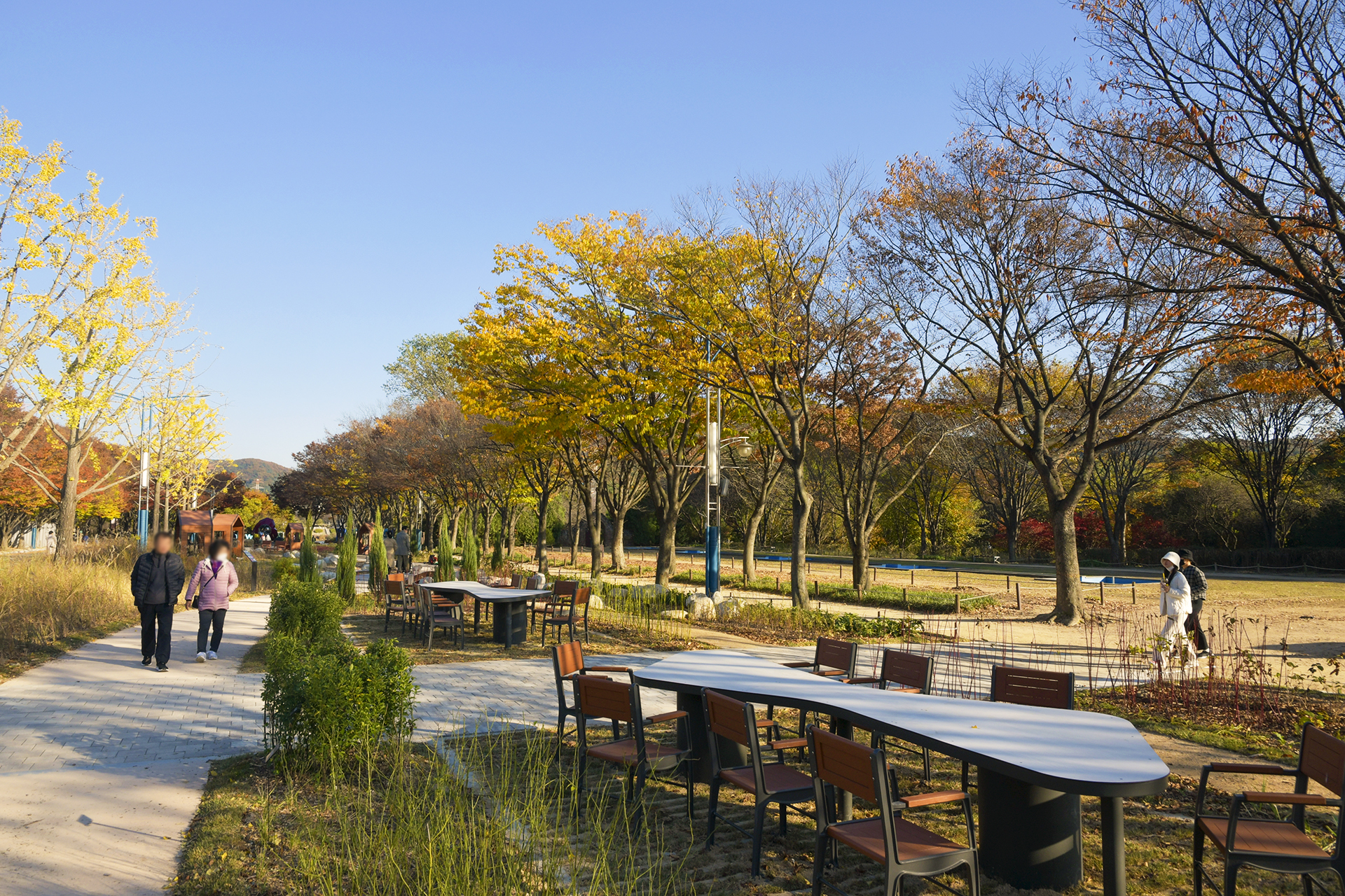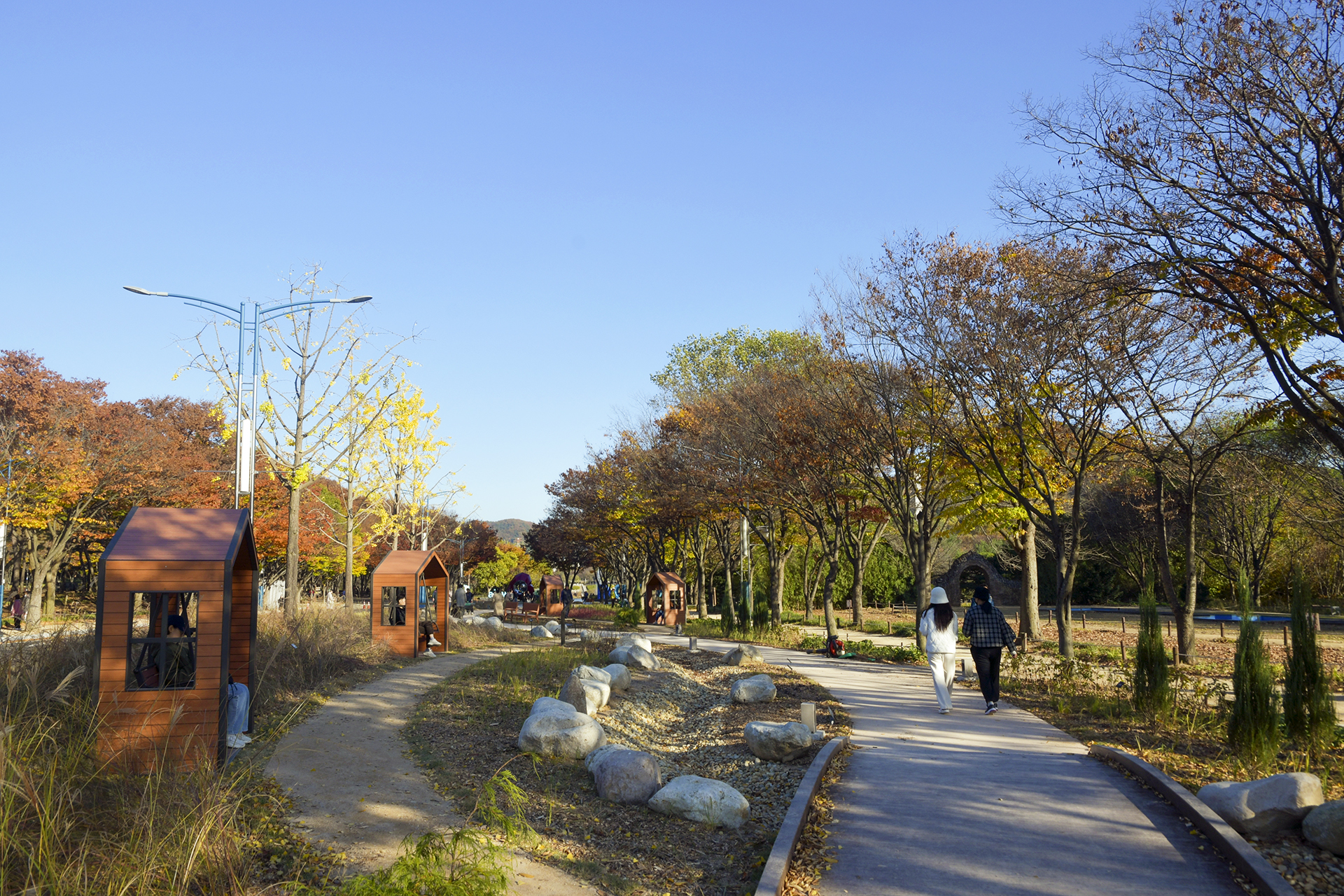 진입로 우측에 새로운 산책로와 휴식처가 생겼고,