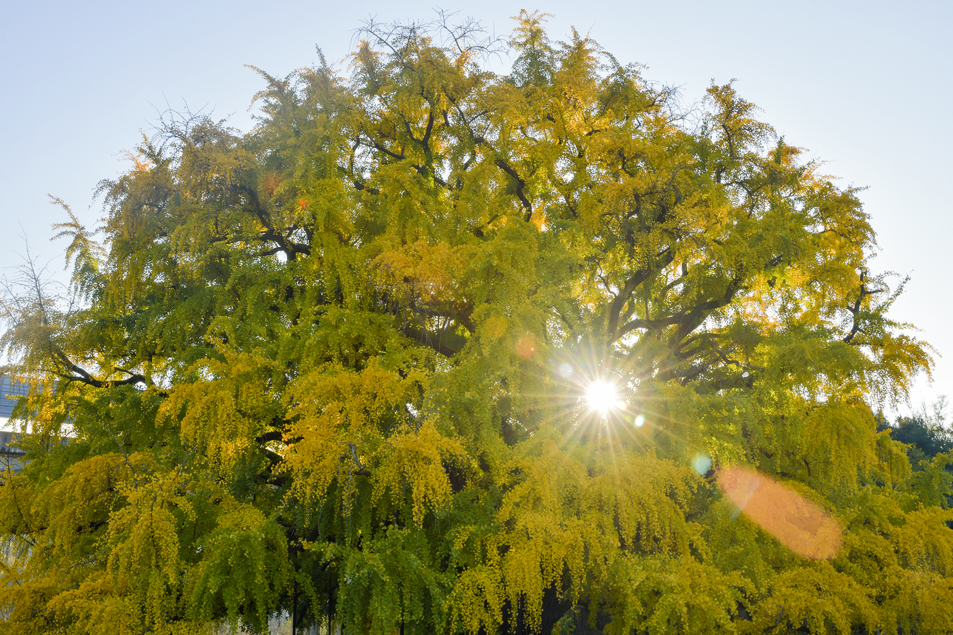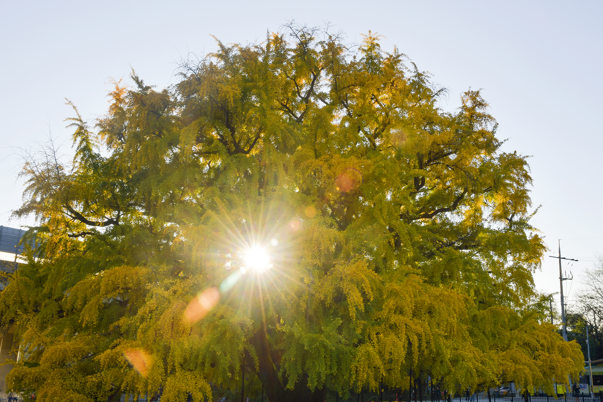 동네 느티나무 상황만 지켜보다 늦어버린 단풍 시기,