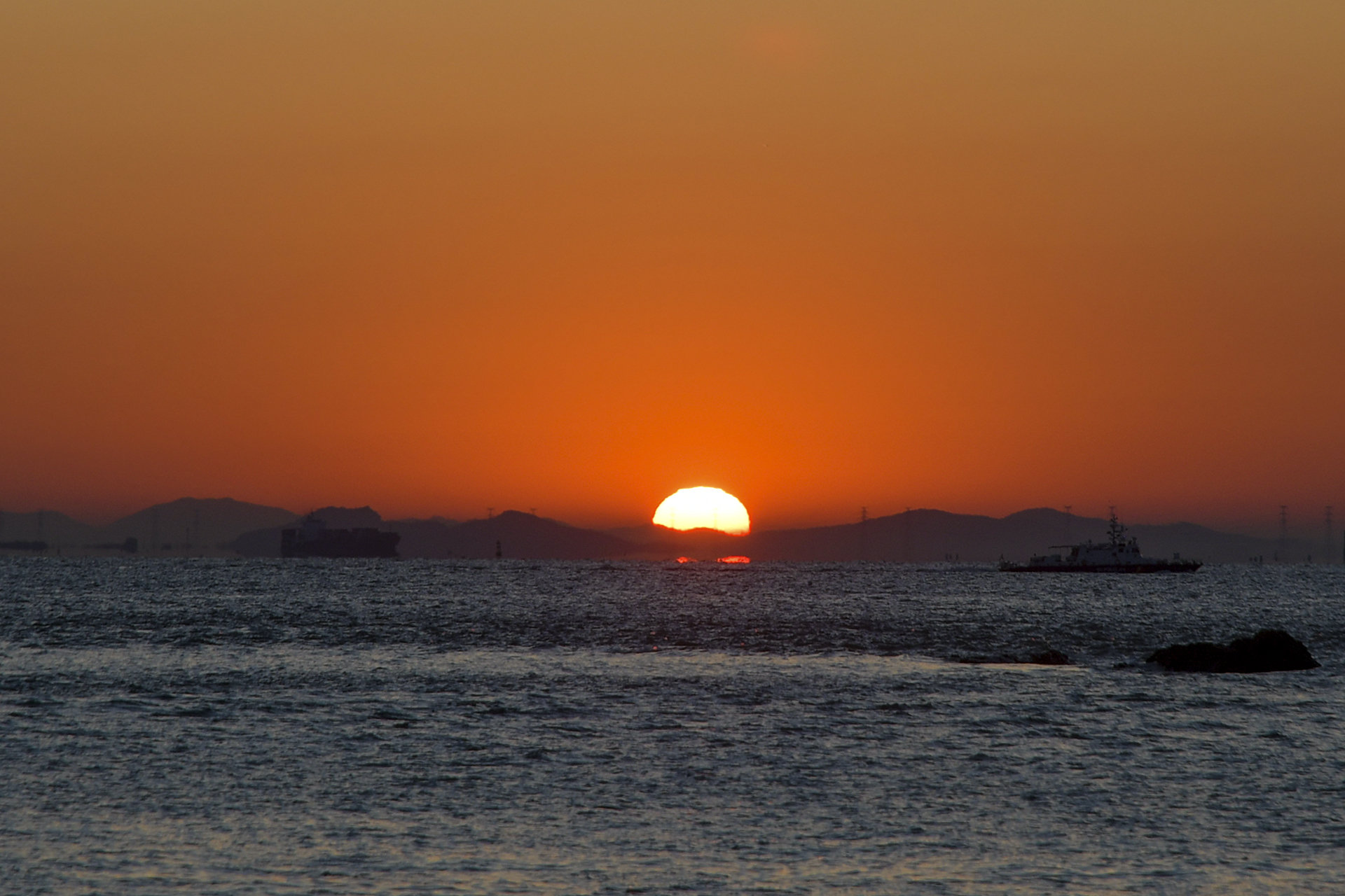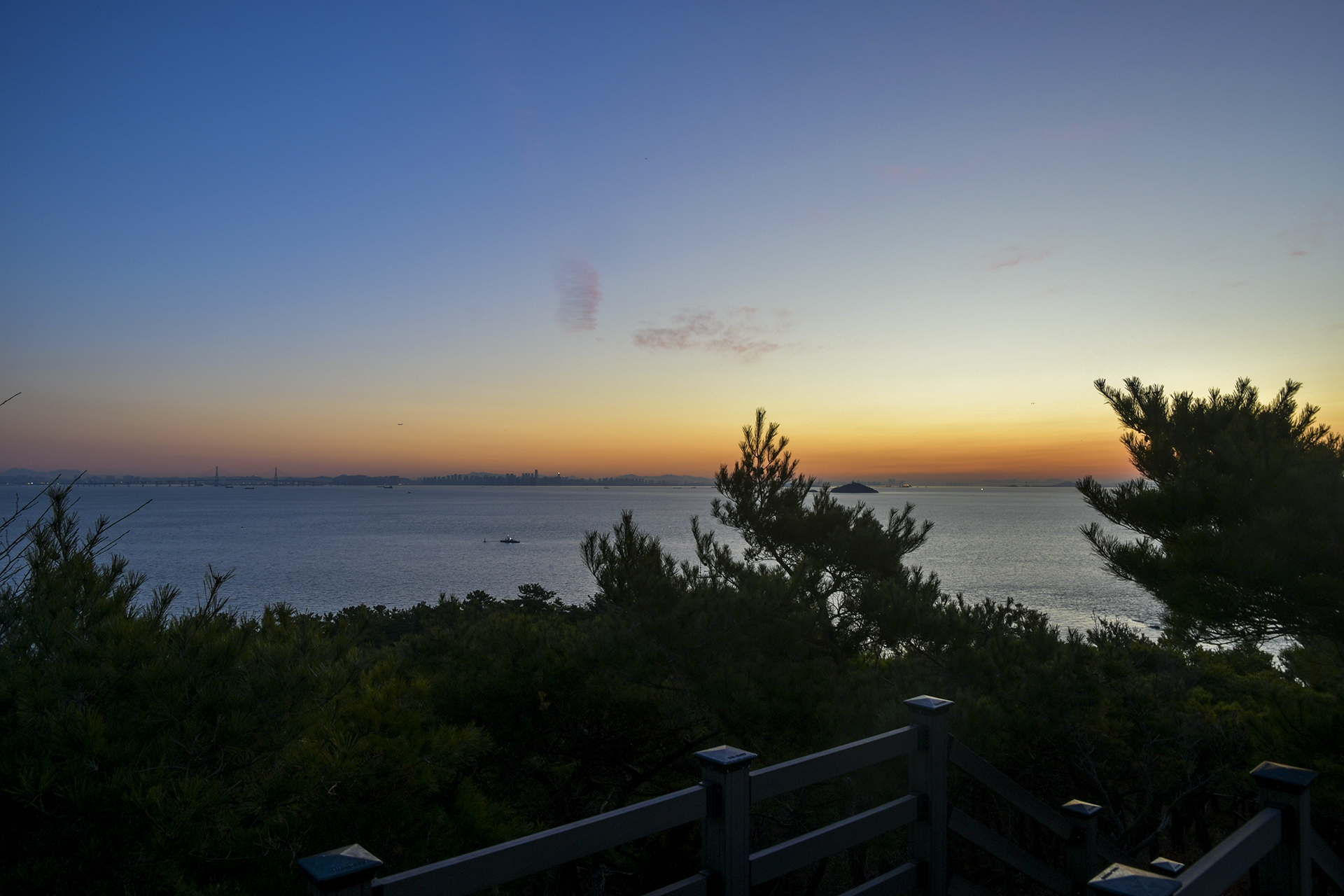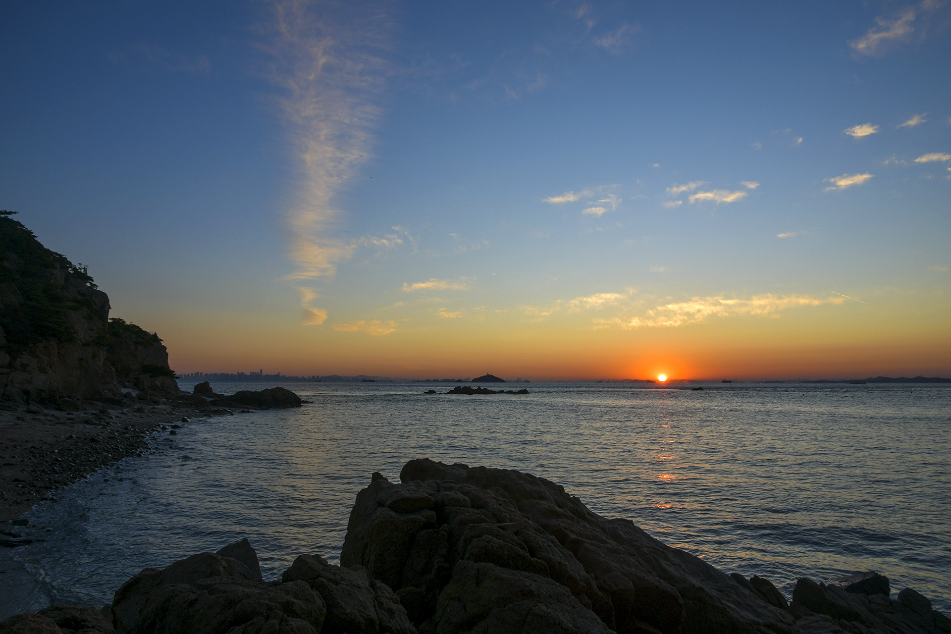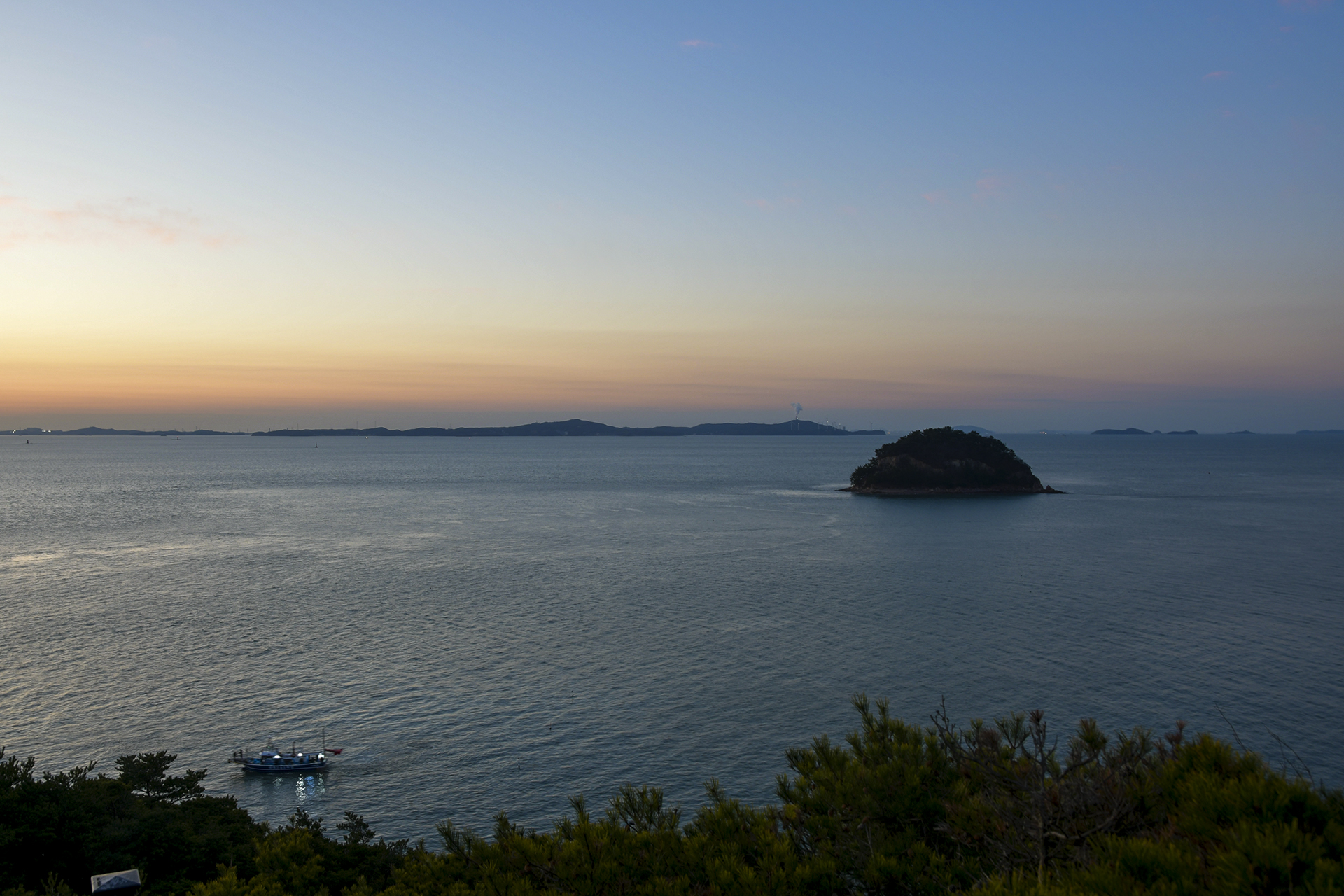 인천 앞바다의 수많은 섬들이 옹기종기 모여 하나의 산맥을 이룬 너머로 오늘 아침 해가 떠오를 참이다.