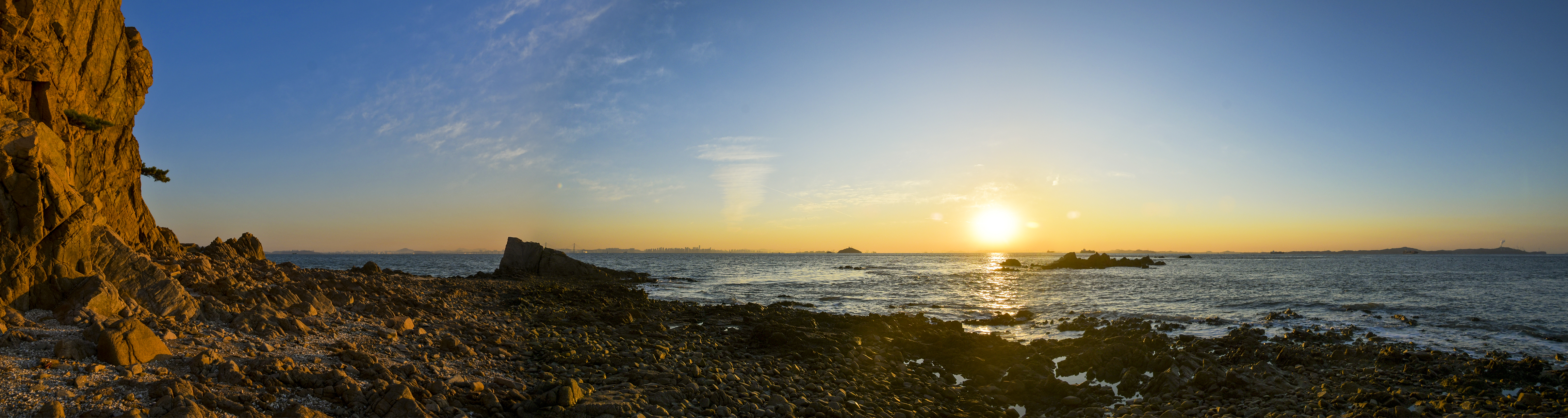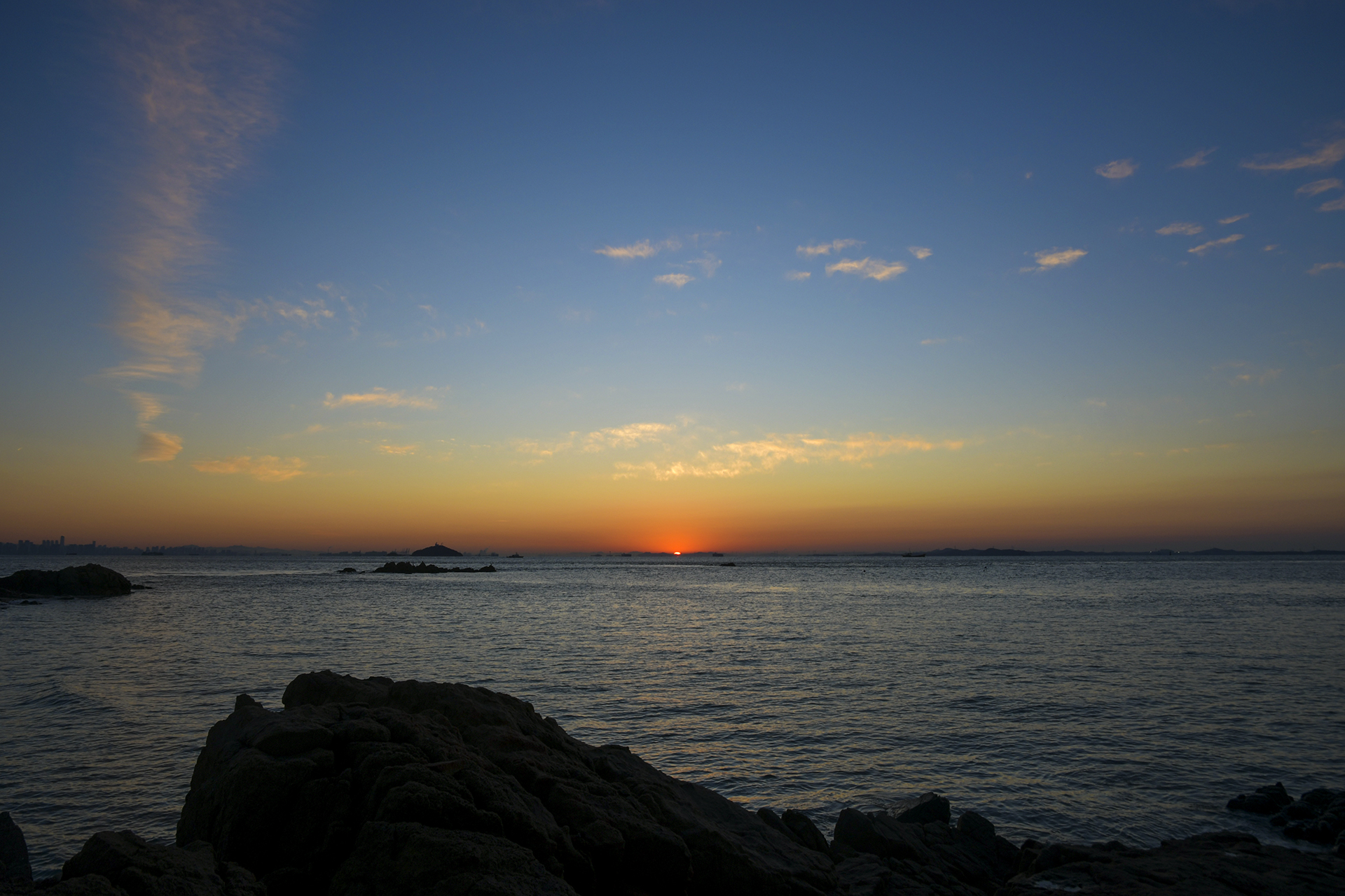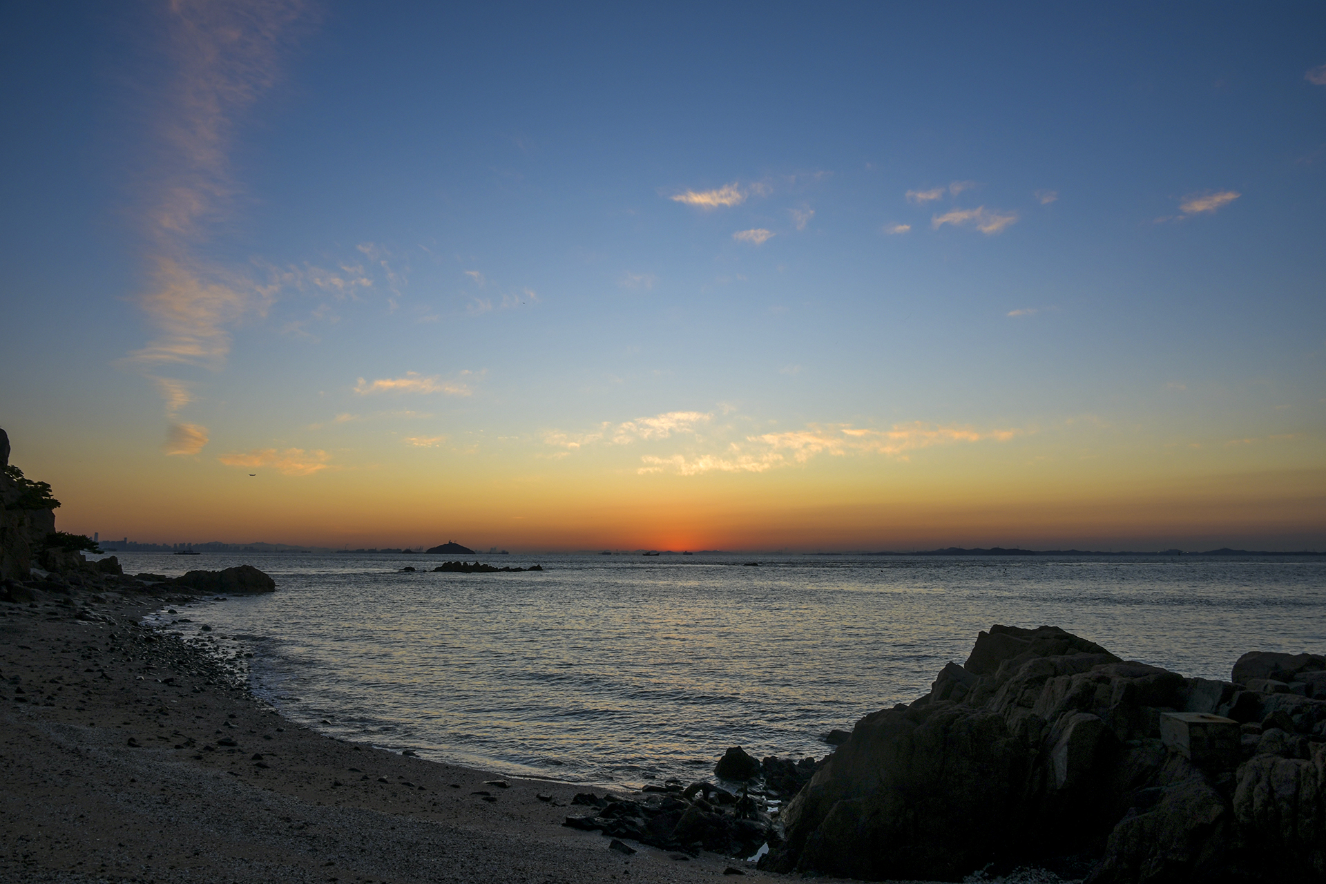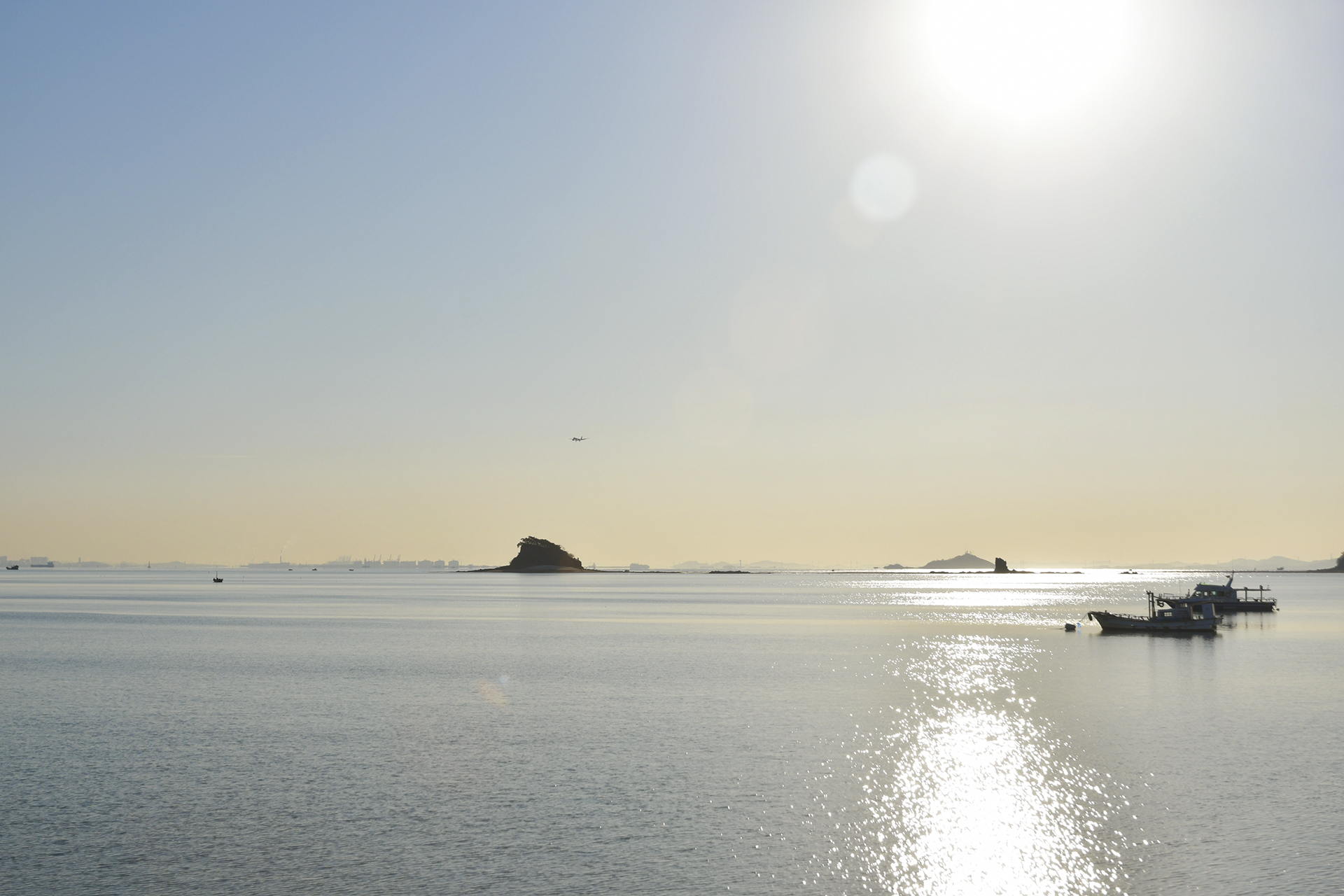 인천 앞바다의 수많은 섬들이 옹기종기 모여 하나의 산맥을 이룬 너머로 오늘 아침 해가 떠오를 참이다.