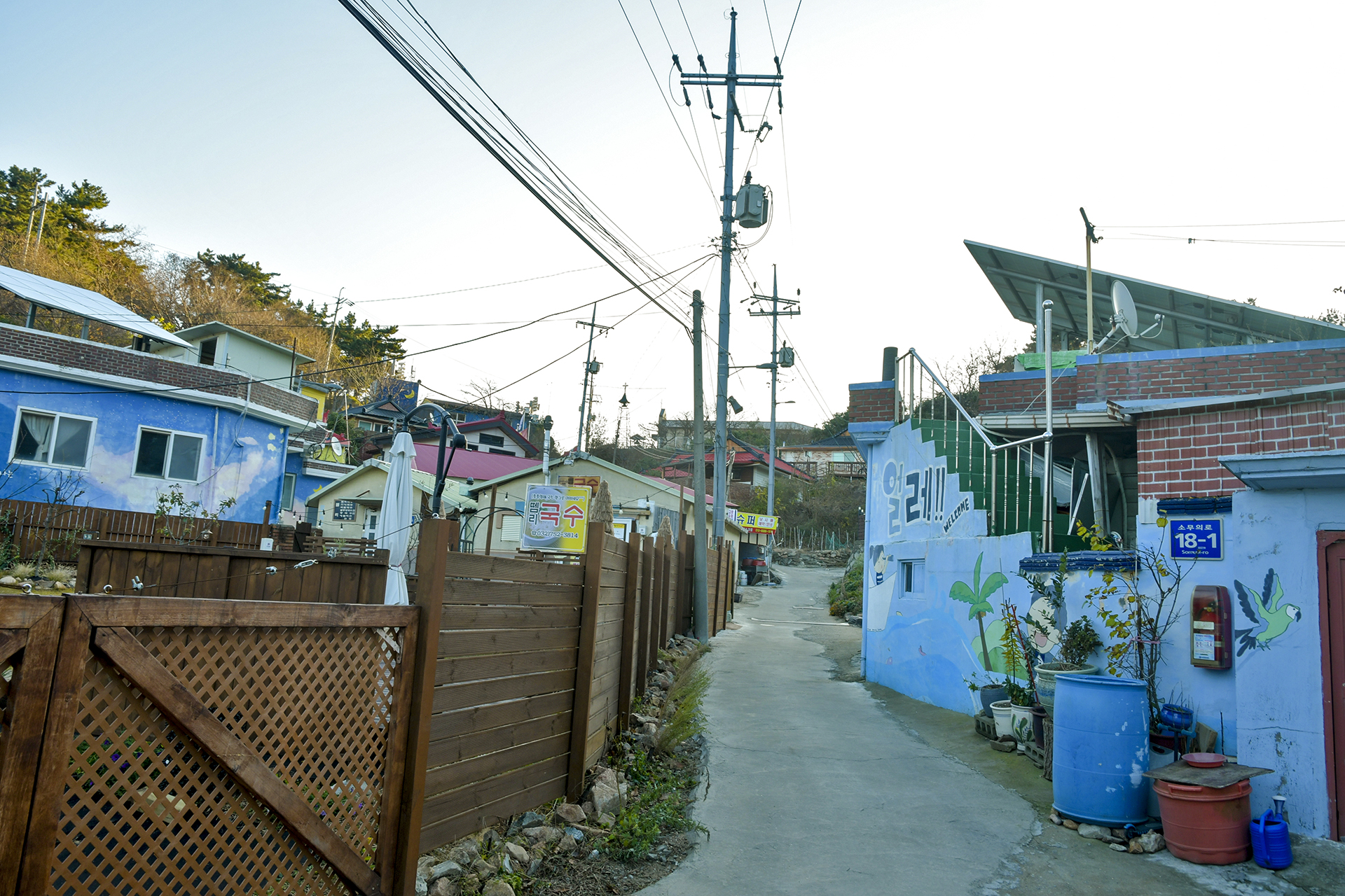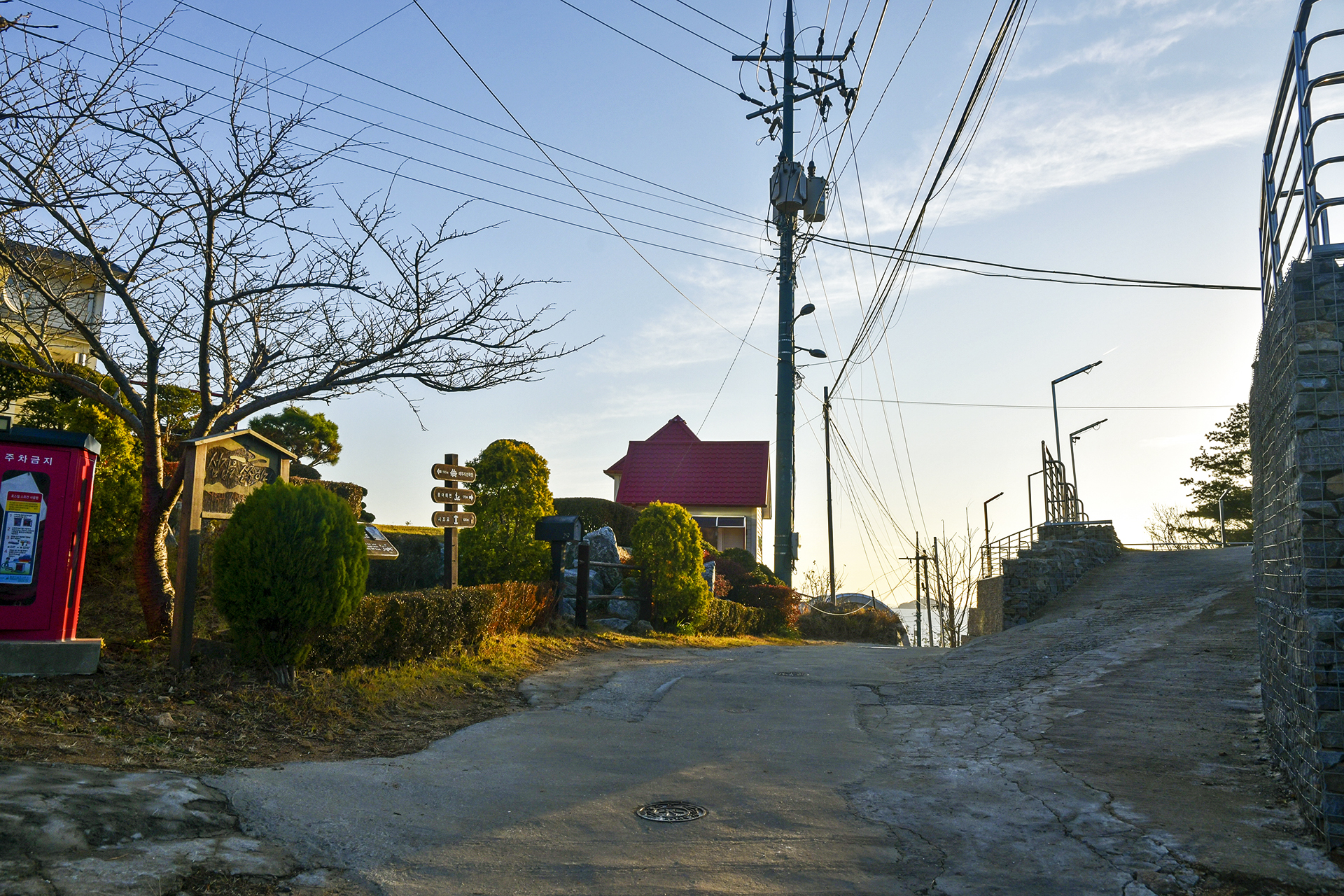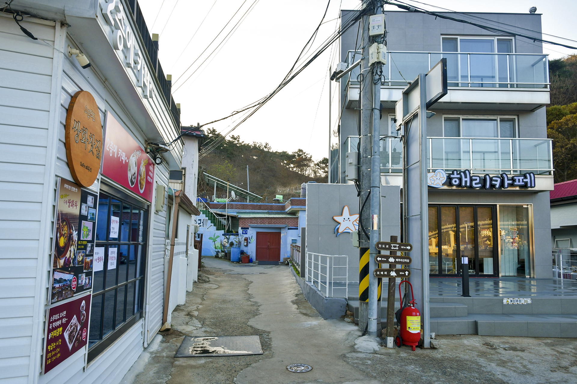 카페 사이로 모예재 가는 길이 안내되어 있고, 90m만 마을길로 올라가면 쉽게 몽여해변으로 갈 수 있다.