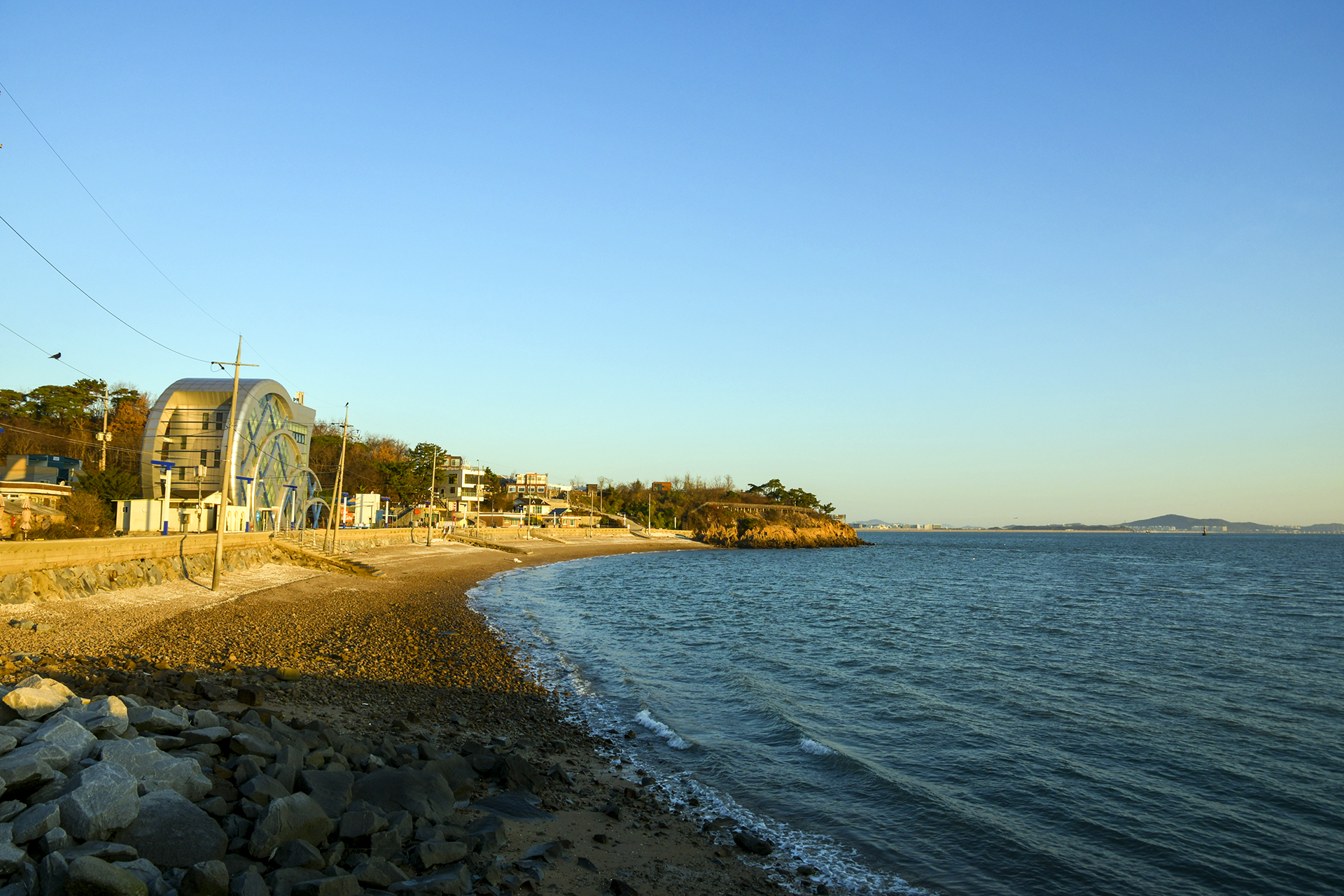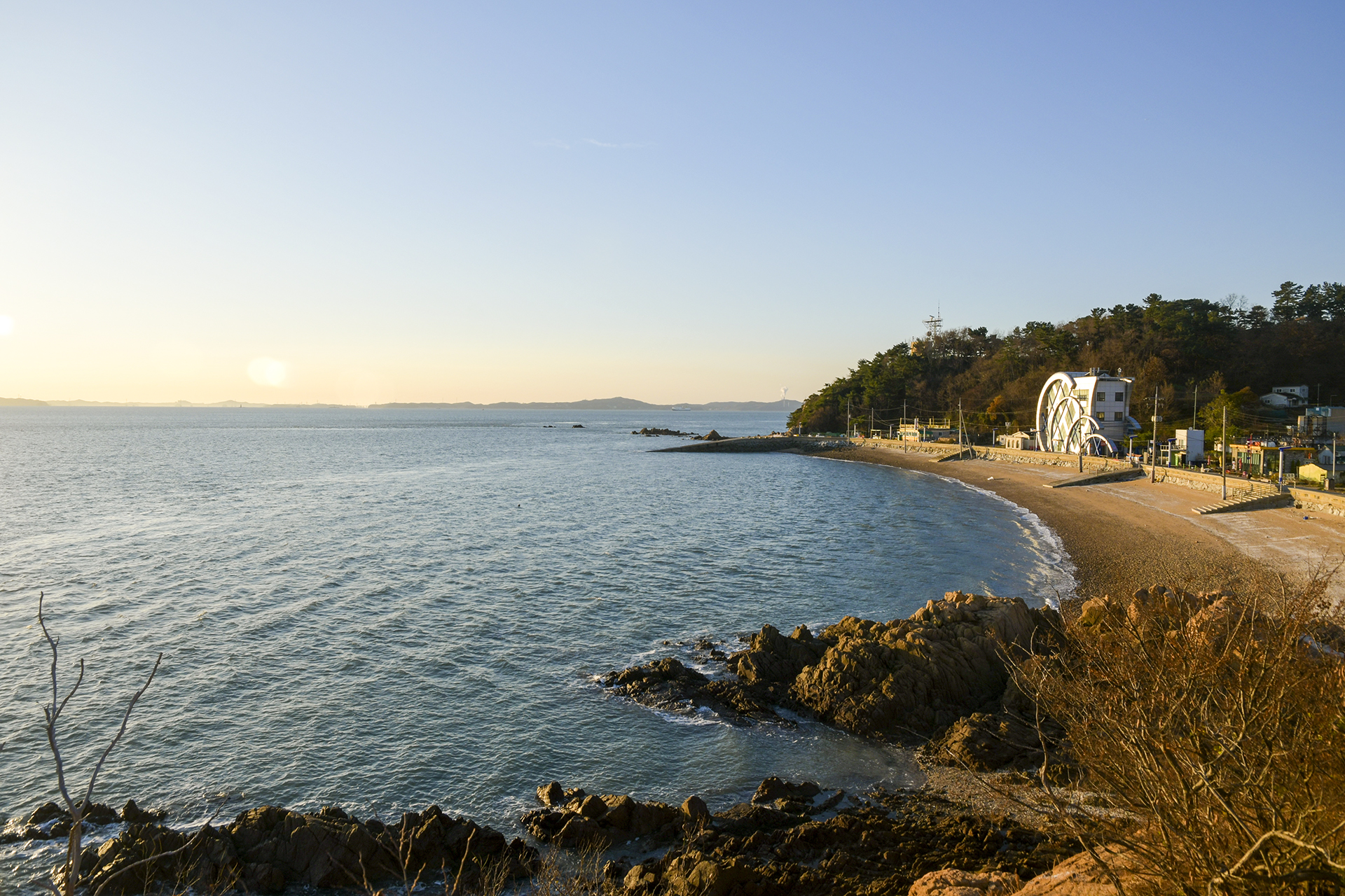 돌아본 몽여해변, 저 하얀건물은 예전에는 섬이야기박물관이었는데, 지금은 소무의도 스토리움으로 이름이 바뀌어 있었다.