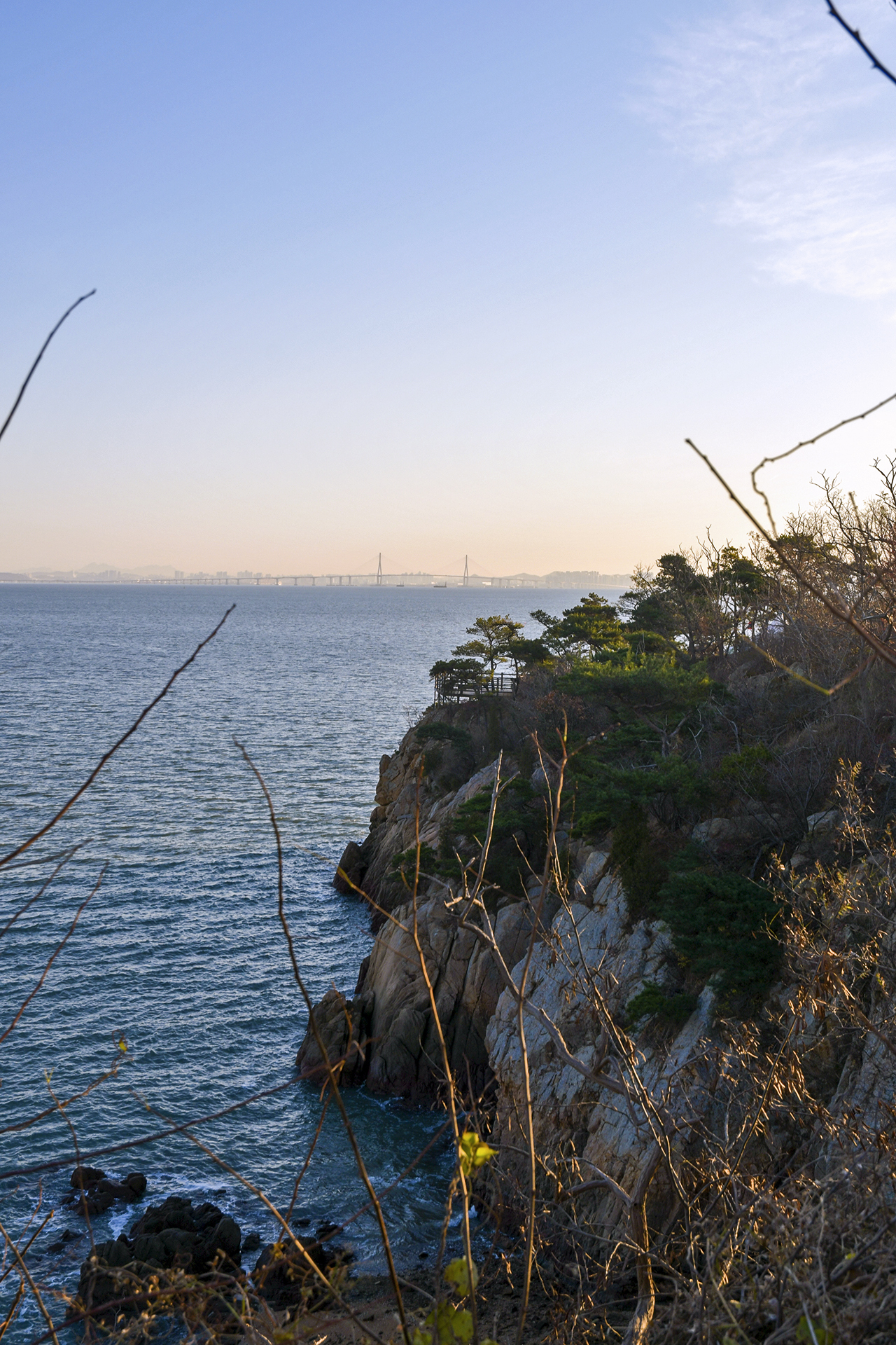 인천대교 조망이 아주 좋은 부처깨미, 스카이라인은 송도로 이어지고 있다.