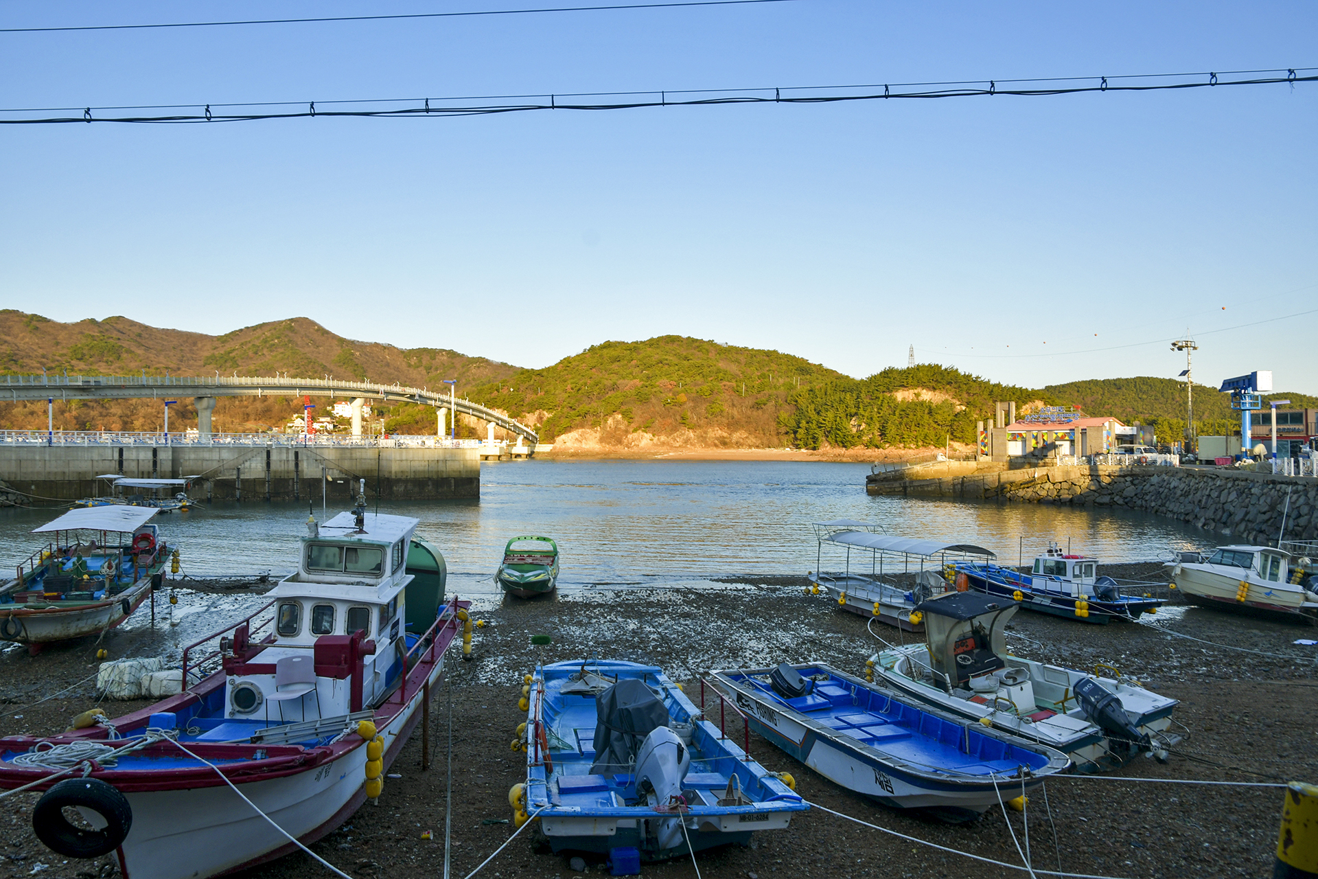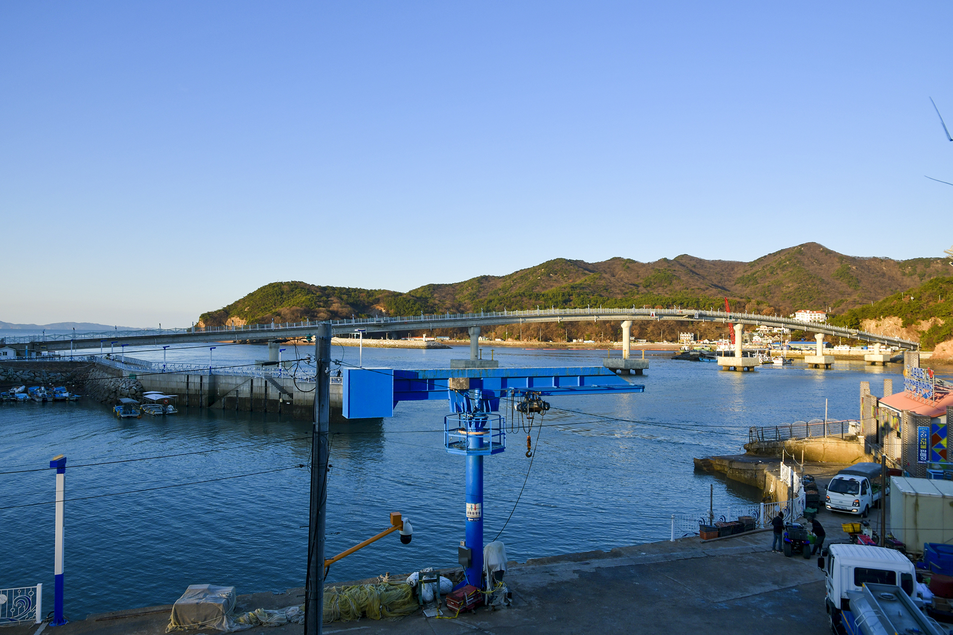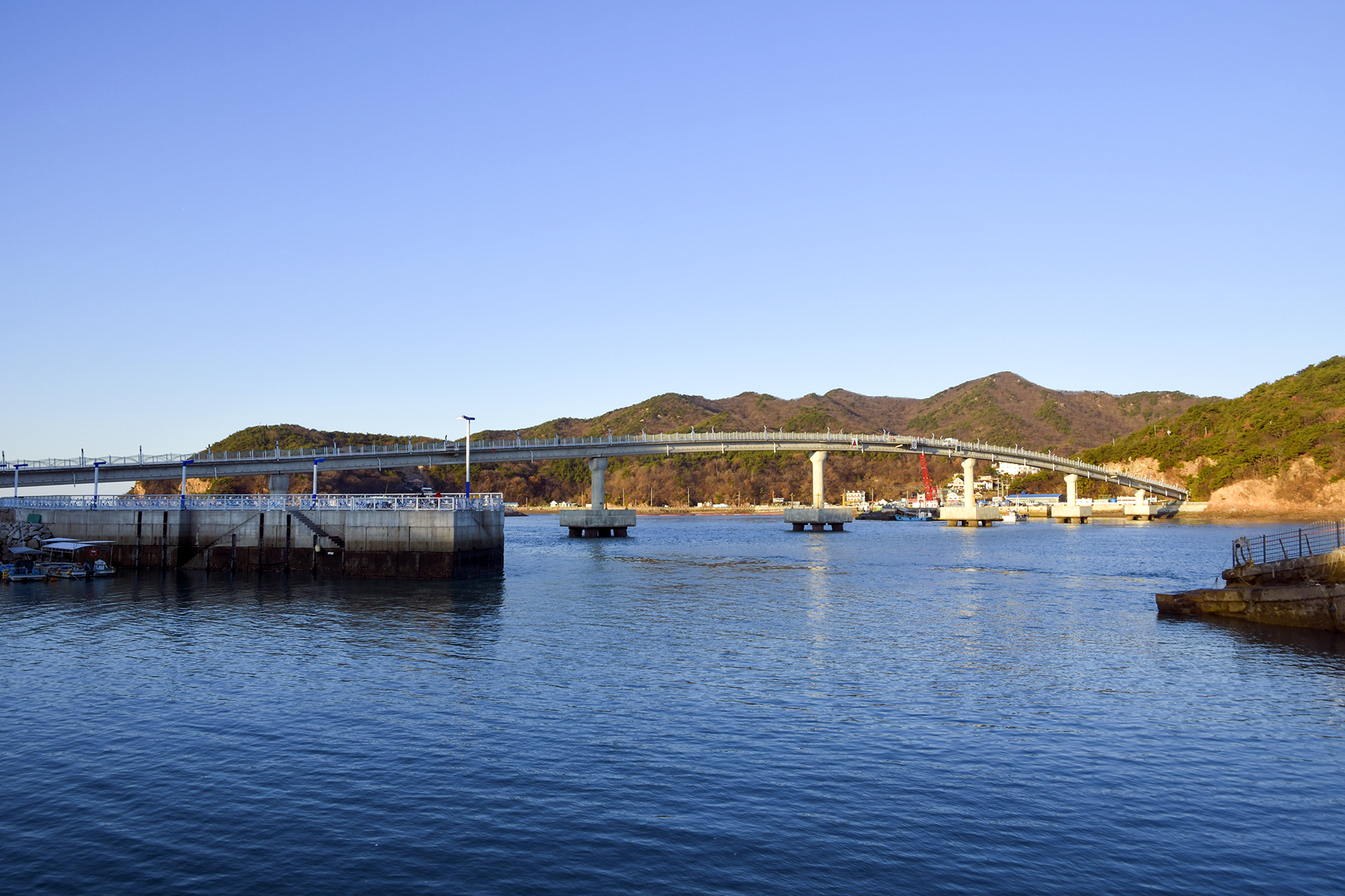 떼무리항과 인도교의 모습,