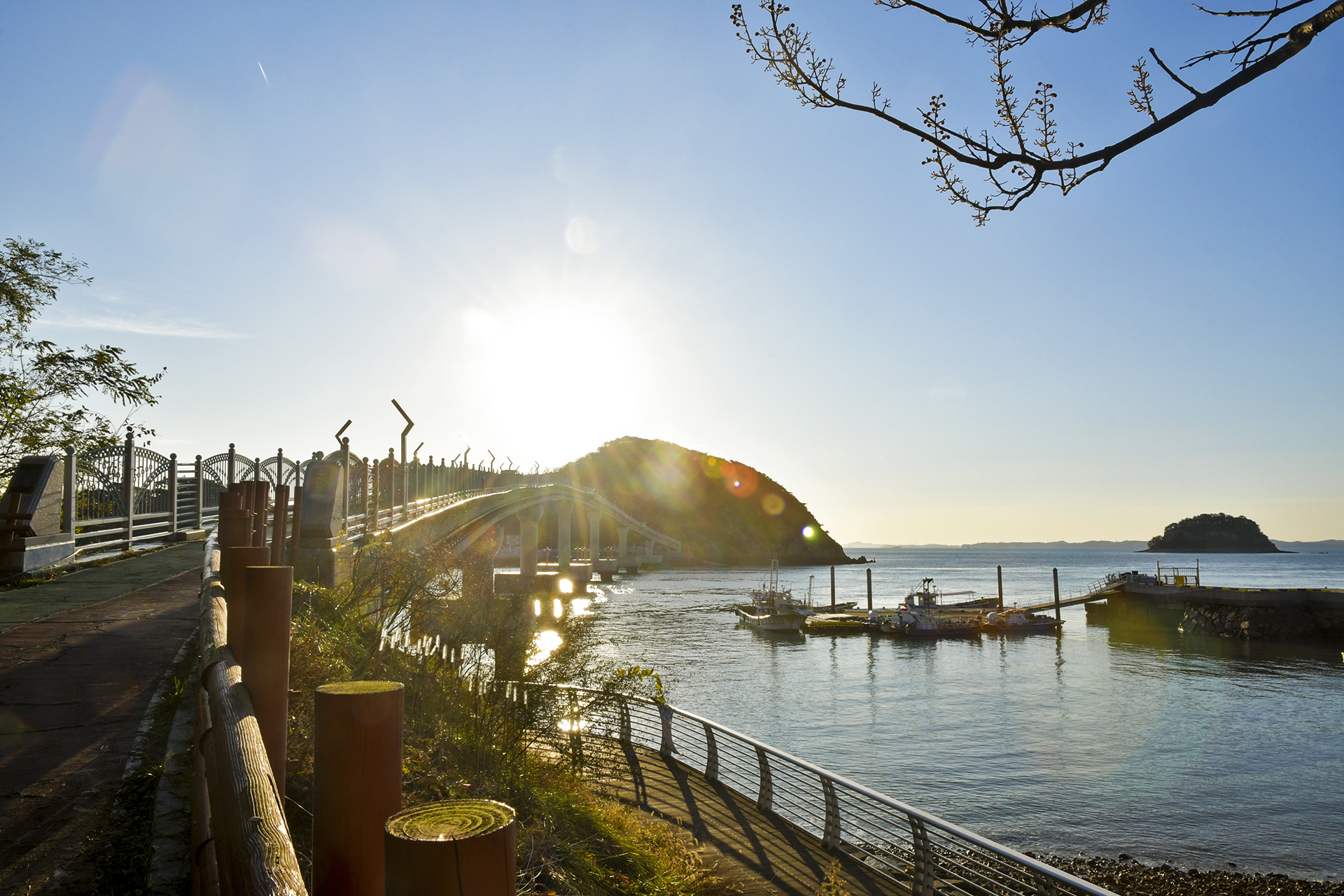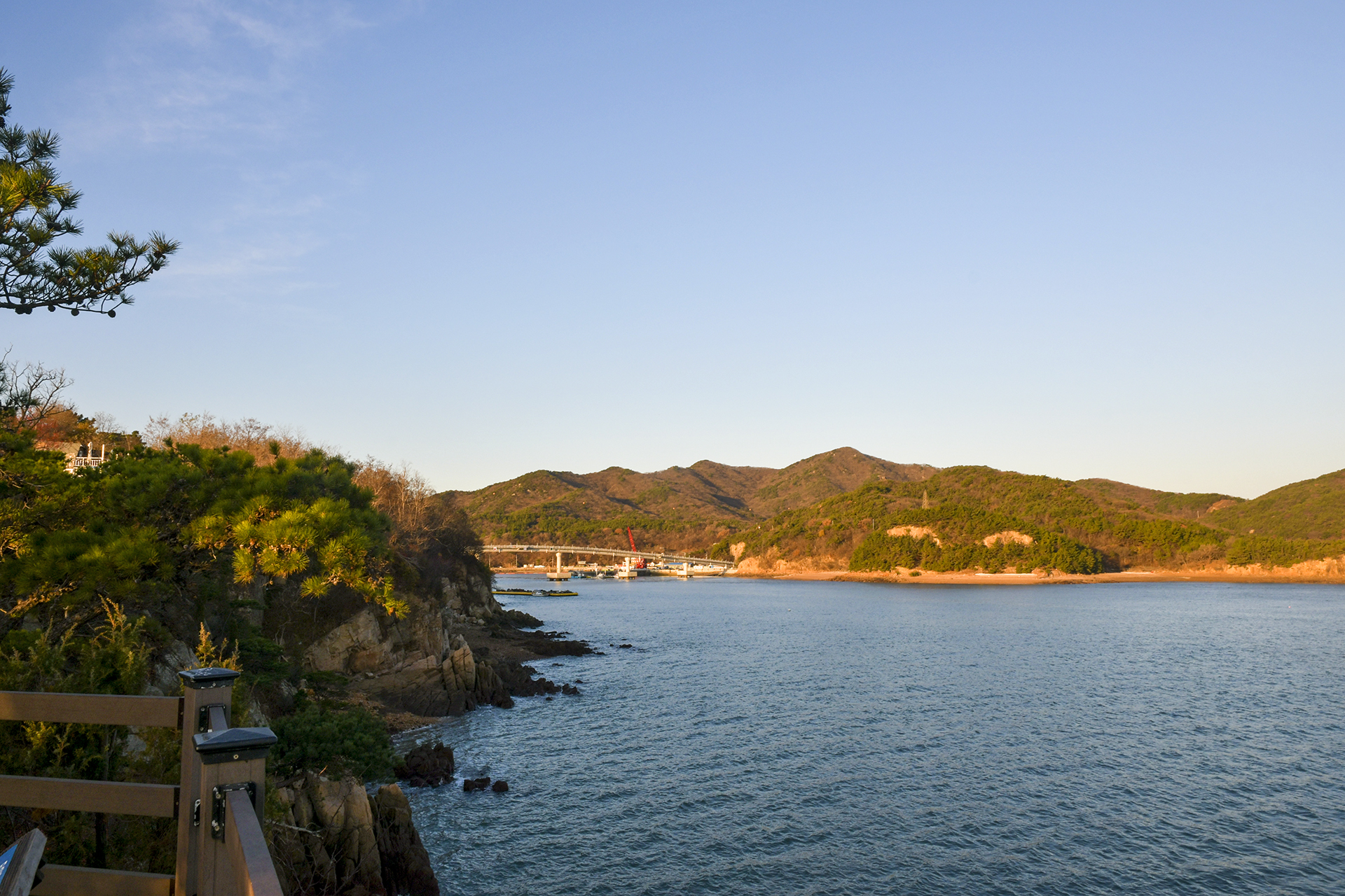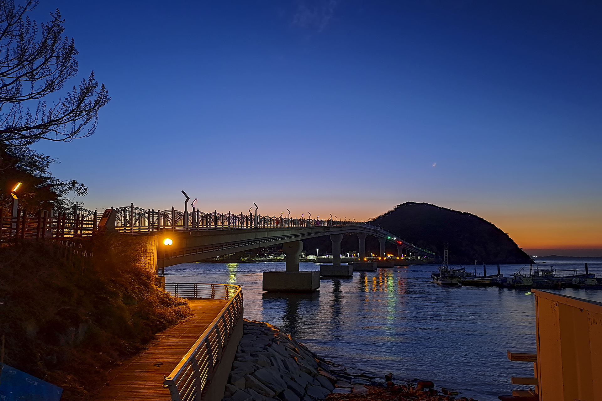 떼무리항과 인도교의 모습,