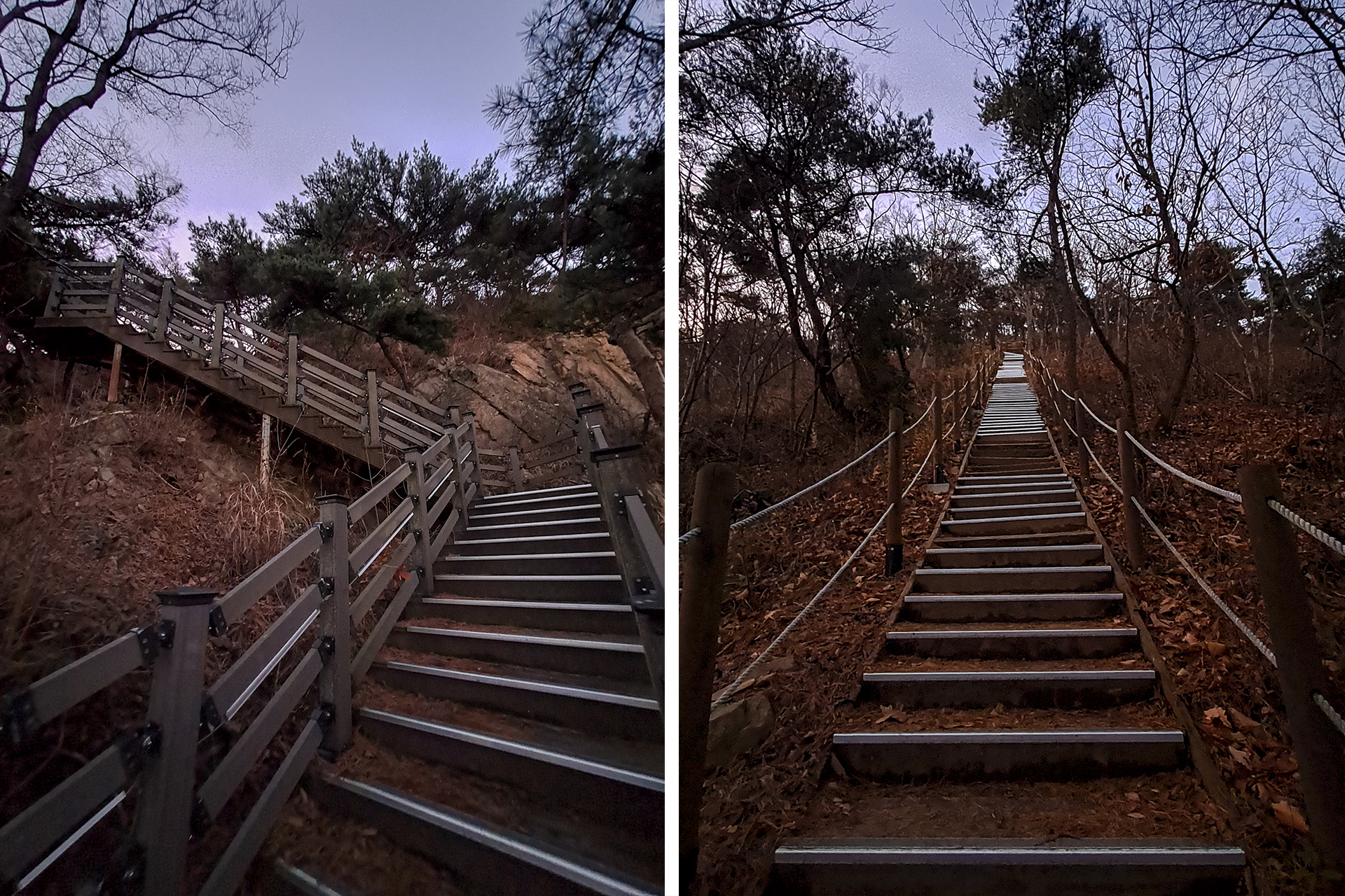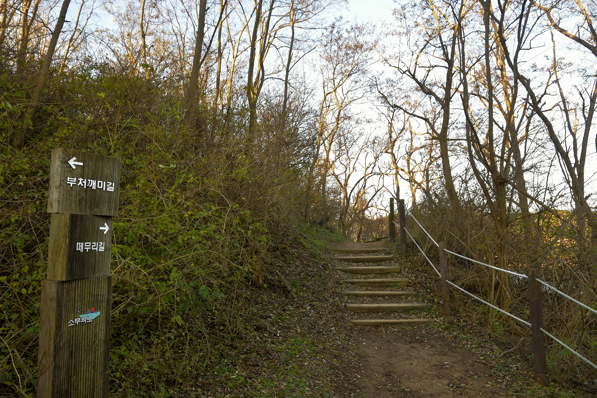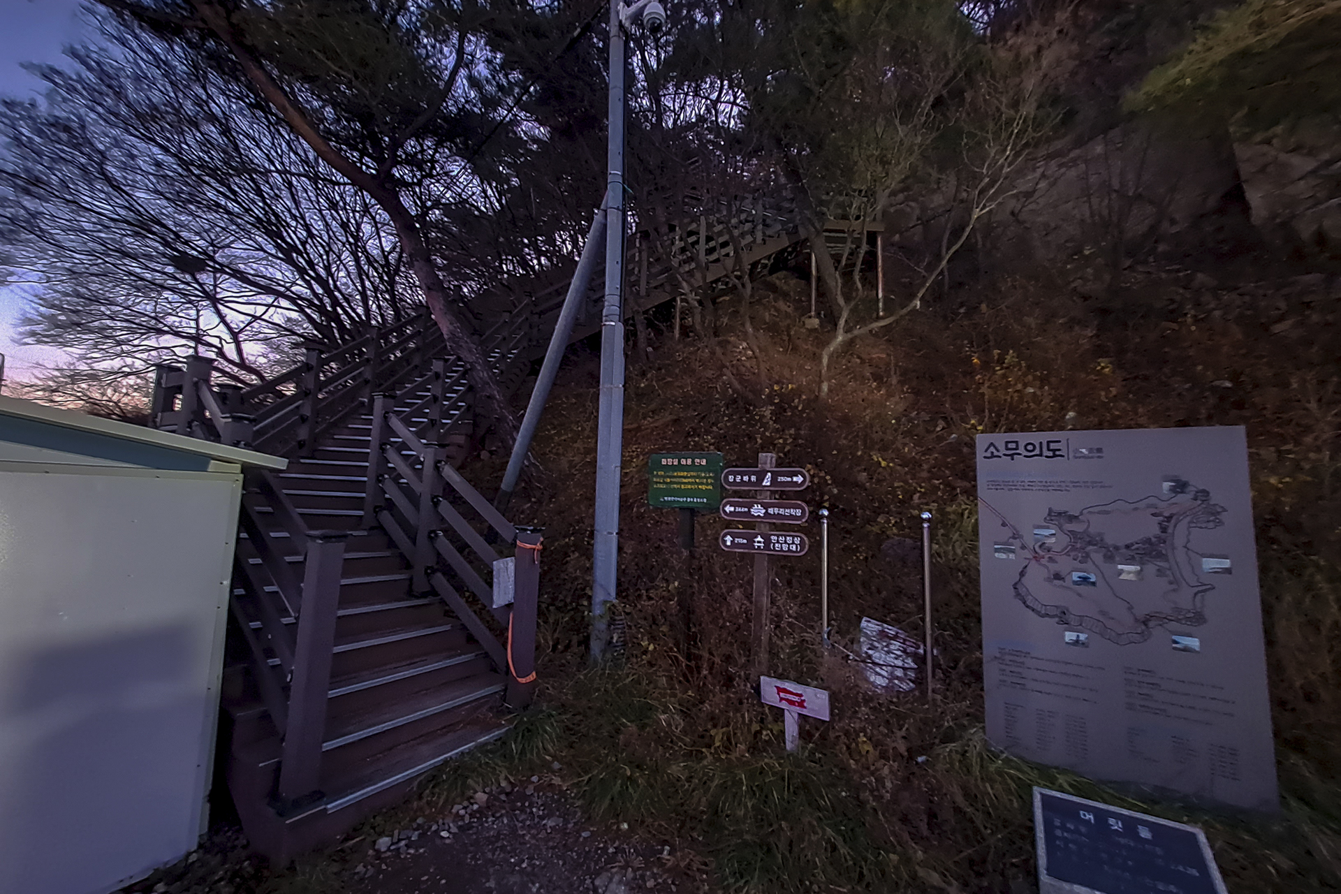 바람을 세게 맞으며 인도교를 건넌 후 안산으로 올라가는 데크계단을 따른다.