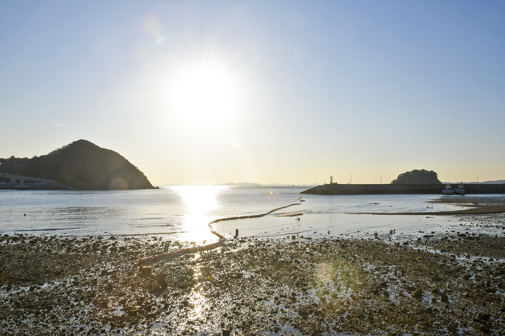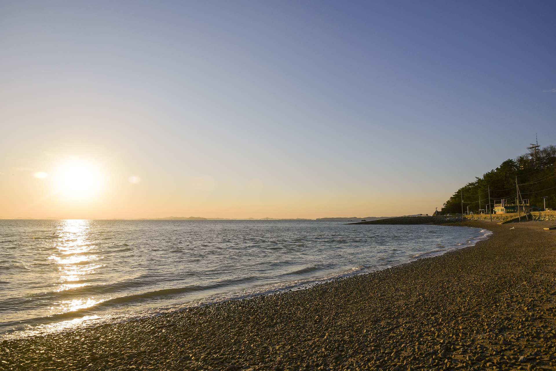 점점 물들어 가는 바다, 물이 빠지는 시간이긴 하지만 해변 가까이까지 물이 들어오고 있는 중이다.
