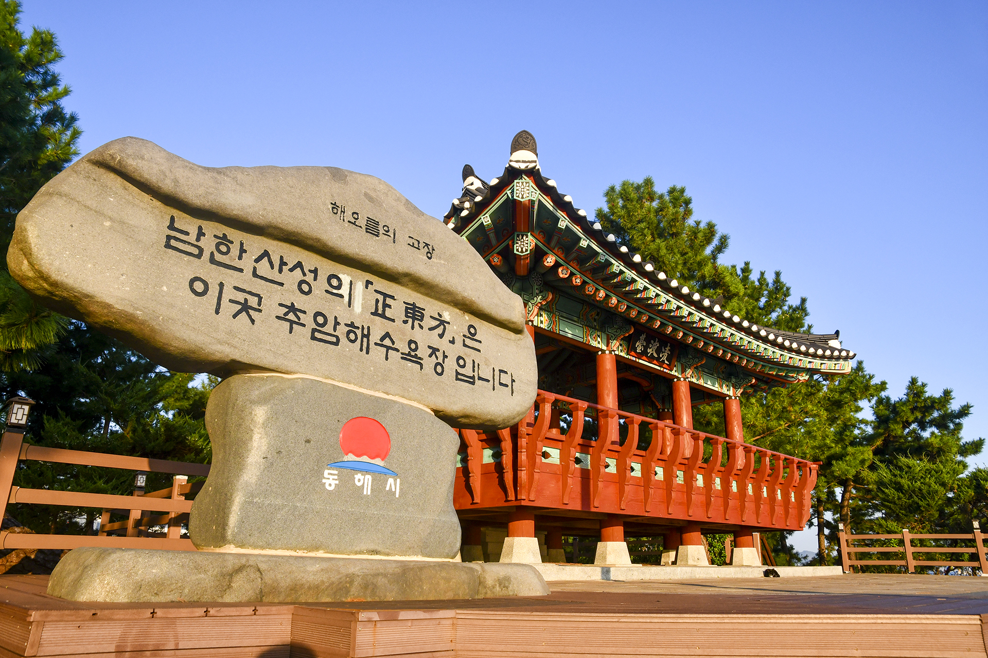 촛대바위 부근 능파대 정자는 추암해변의 일출 감상지로 좋은 곳이다.