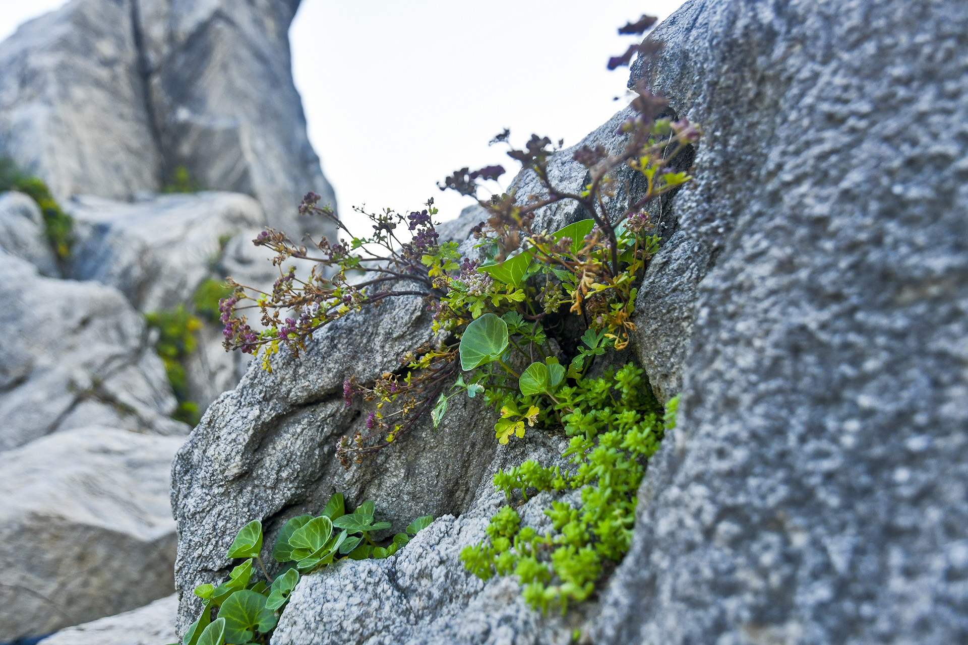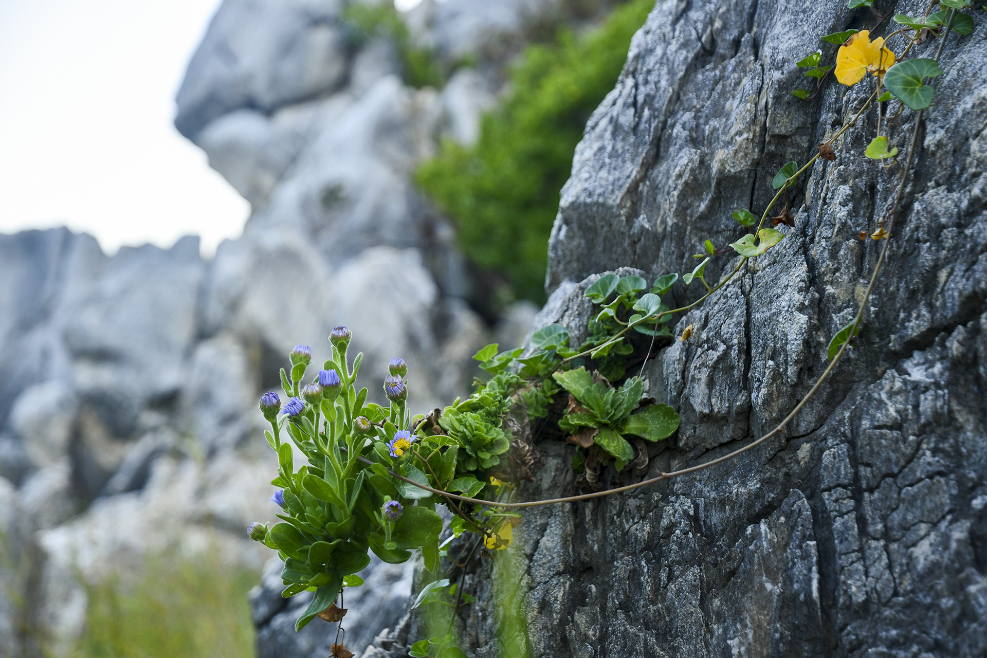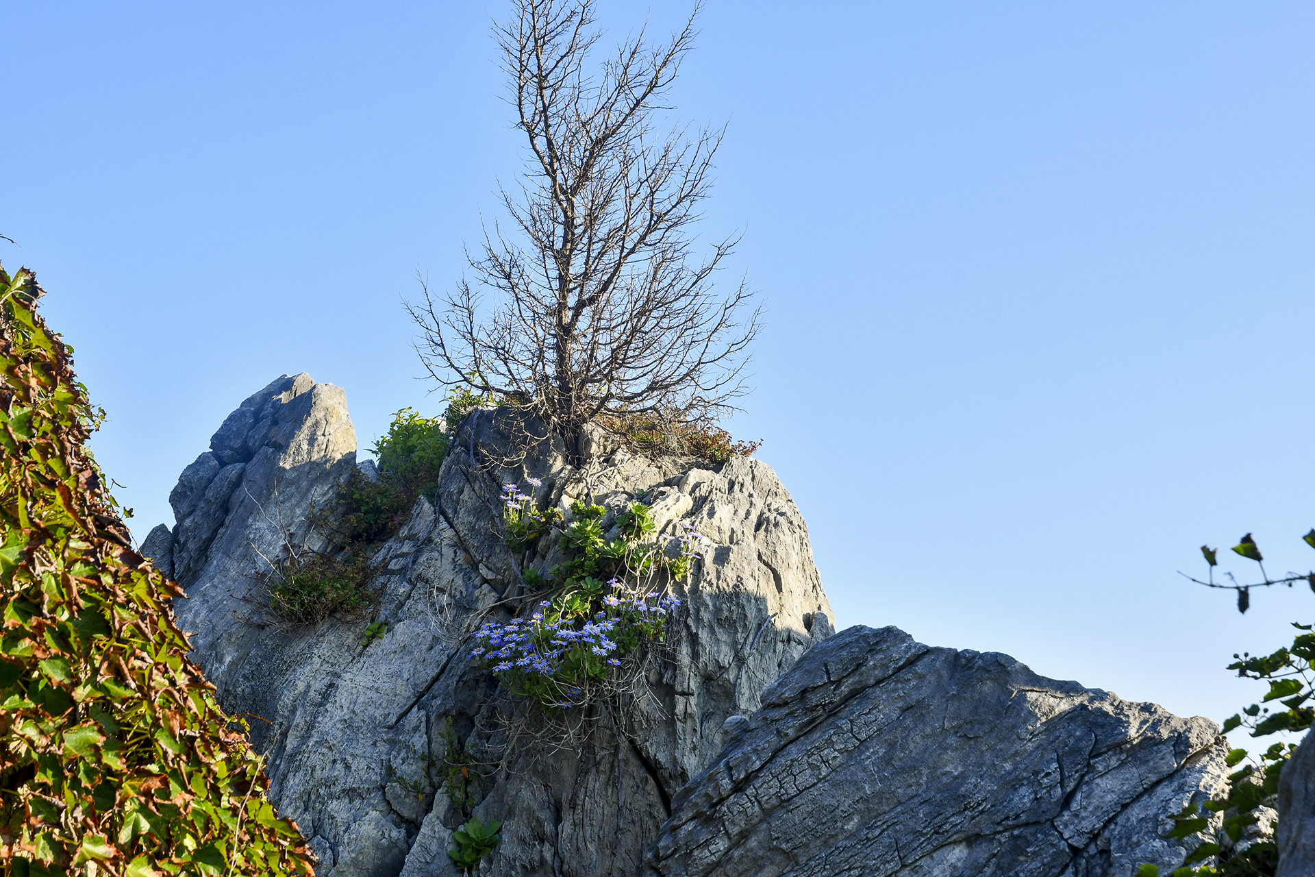 해가 늦게 들어 더 춥게 느껴지는 곳이지만 기암 사이 틈으로 다양한 식물들이 뿌리내리고 있다.