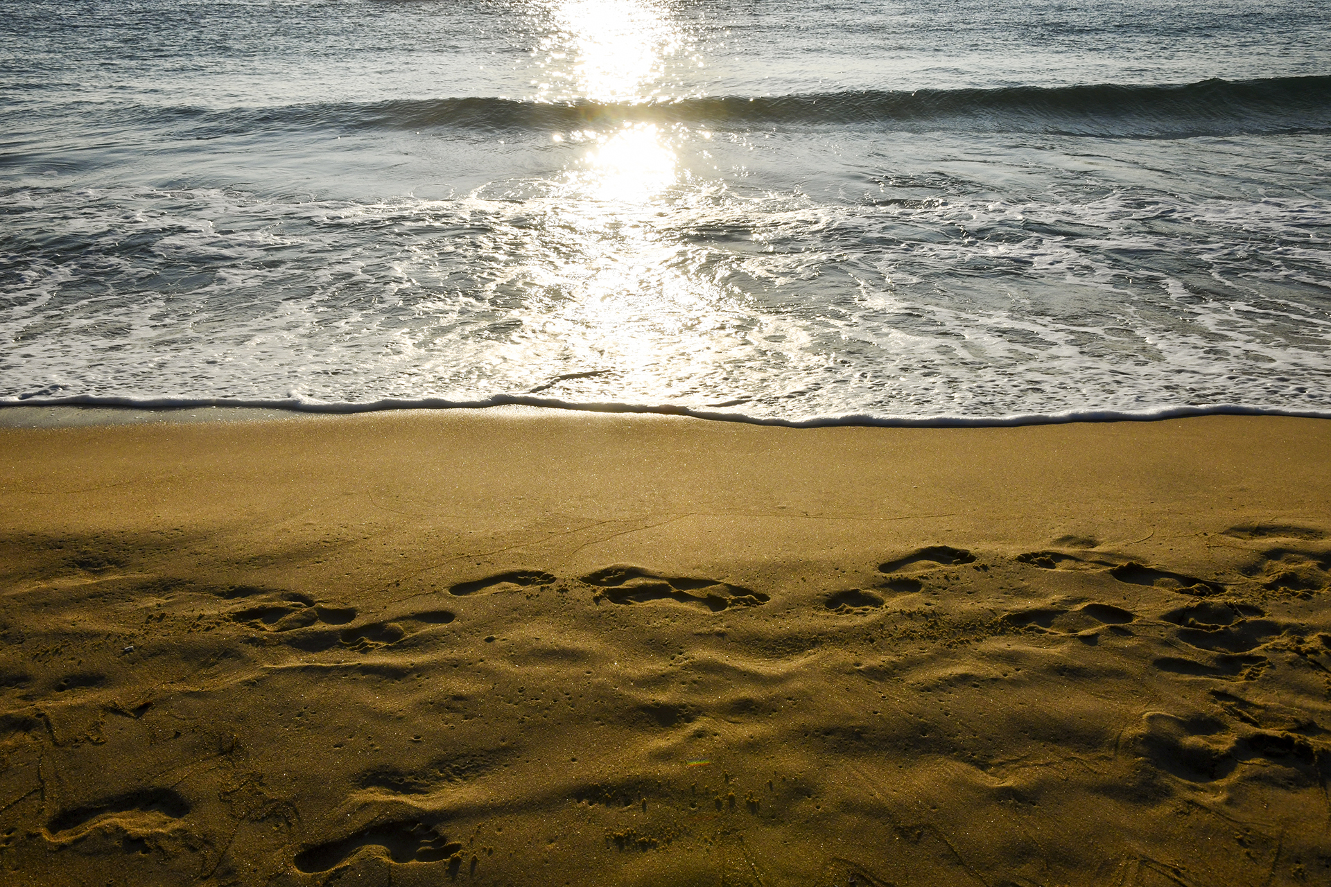 꾹꾹 눌러 찍은 발도장이 정겨운 아침 해변