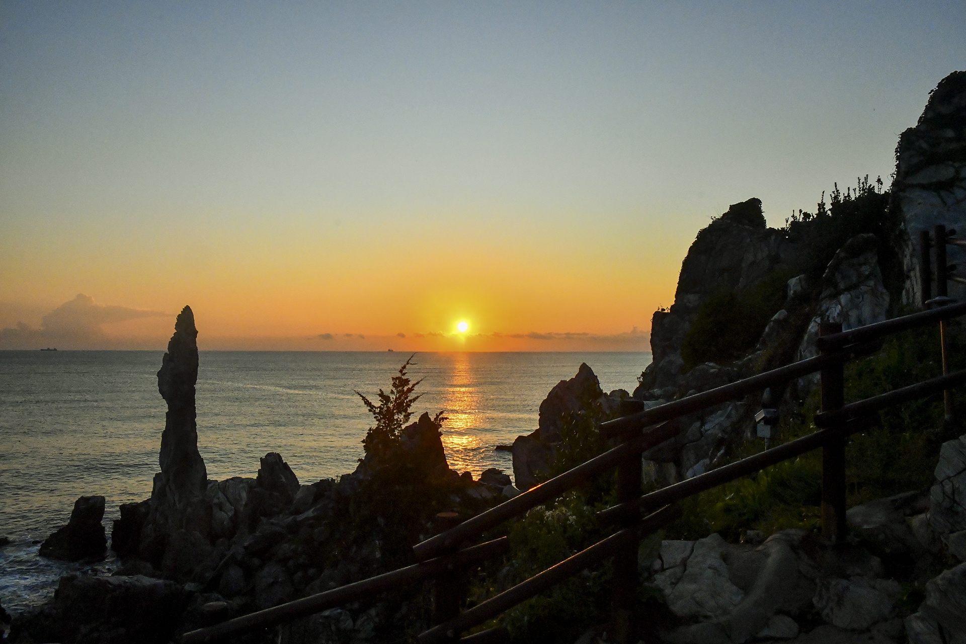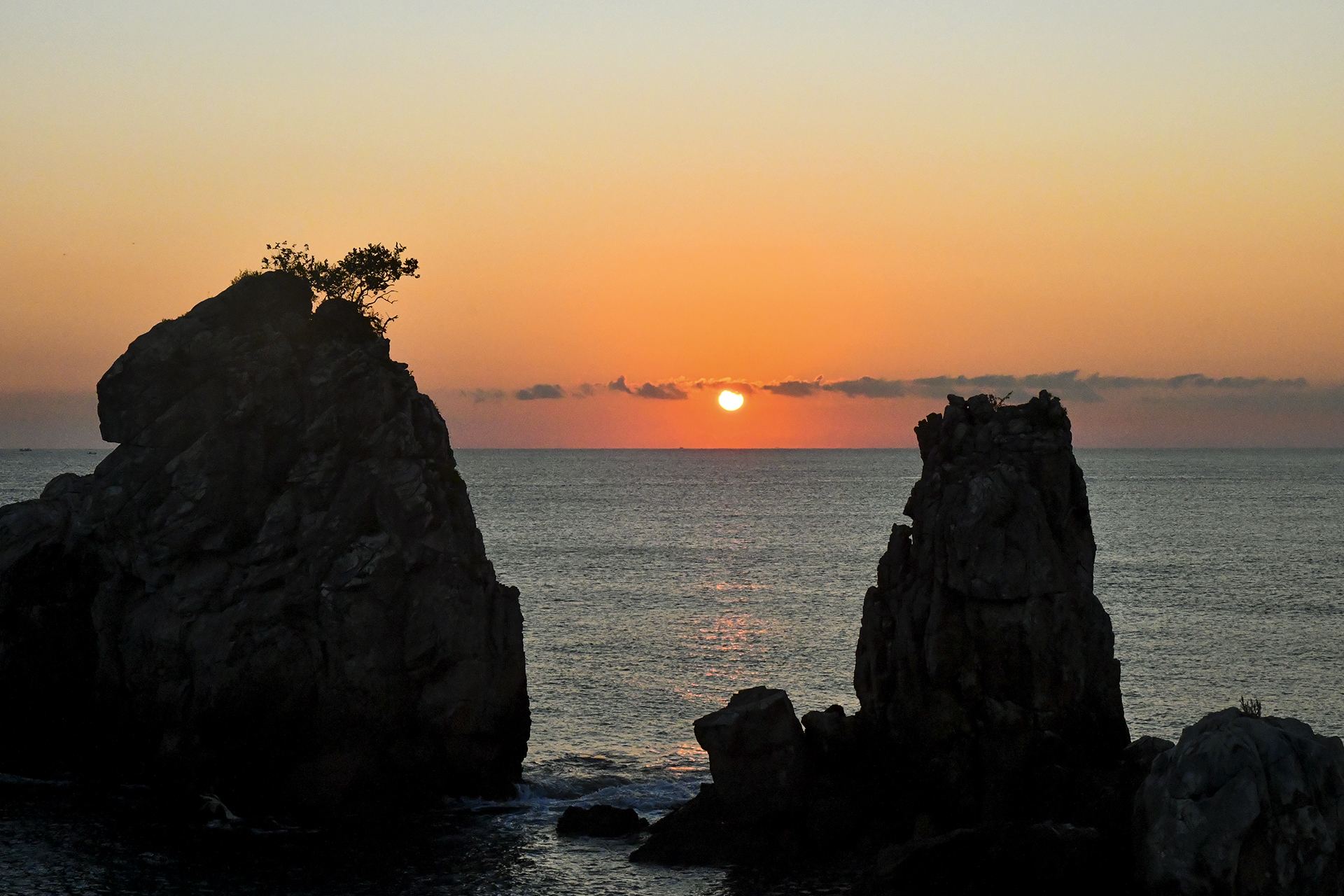 하늘이 밋밋하긴 하지만 꼭 보고싶었던 촛대바위 일출을 맞이하는 순간이다.