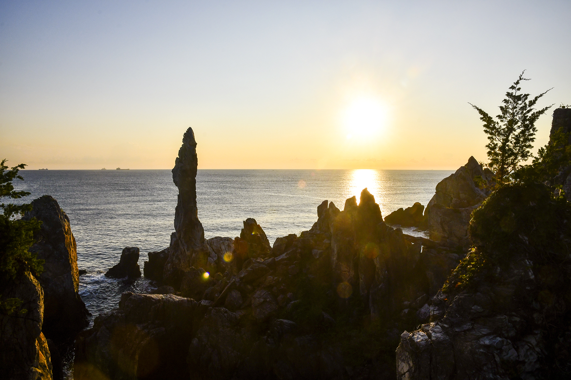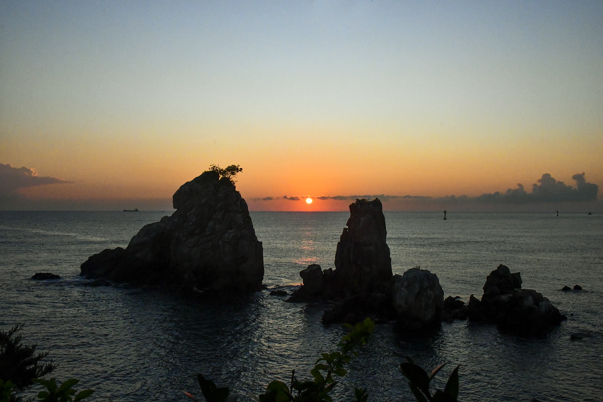 두 형제바위 사이로 해가 떠오르는 사진을 보았는데 해변에서는 일출각이 불가능하고~