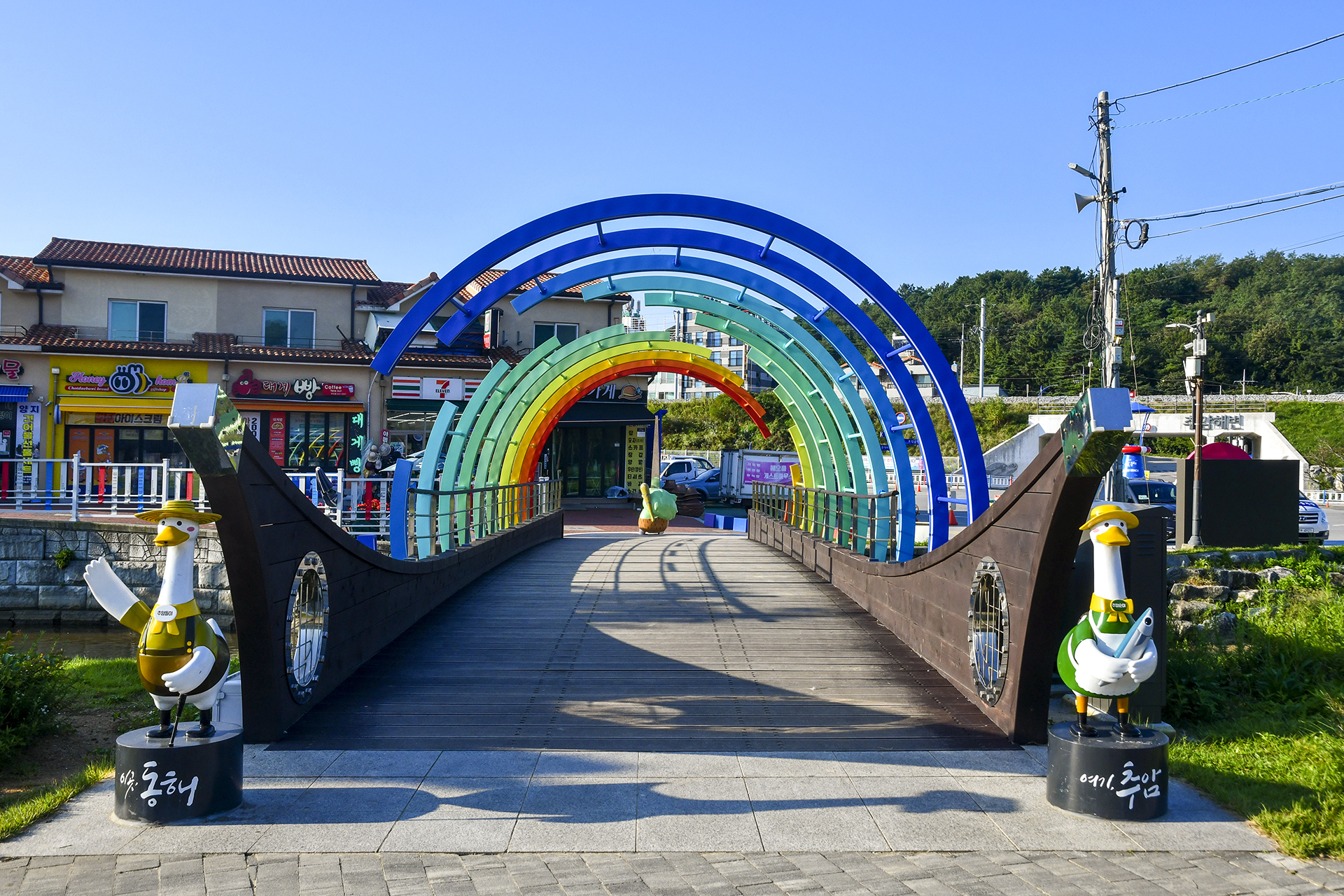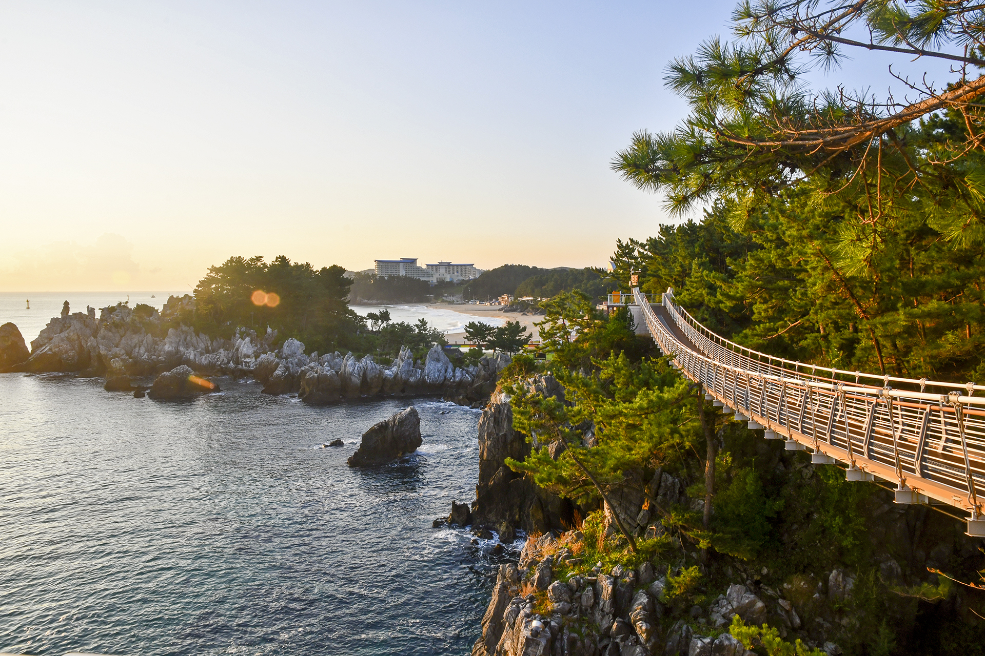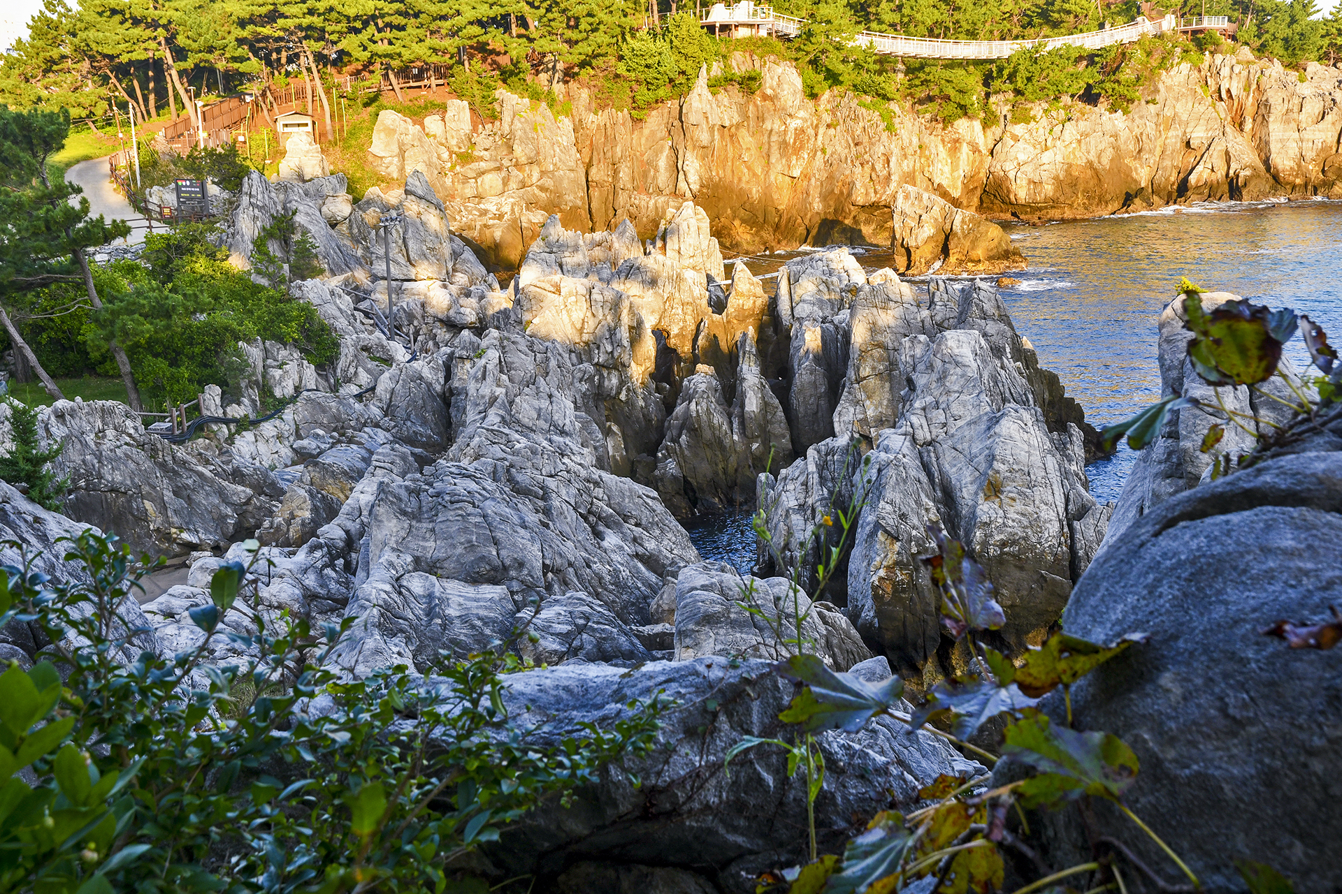 해변과 가깝게 있는 형제바위와 능파대가 멋스러우며 출렁다리와 조각공원이 있어 깨알같은 재미를 선사해준다.