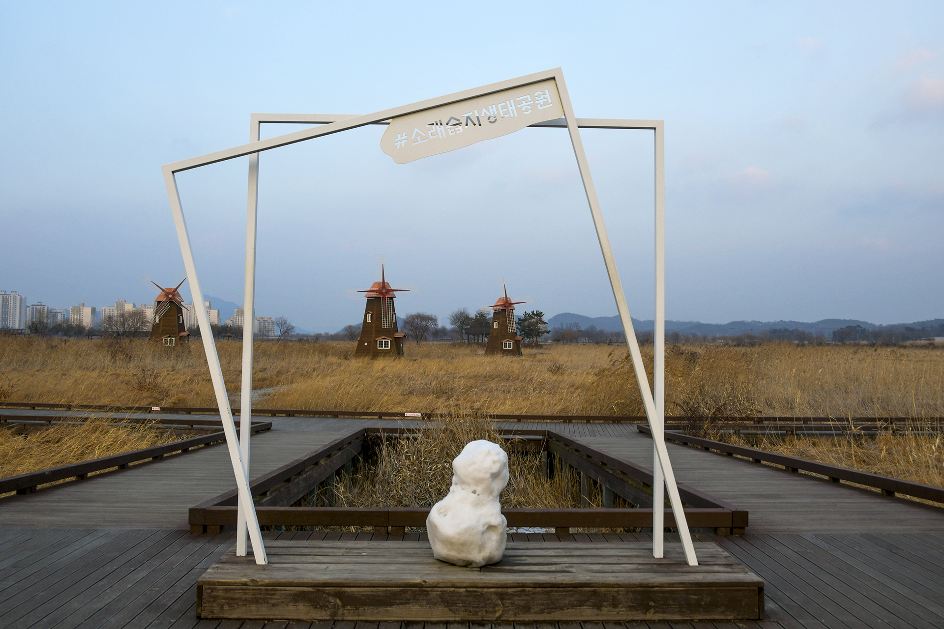 소래습지생태공원의 일출 촬영지로 유명한 풍차가 있는 액자프레임 포토존