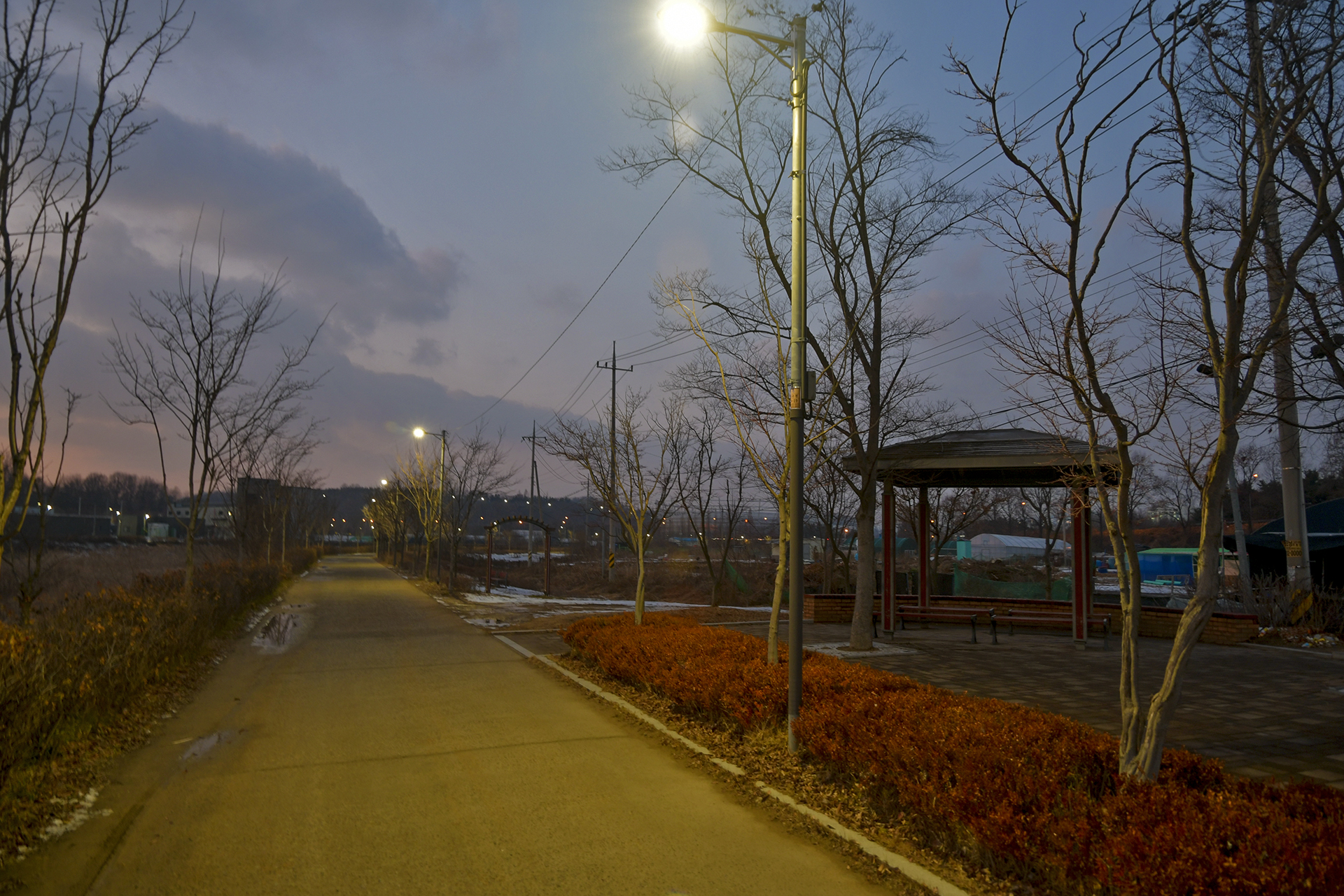 끝날듯 하면서도 계속 이어지는 서해랑길, 길가에 가로등이 켜지니 걷기에는 수월하지만 해가 진 겨울저녁은 급 추워지기 시작한다.