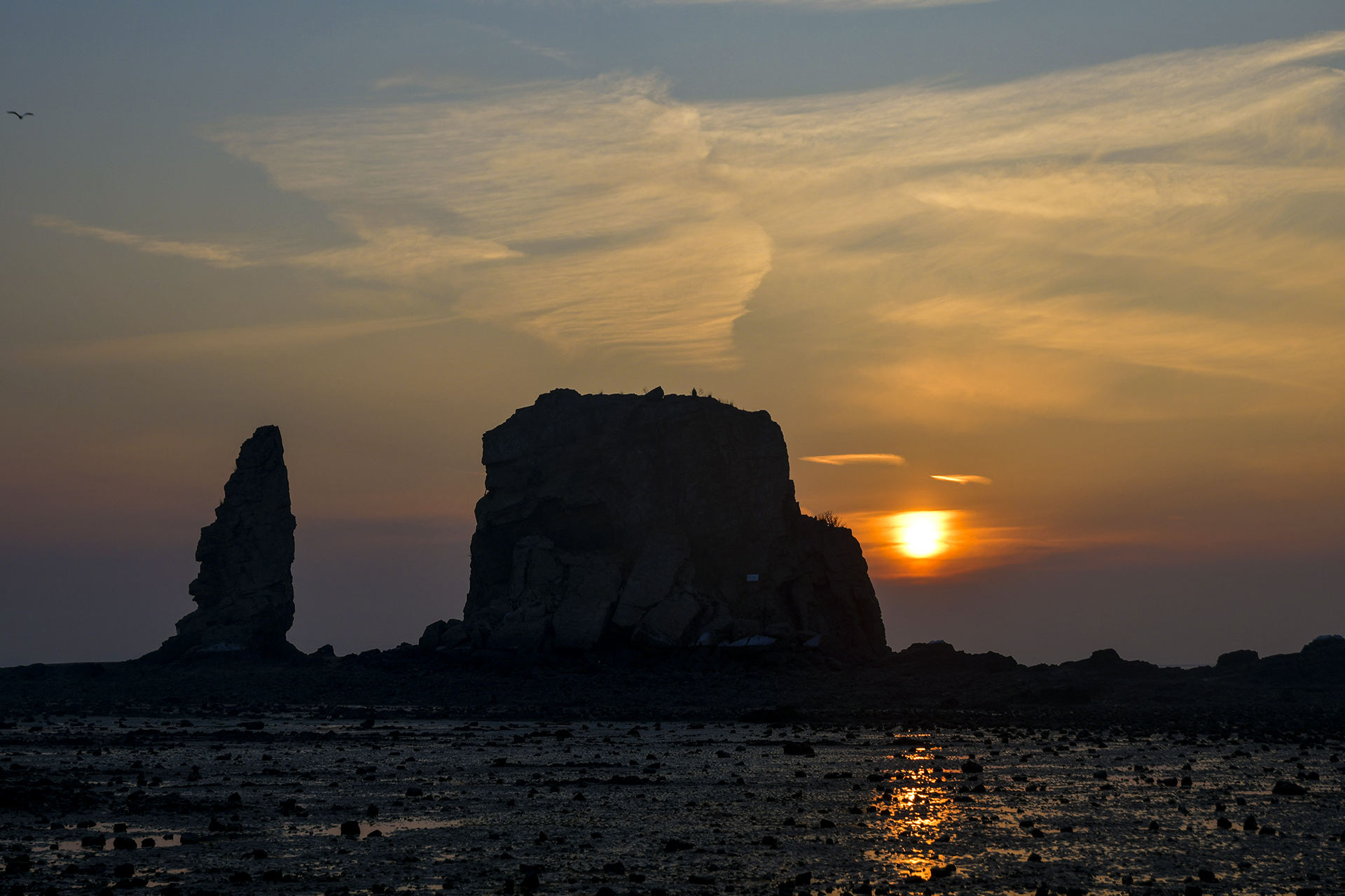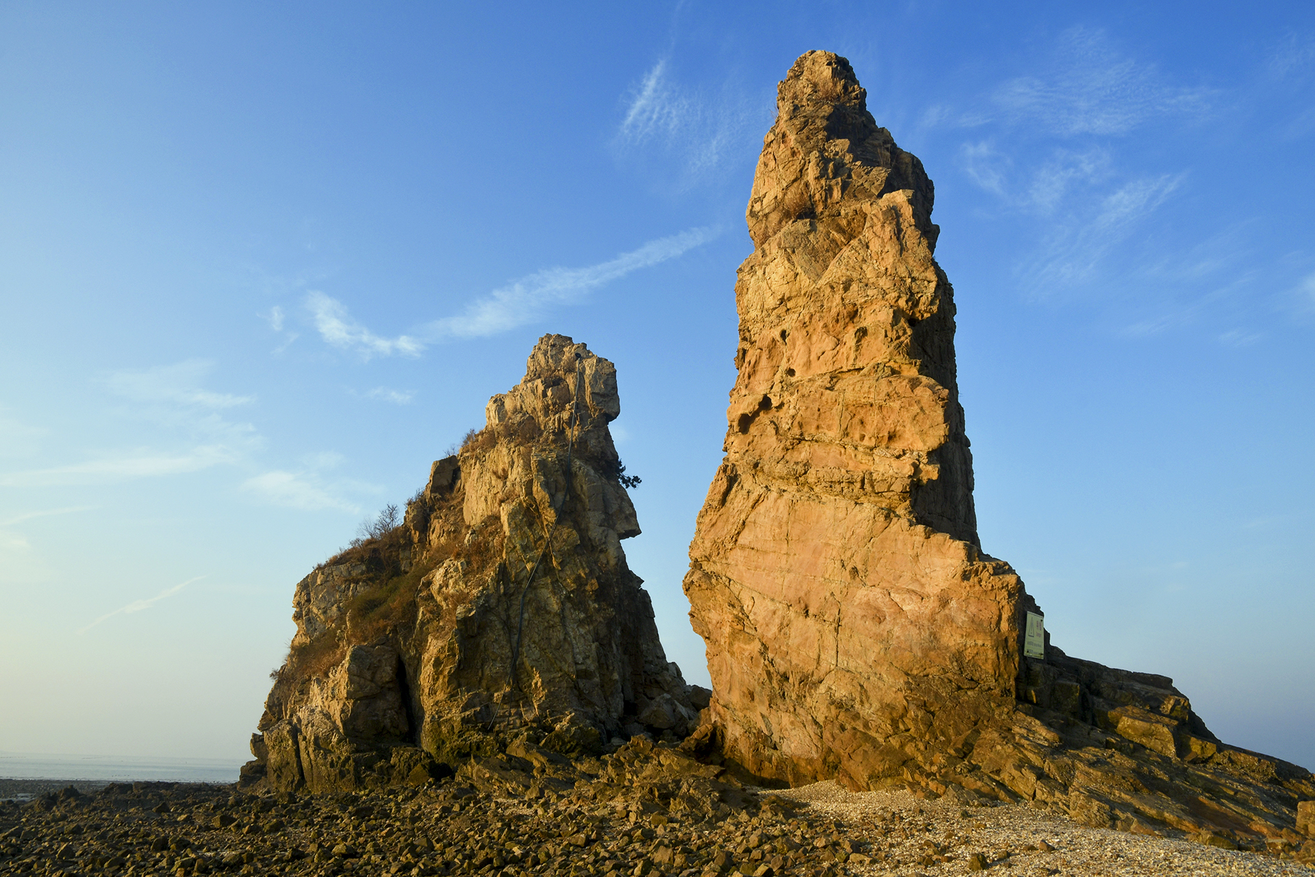 약 20m 높이의 기암괴석은 시스택(Sea Stack)이라 불리는 해식기둥으로 선탐브리아시대 변경암으로 이루어져 있다고 한다.
