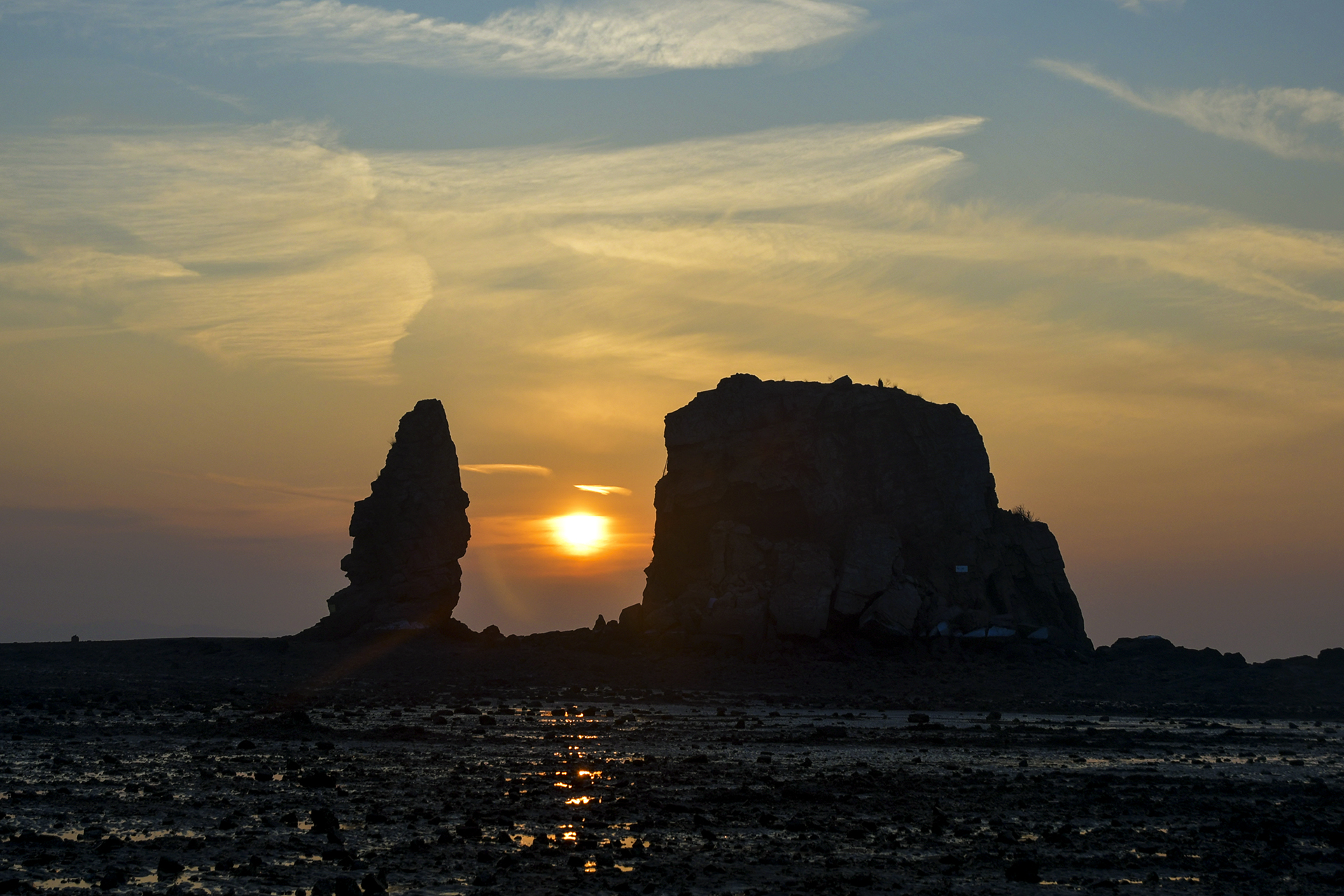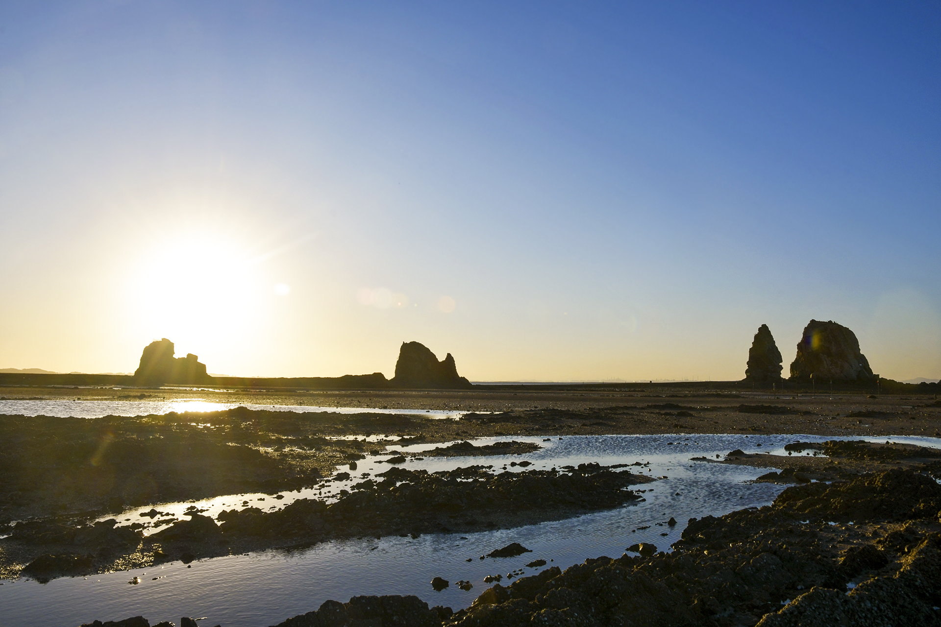 물 고인 갯벌에도 해가 길게 내려 앉았다.