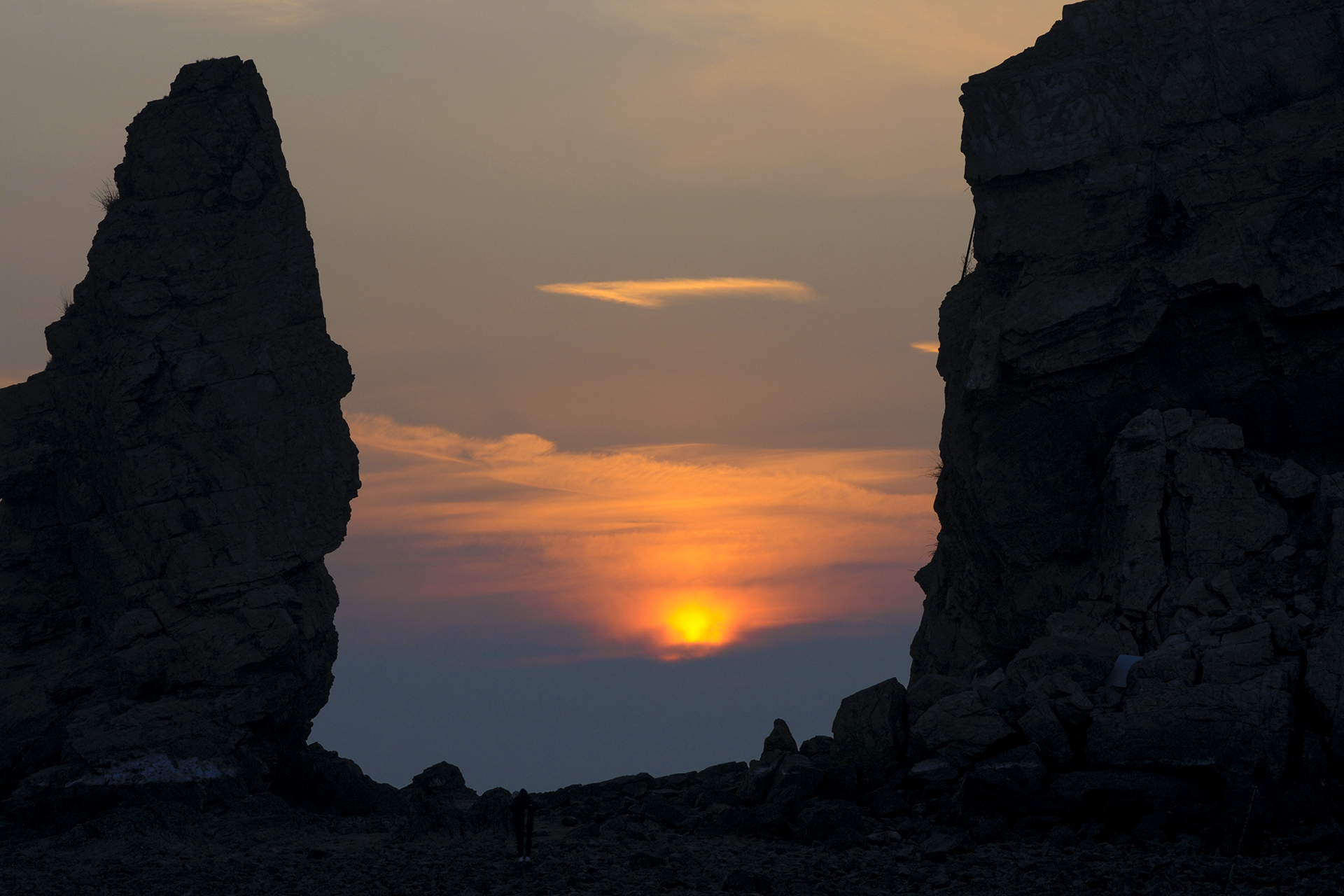 뿔을 하나 달고 있는 것처럼 보이는 특이한 모양의 각시바위, 해를 좌우로 위치시켜도 본다.