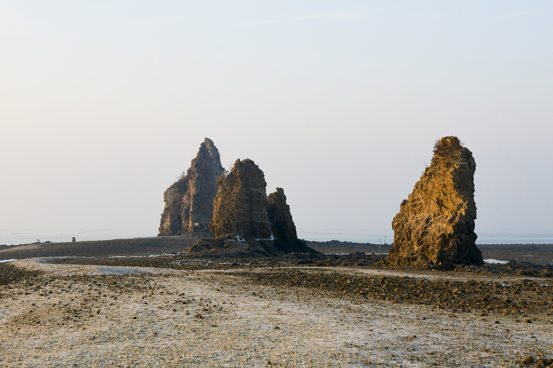 여기서 바라보니 저 끝에 있는 바위를 바로 앞에서 만나보고 싶어졌다. 지금처럼 물이 빠져야 가능한 일이니 기꺼이 다시 걸어가 본다.
