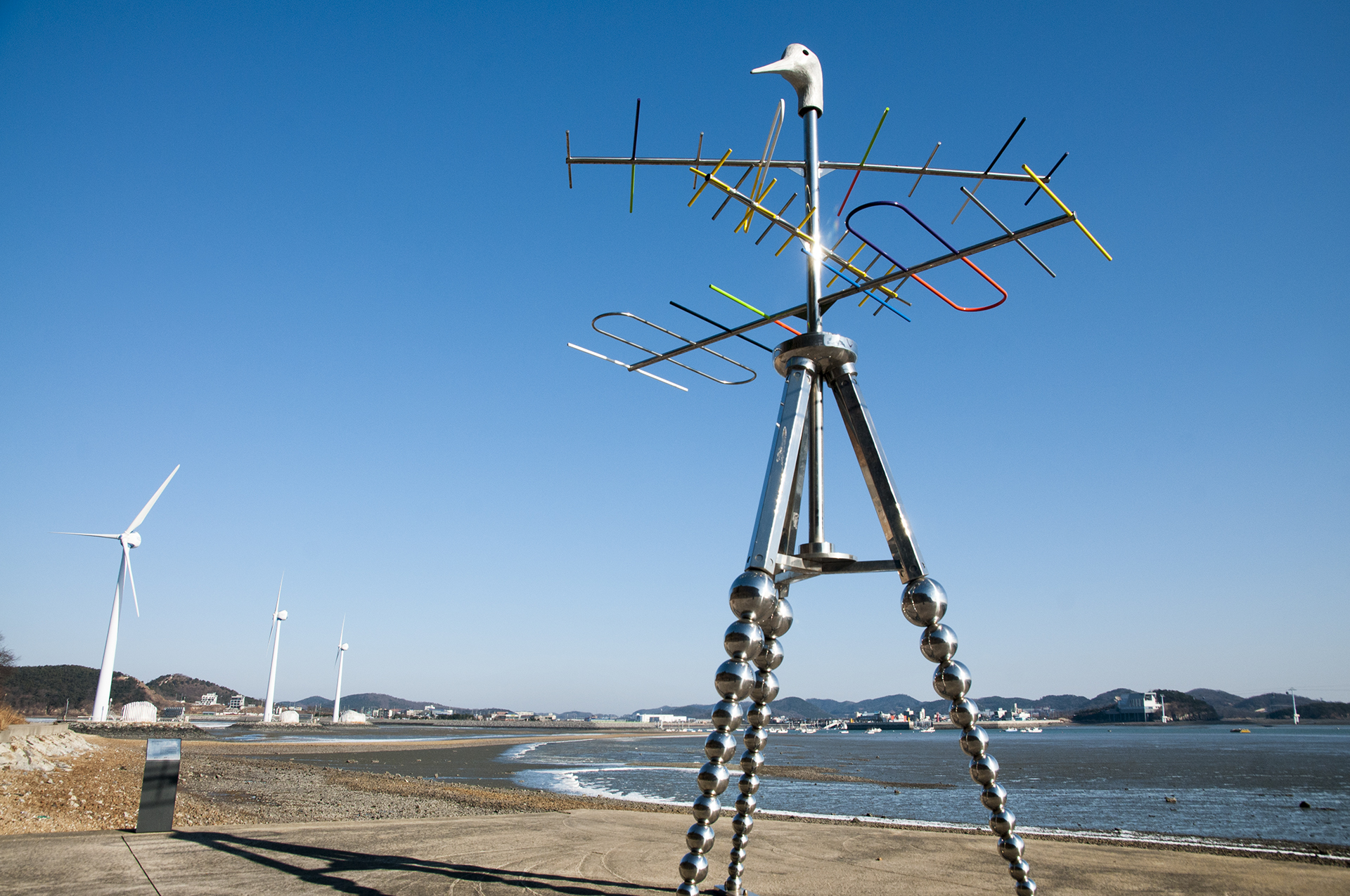 누에섬 예술섬 프로젝트 일환으로 설치된 민성홍님의 "안테나 새"라는 작품이다.