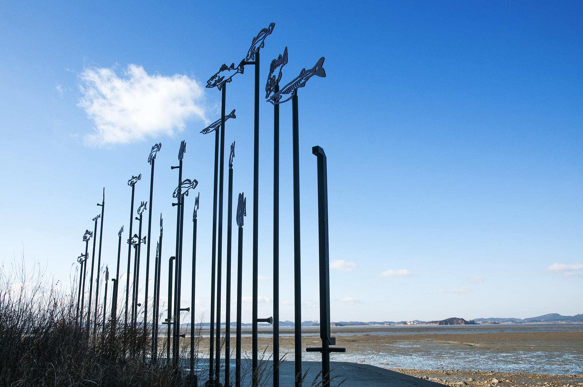 누에섬 주변에 서식하는 물고기를 조형적으로 이미지화한 작품이다. 본래 나무로 만드는 전통 솟대형식을 차용하여 바닷바람을 견딜수 있는 스틸재질로 만들어졌다.