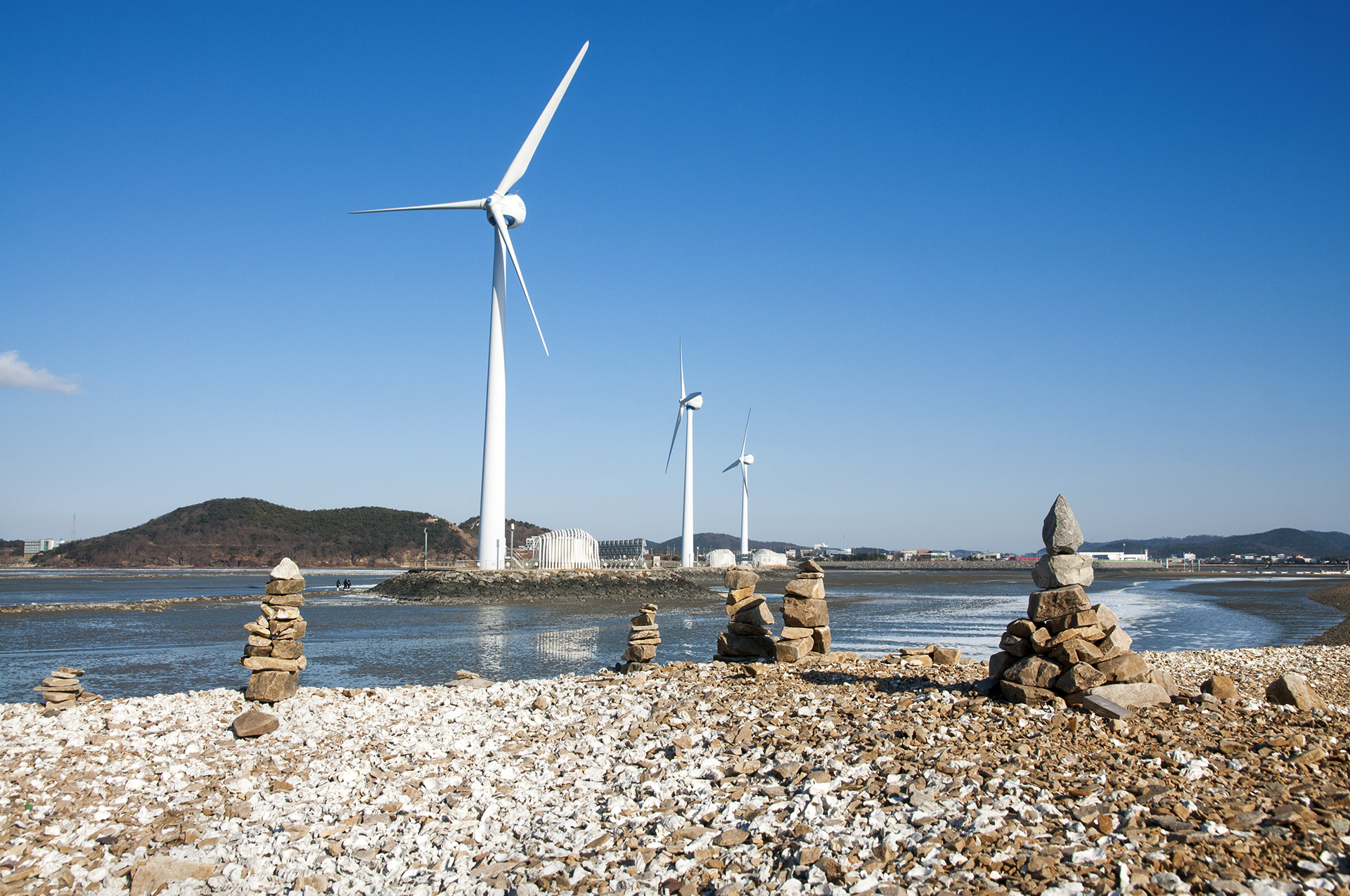 3개의 풍력발전기는 이제 누에섬의 명물이 되었다.