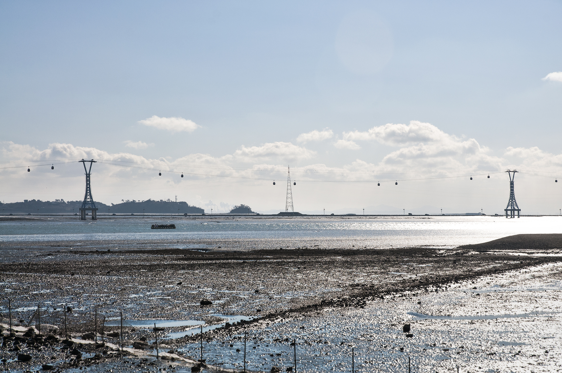 제부도와 이어지는 해상케이블카가 바다 위를 유유히 지나간다.
