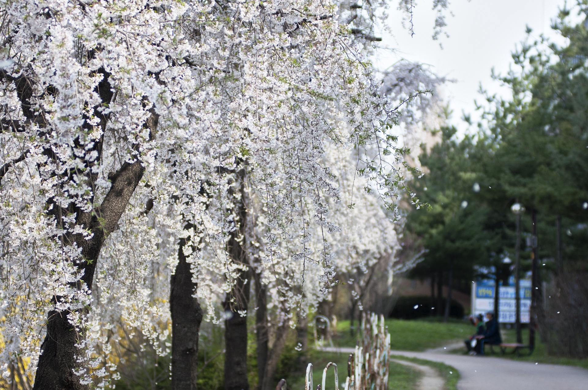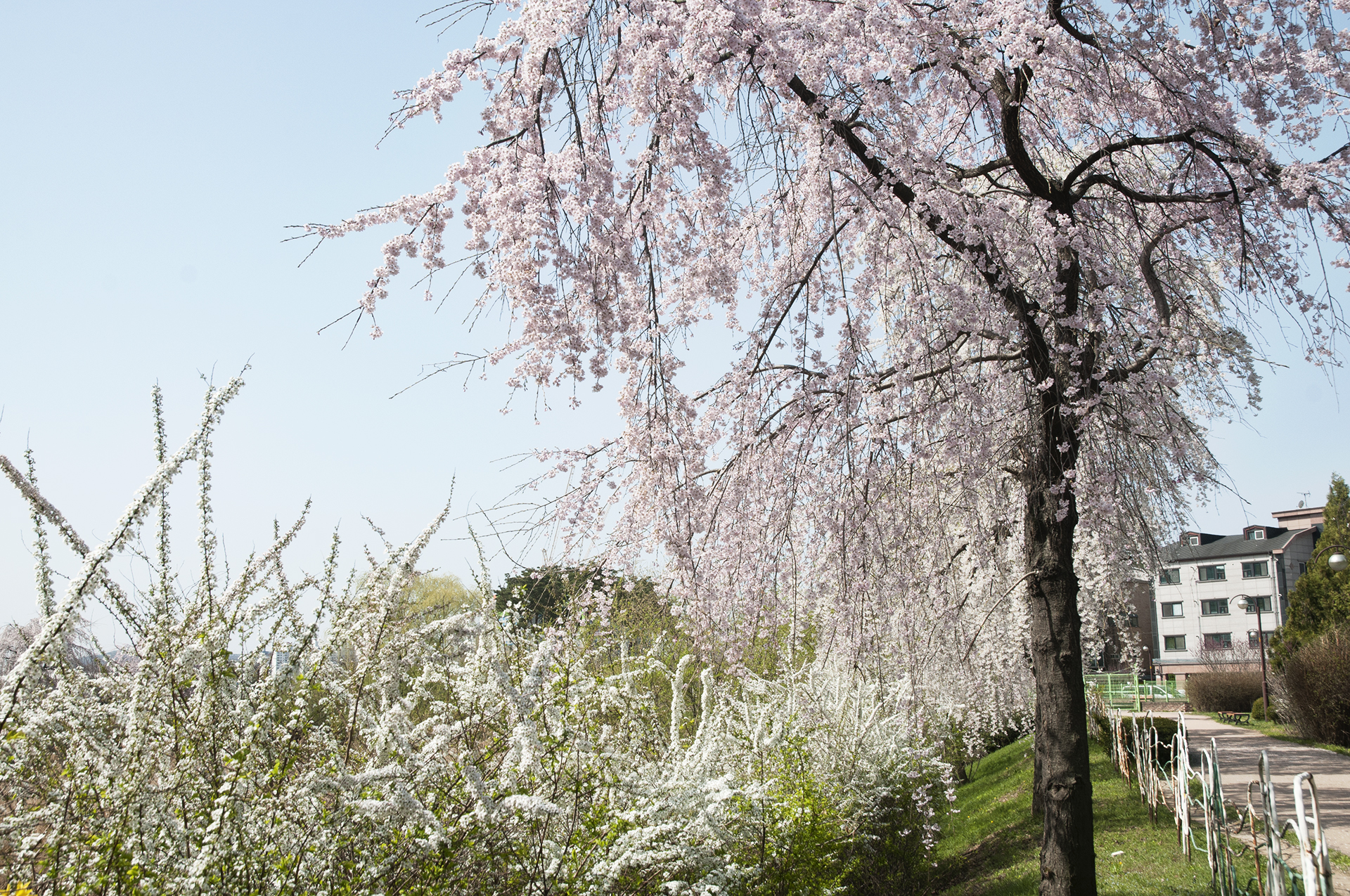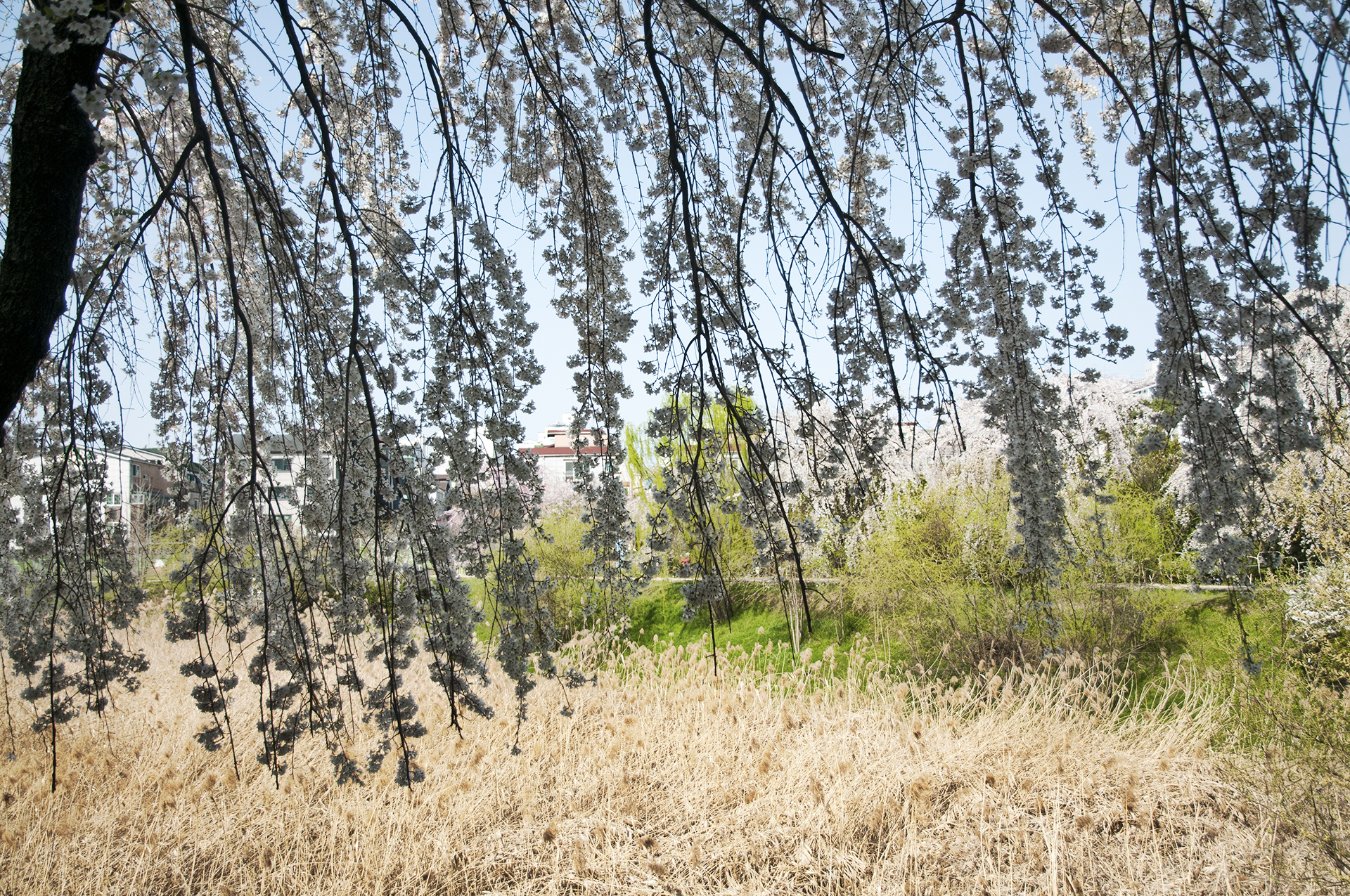 부부다리 부근에 부들공원이 있는데, 이곳에서는 수양벚꽃을 볼수 있다.