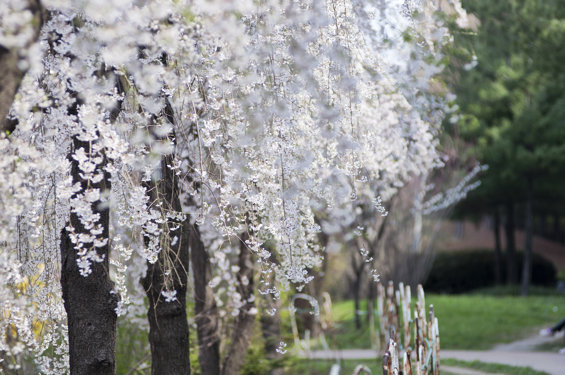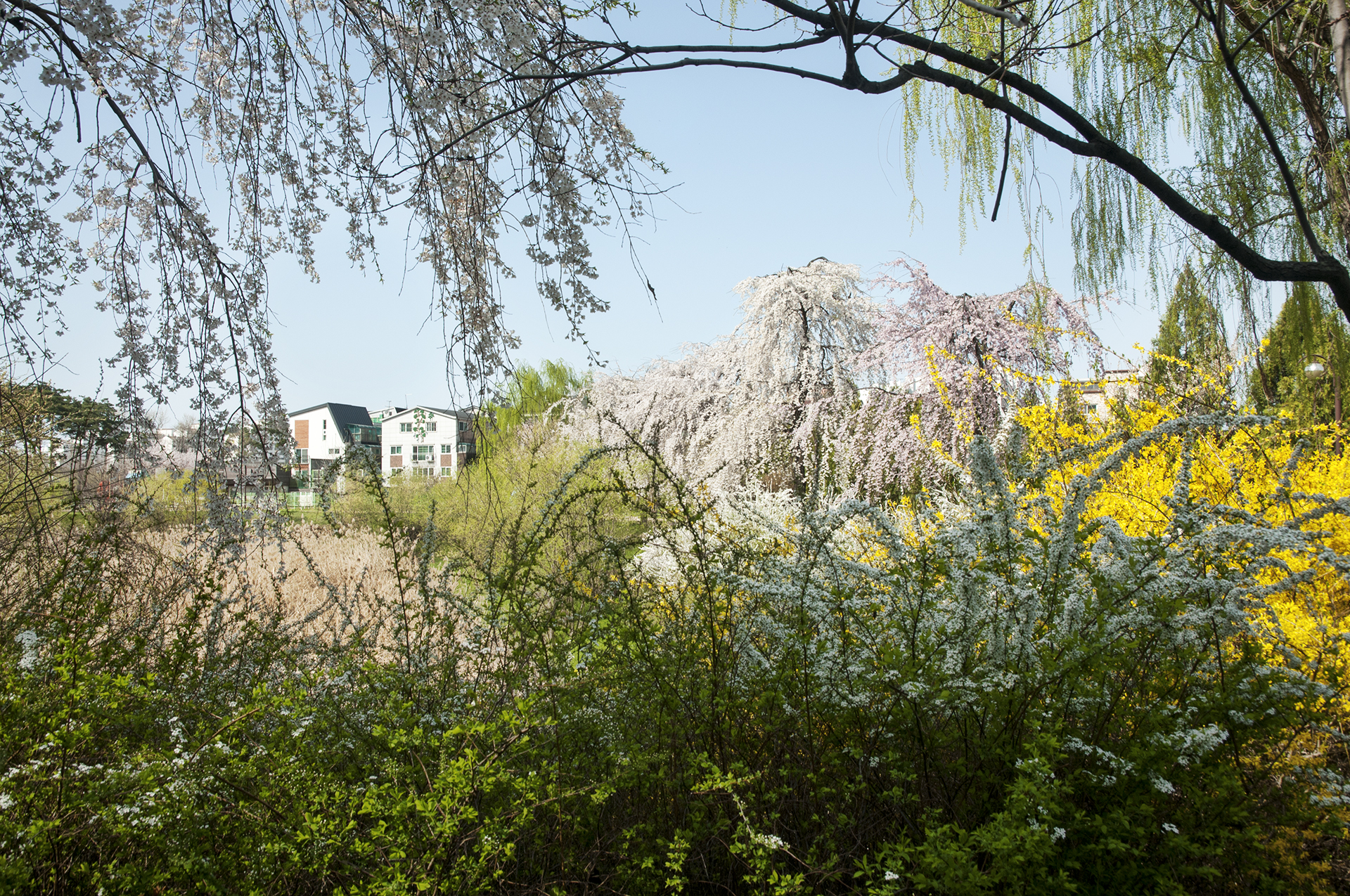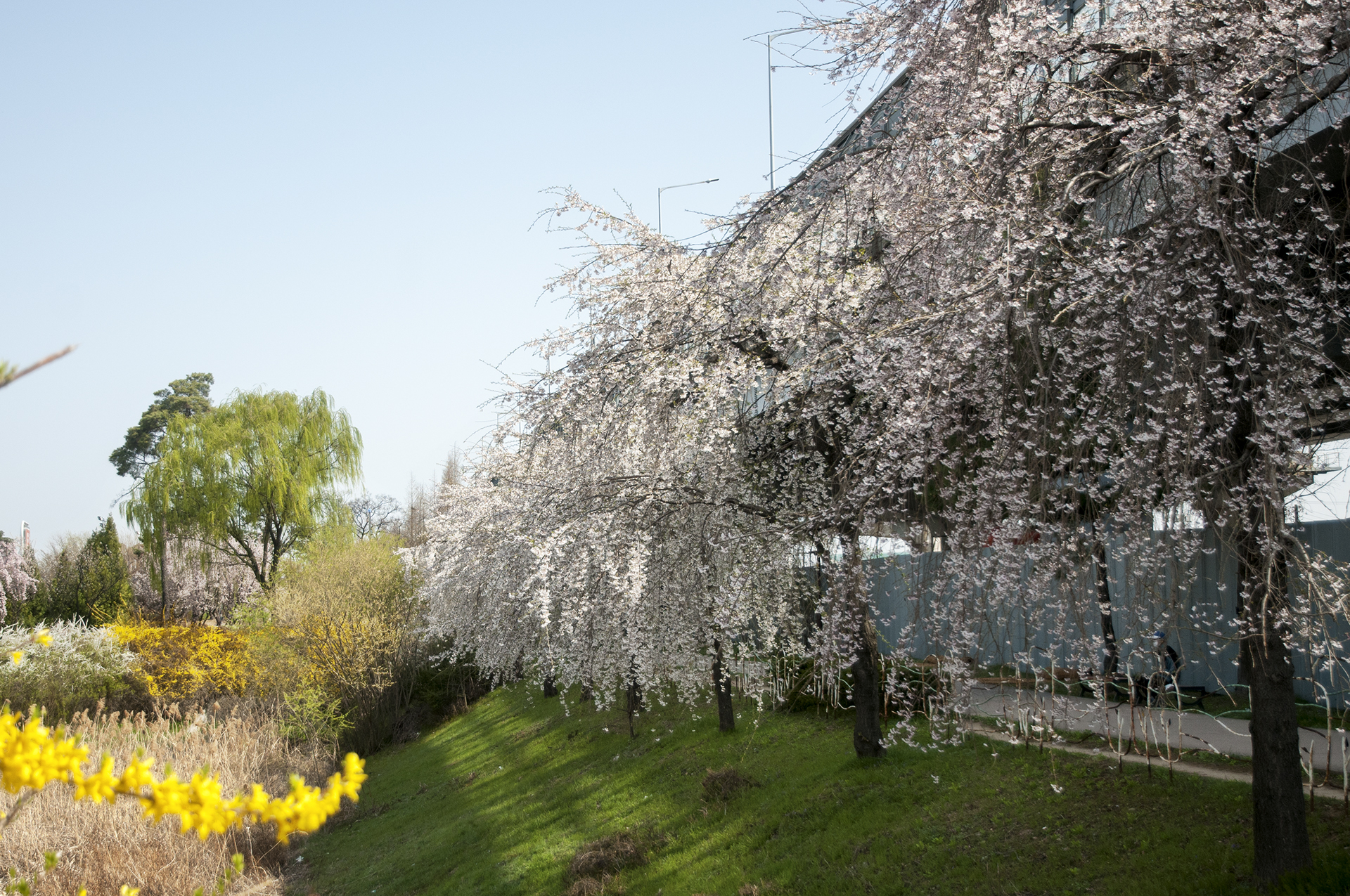 부부다리 부근에 부들공원이 있는데, 이곳에서는 수양벚꽃을 볼수 있다.