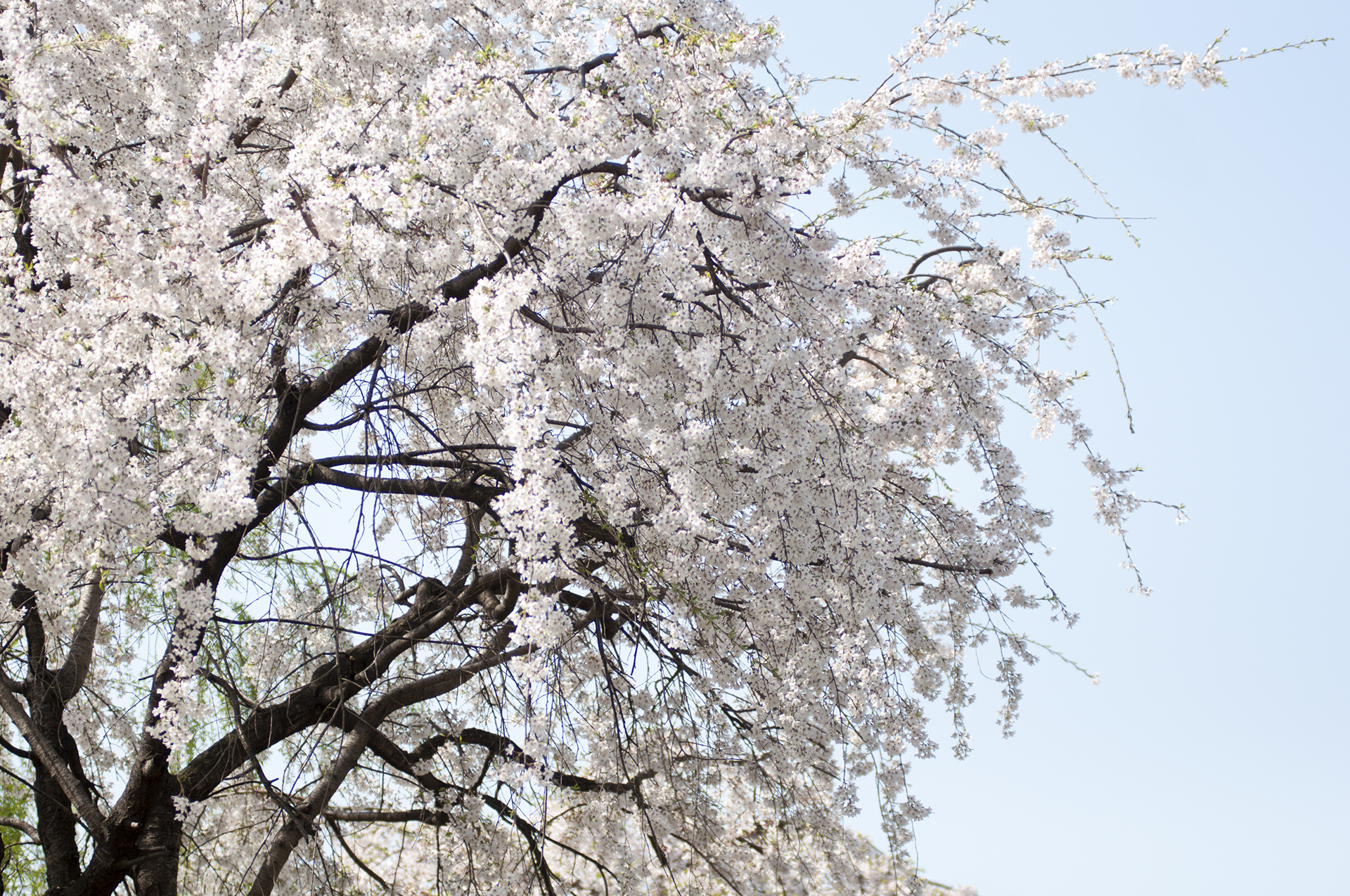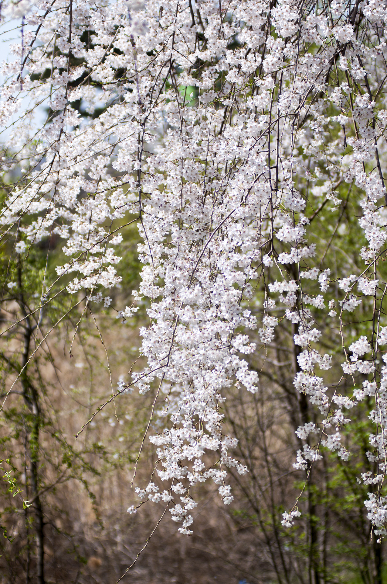 수양버들처럼 축 늘어진 가지에 꽃송이가 다닥다닥 붙어있다.