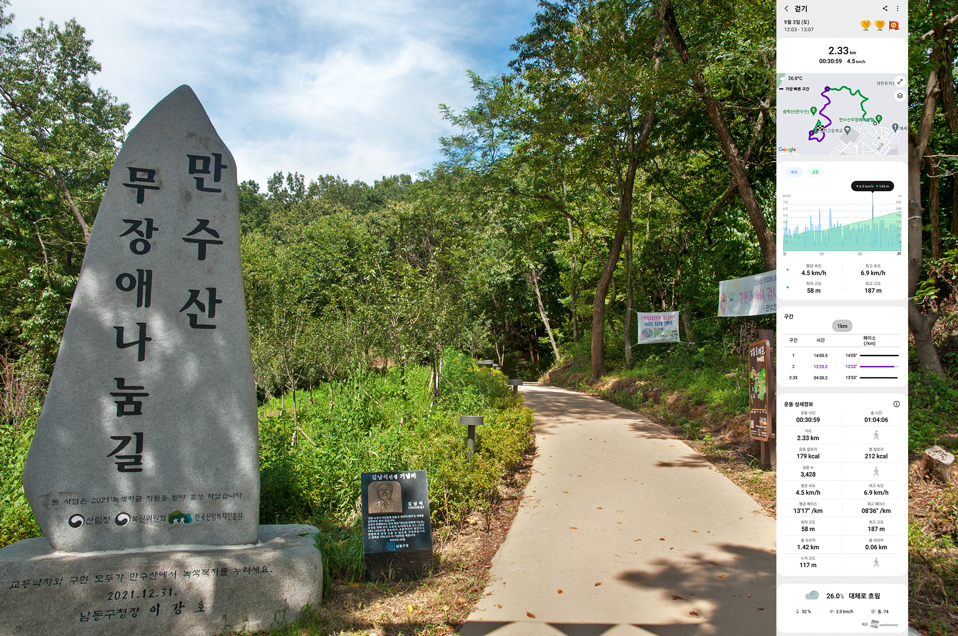역대급 태풍 힌남노가 온다고 하는데 아무 피해 없이 잘 지나가길 바라면서 엄니와 함께한 만수산 트레킹을 마친다.