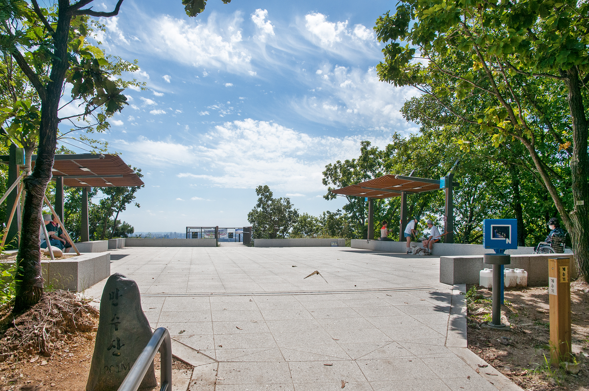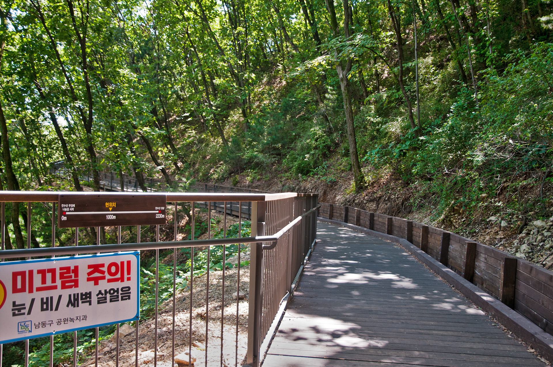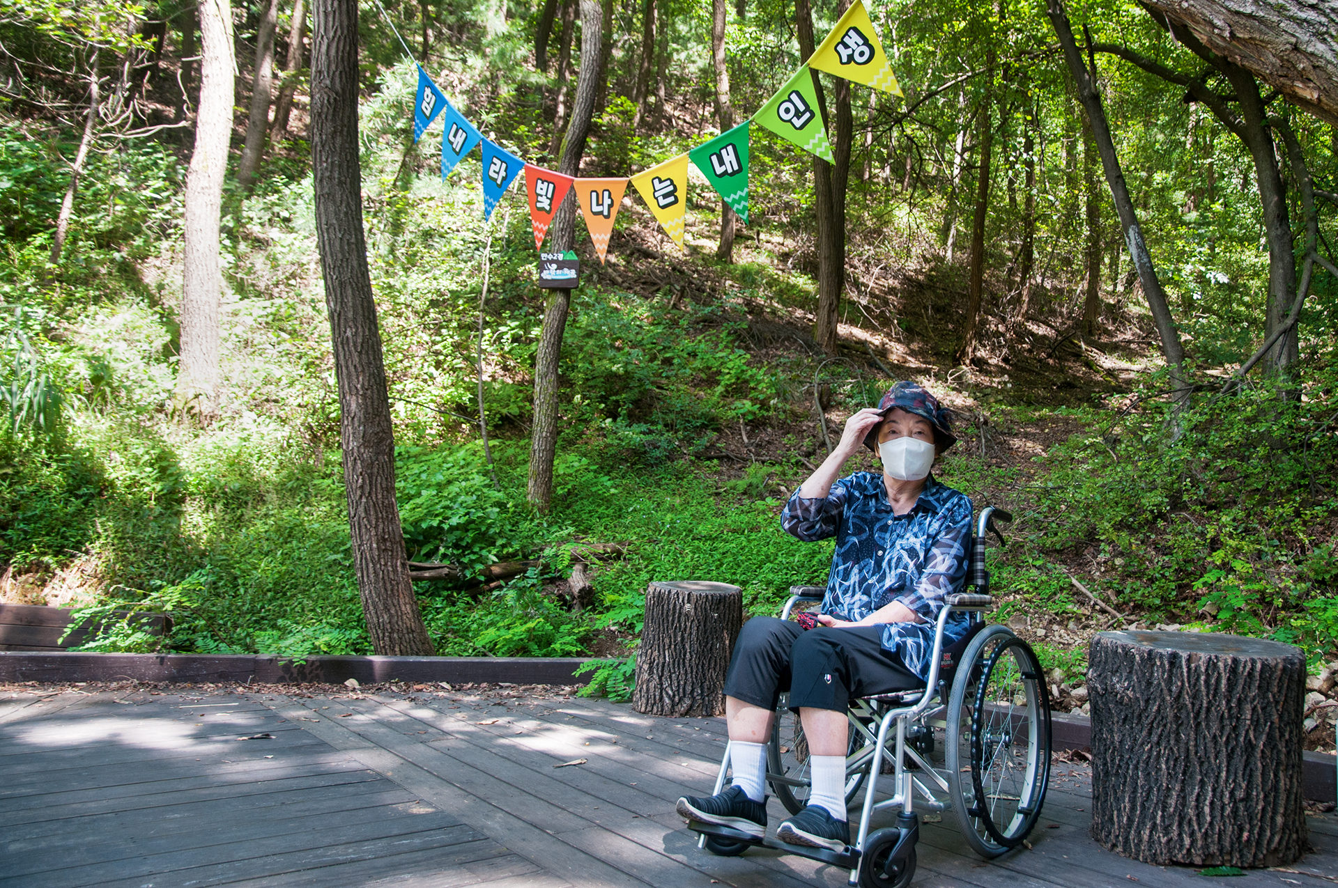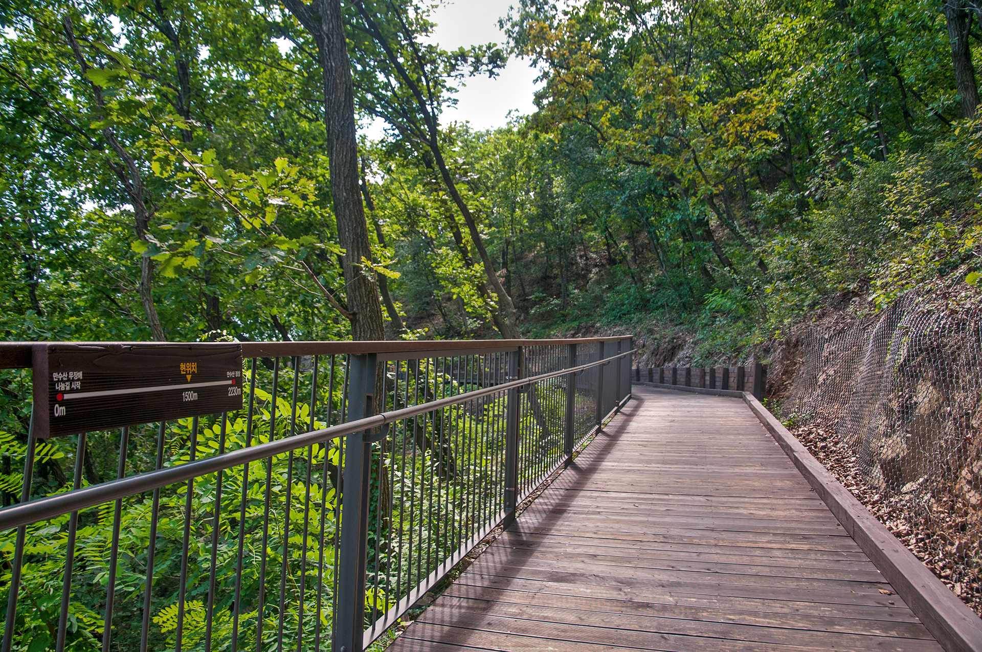 무장애나눔길은 장애인, 노약자, 임산부, 영유아 등의 교통약자 및 구민 모두가 안전하게 숲의 혜택을 함께 누릴수 있도록 계단없이 만들어진 등산로를 말한다. 무려 그 길이가 2,230m로 전국 최장의 무장애나눔길이라고 한다.