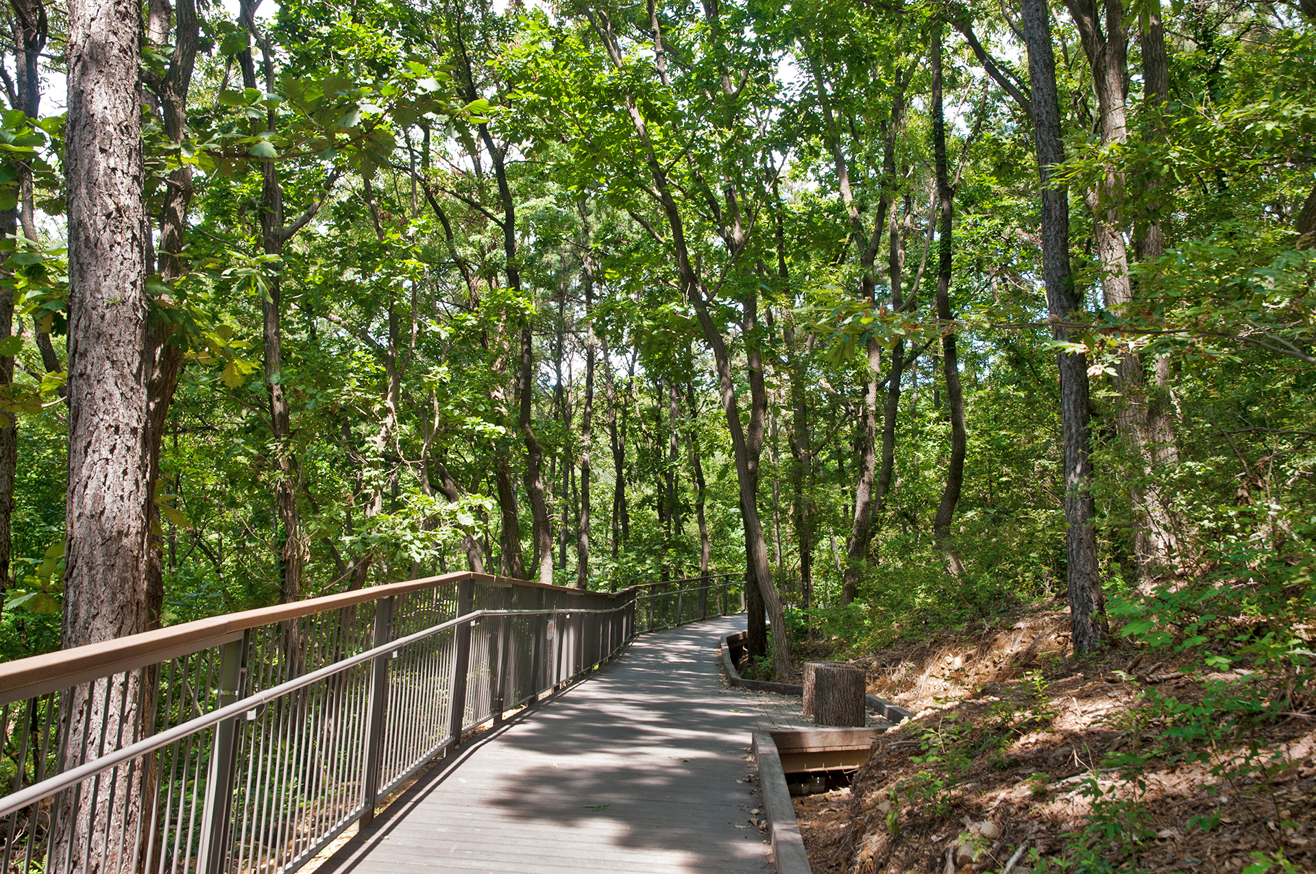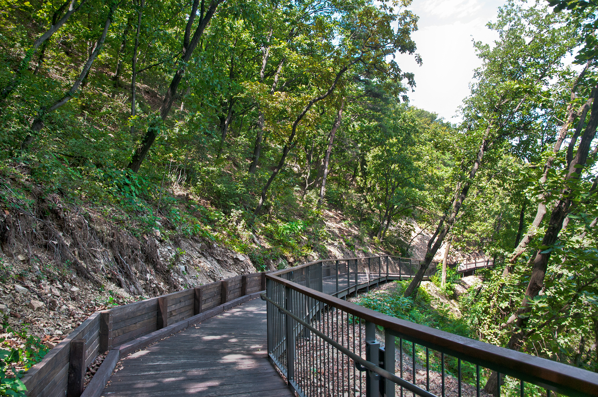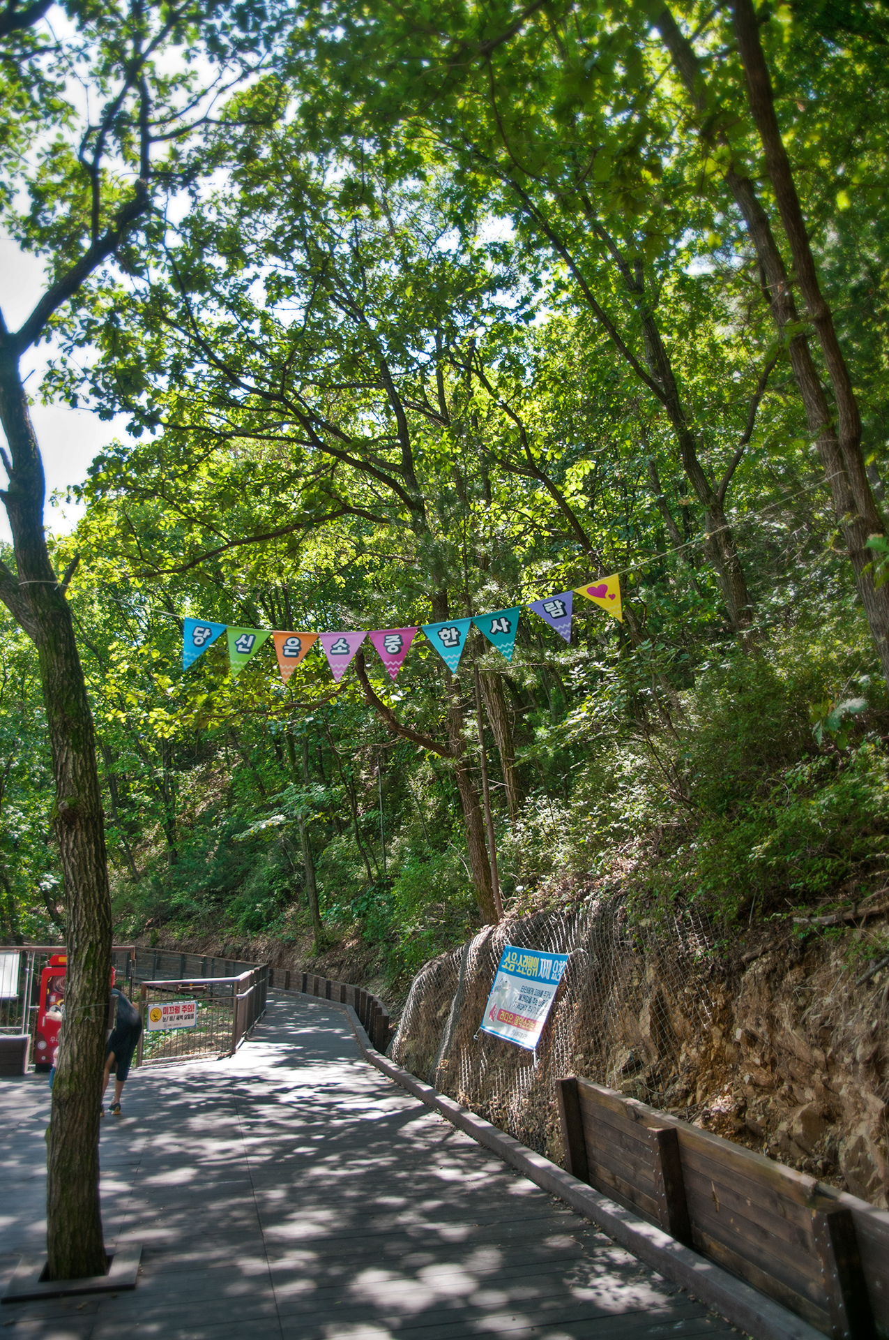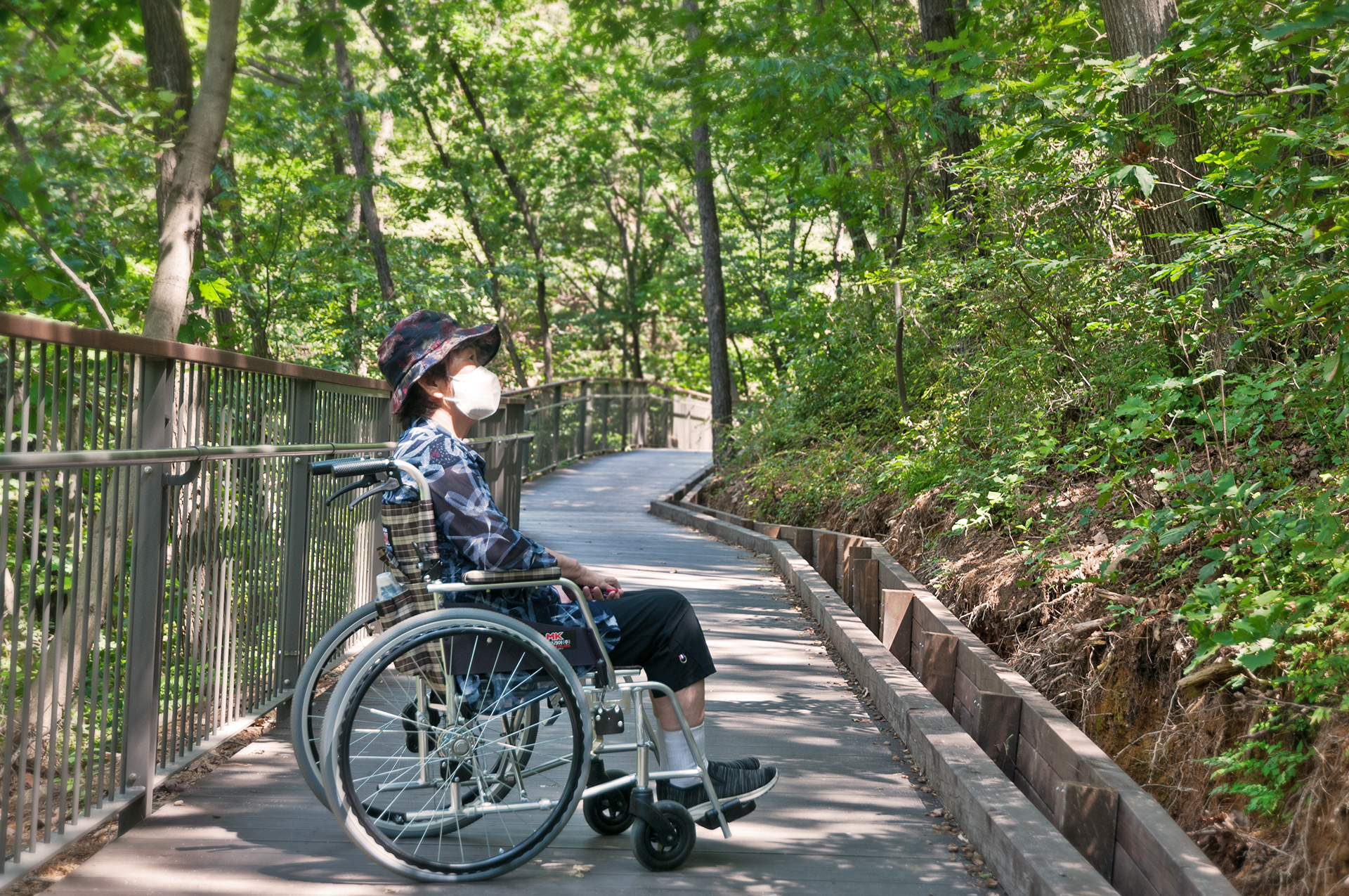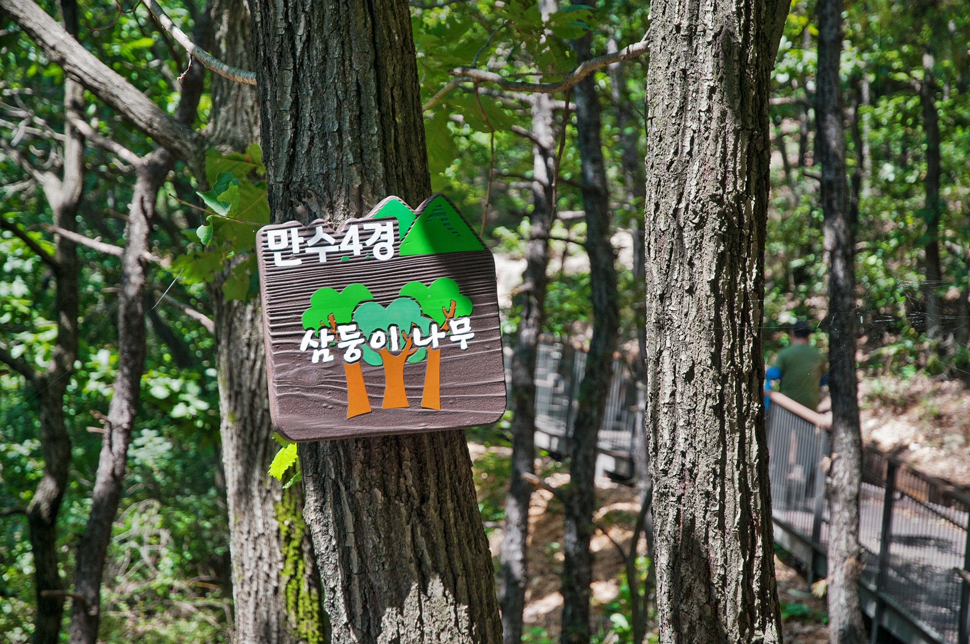 무장애나눔길은 장애인, 노약자, 임산부, 영유아 등의 교통약자 및 구민 모두가 안전하게 숲의 혜택을 함께 누릴수 있도록 계단없이 만들어진 등산로를 말한다. 무려 그 길이가 2,230m로 전국 최장의 무장애나눔길이라고 한다.
