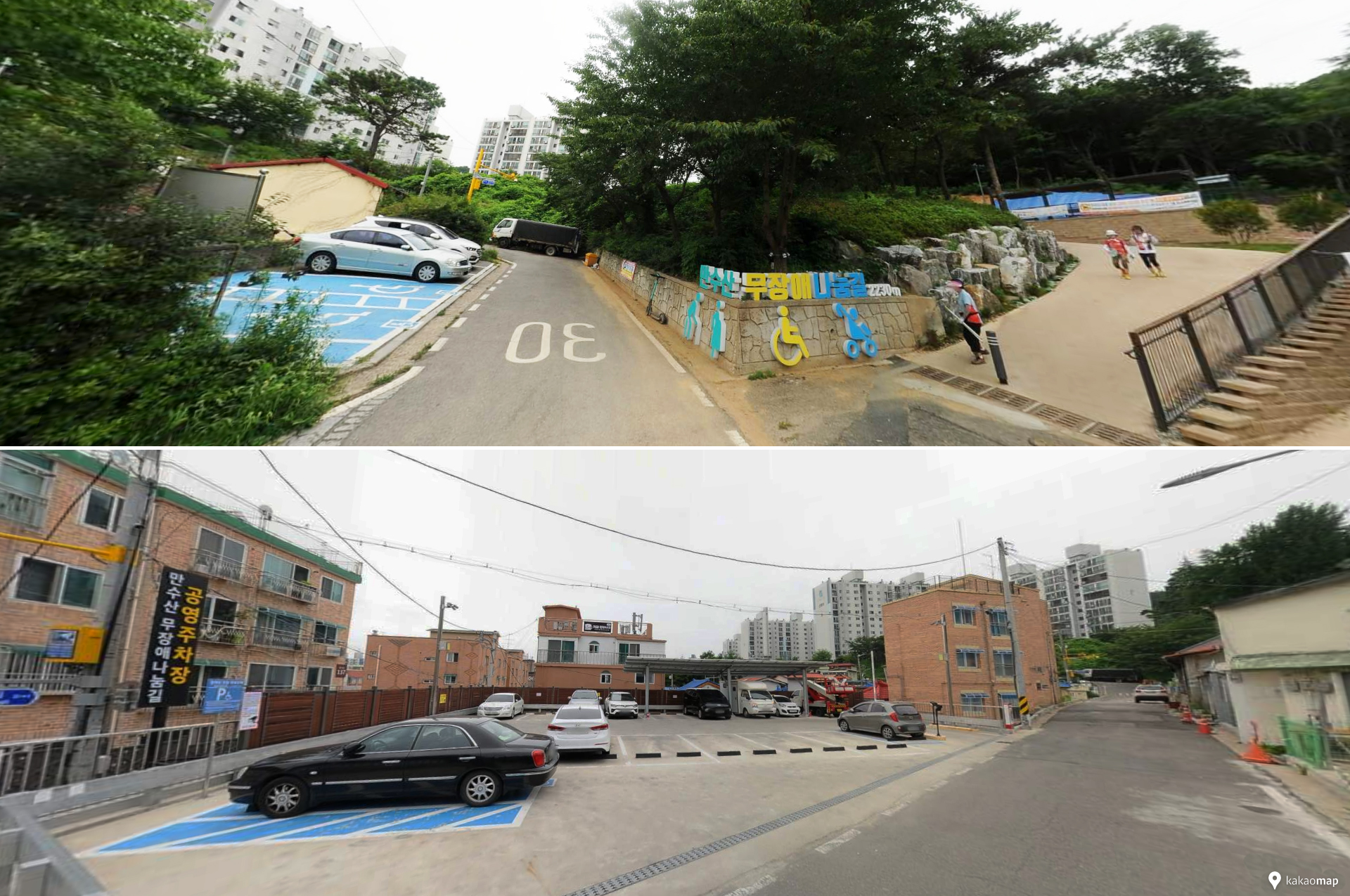 위) 만부3호공영주차장 (장애인2칸, 일반3칸)