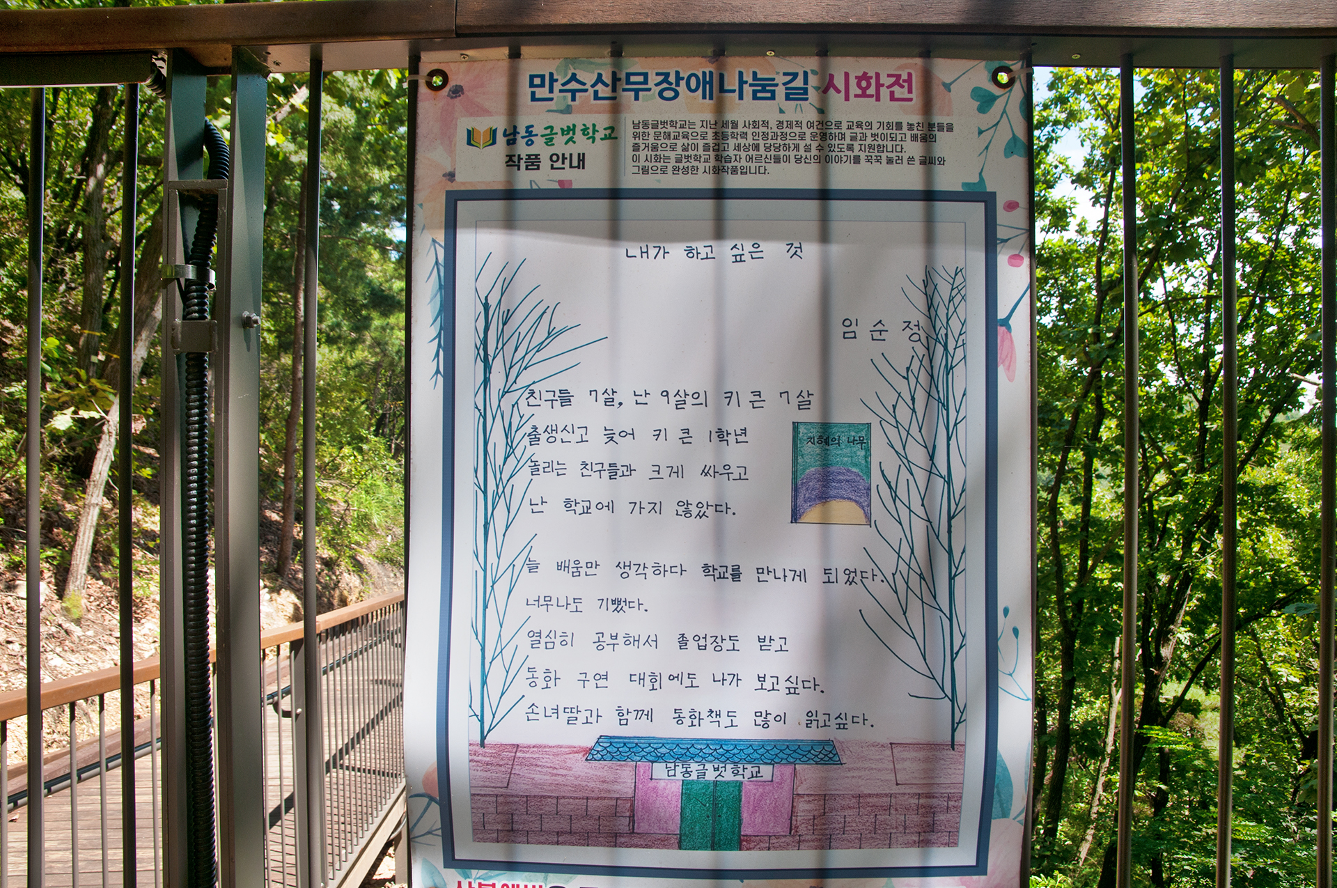 난간에는 남동글벗학교 어르신들의 시화 작품들이 걸려있으니 쉬면서 읽어볼만 하다.