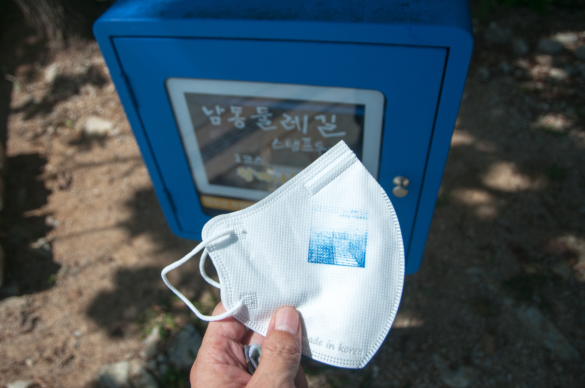 이 길은 남동둘레길 1코스로 스템프함도 이곳에 위치해 있다. 기념으로 엄니 마스크에 꾹~