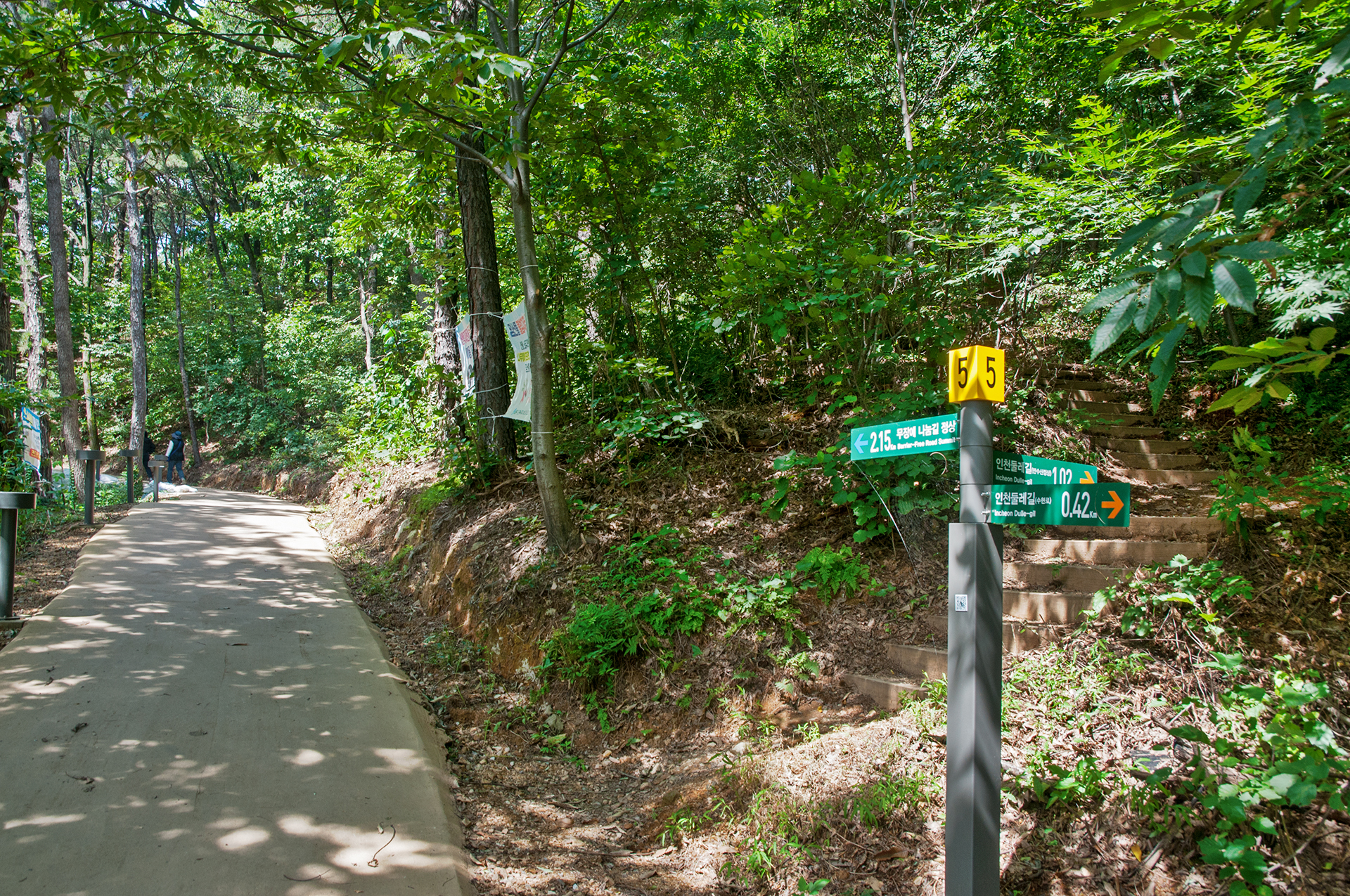 여기만 올라가면 휠체어도 쉽게 갈수 있는 무장애나눔길이 조성되어 있다.