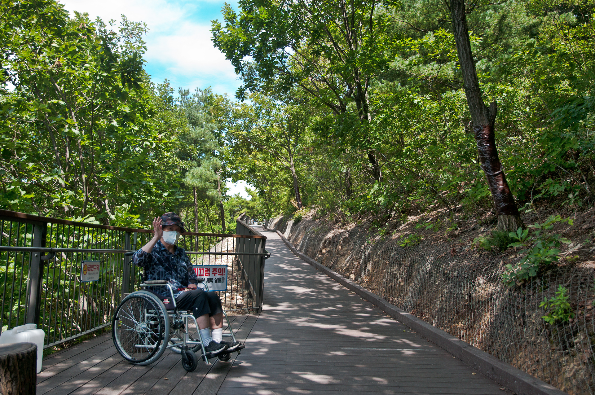 반면 아직까지는 힘들지는 않은데 이대로 정상까지 가다보면 휠체어 운전자는 지칠수도 있겠다 싶었다.