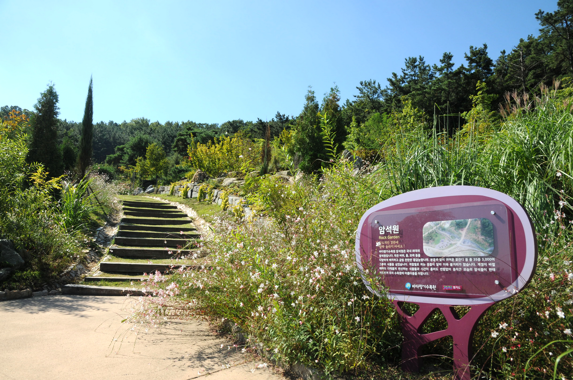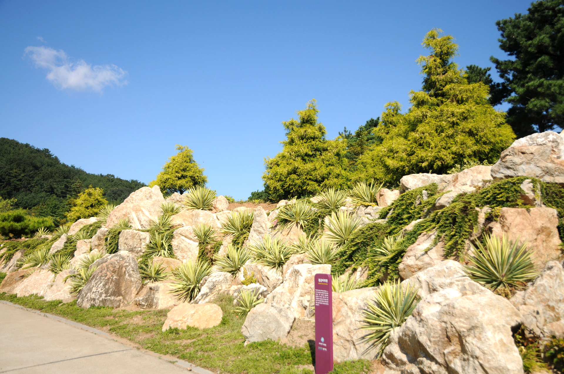 국내 최대의 암석원으로 작은 바위, 돌, 모래 등이 다양하게 배치된 가운데 황금눈향나무가 식재되어 있는 곳이다.