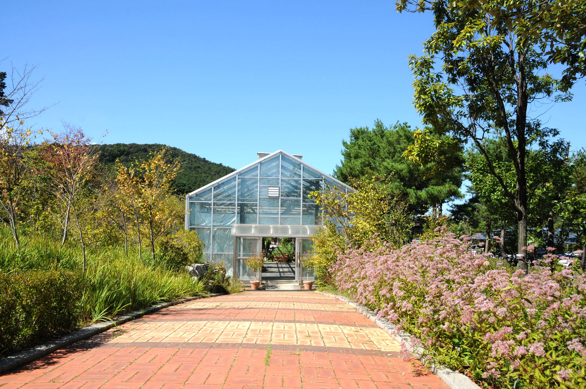 수목원 입구 방문자센터 앞에는 다양한 가을꽃이 만발한 고래화단이 있다.