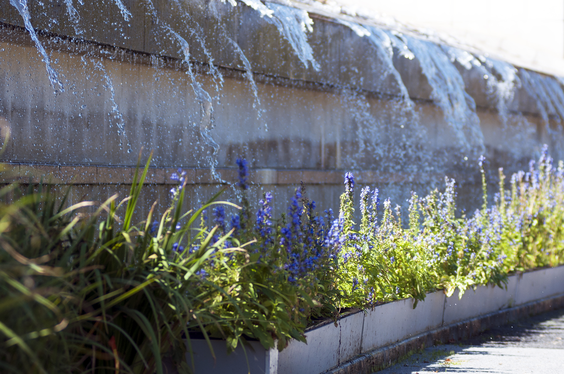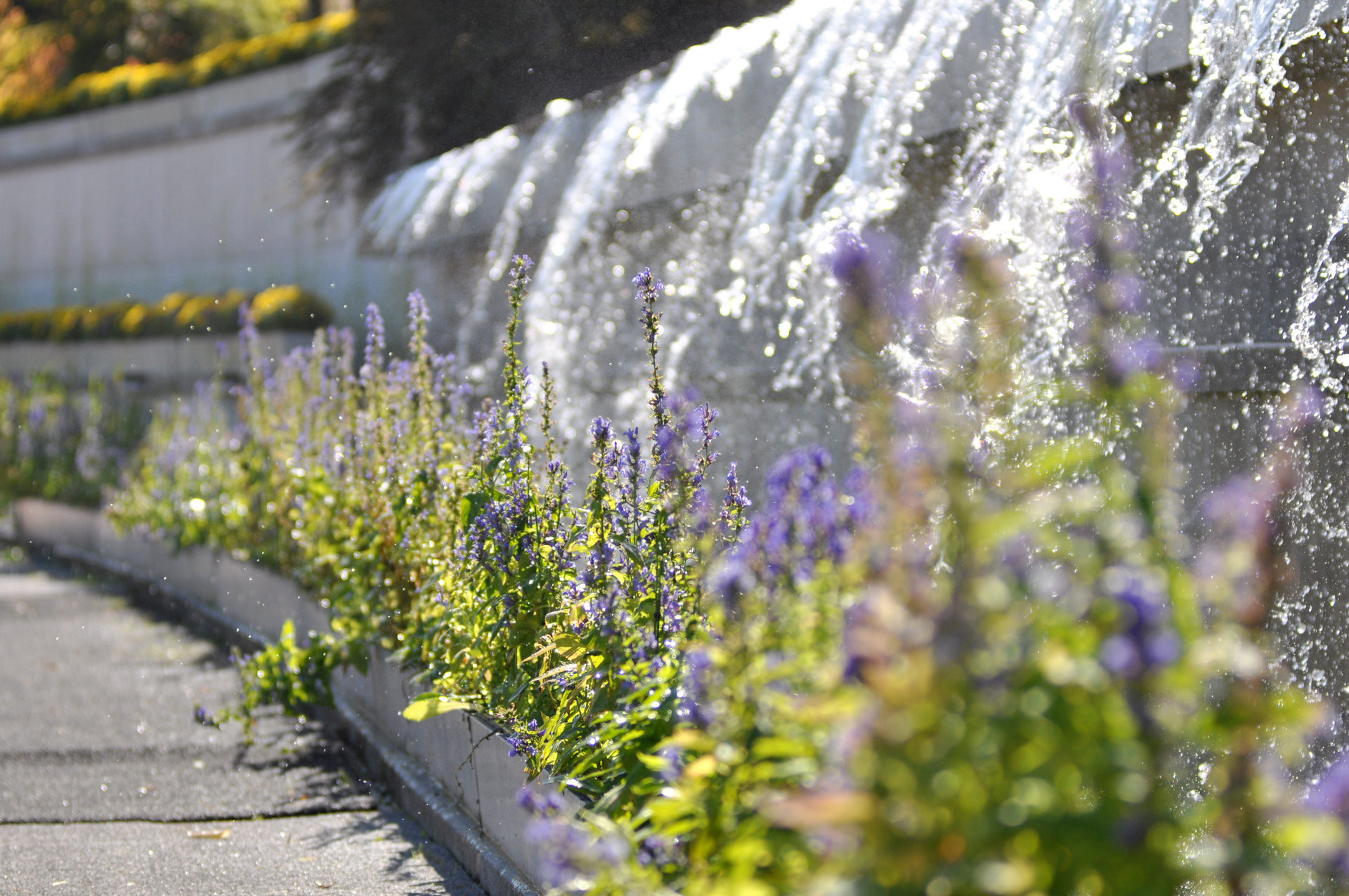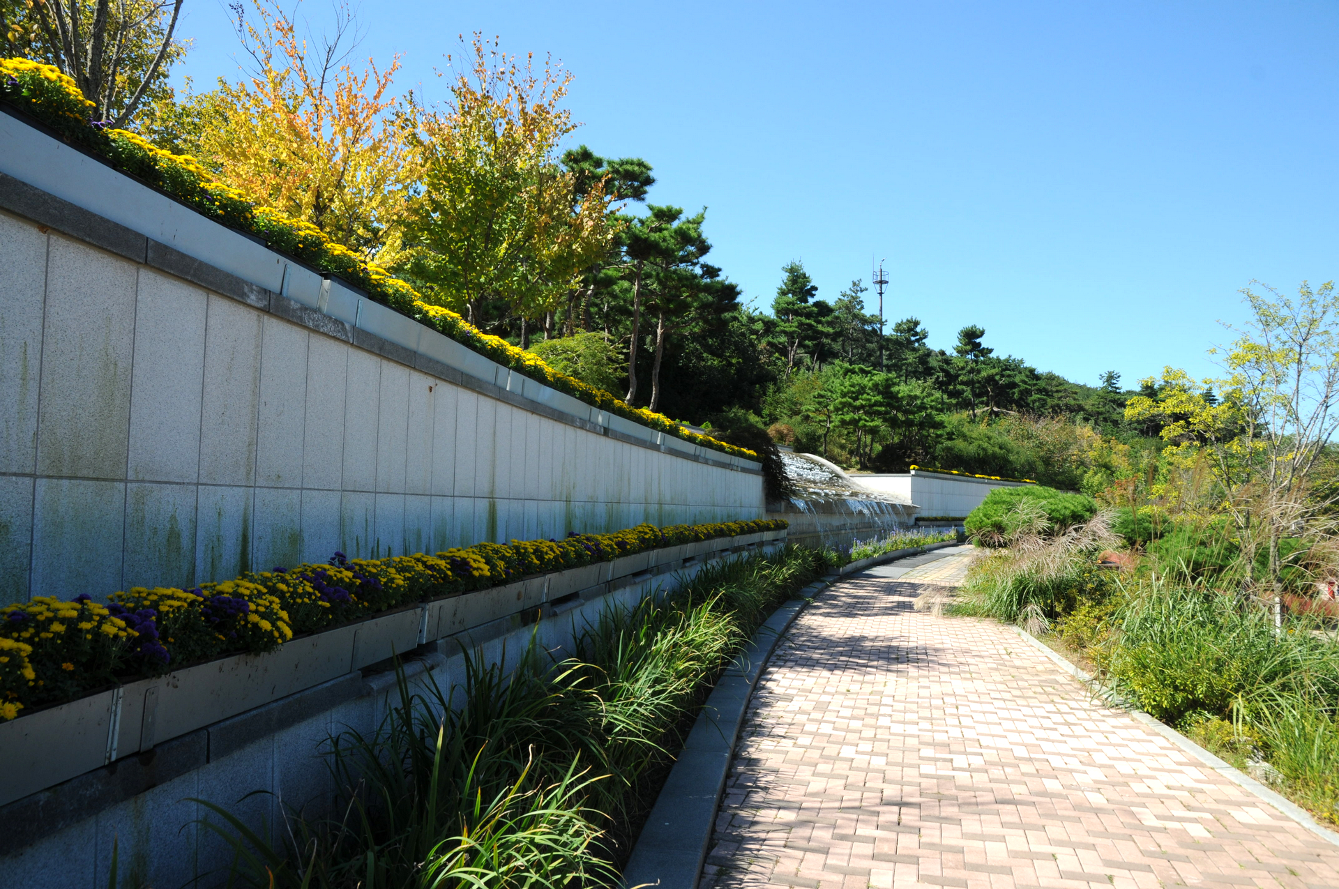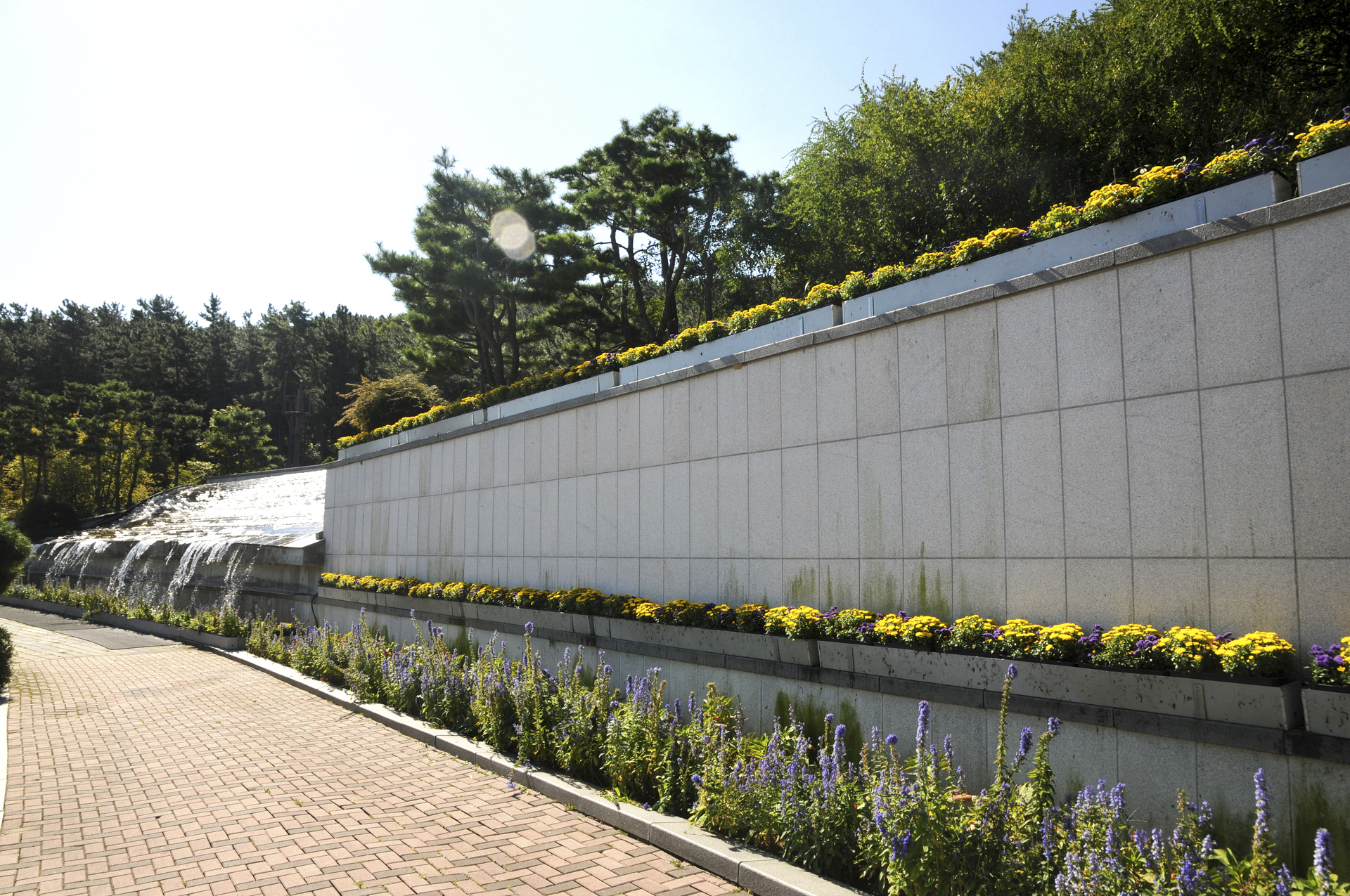 꽃으로 장식한 벽천의 모습