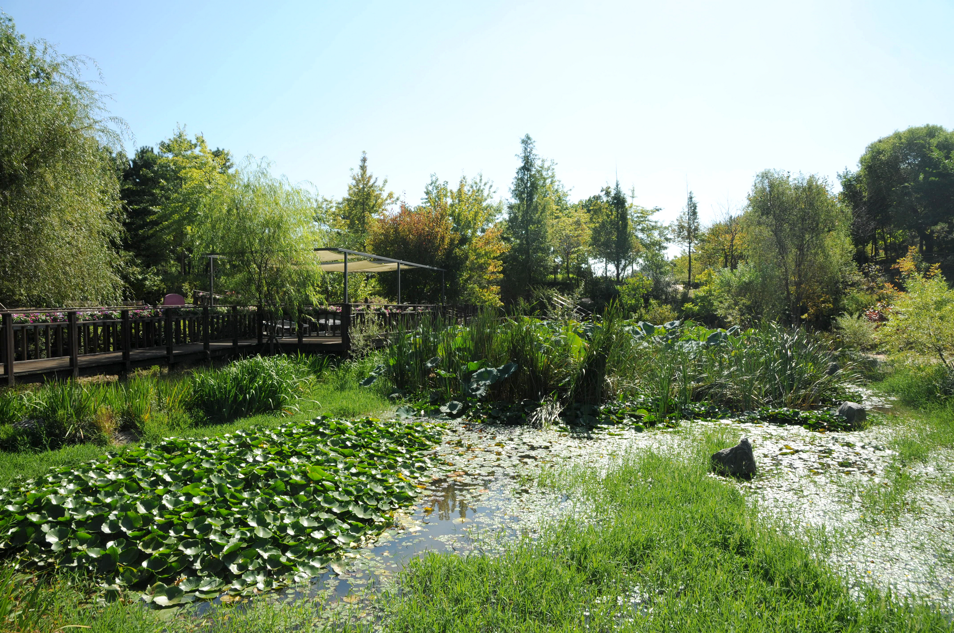 인공 연못 12개를 모두 연결하여 물이 순환할수 있도록 설계되되 있고, 가까이서 연꽃을 감상할수 있도록 관찰로를 만들었다. 이곳에서도 연꽃은 볼수 없었음.