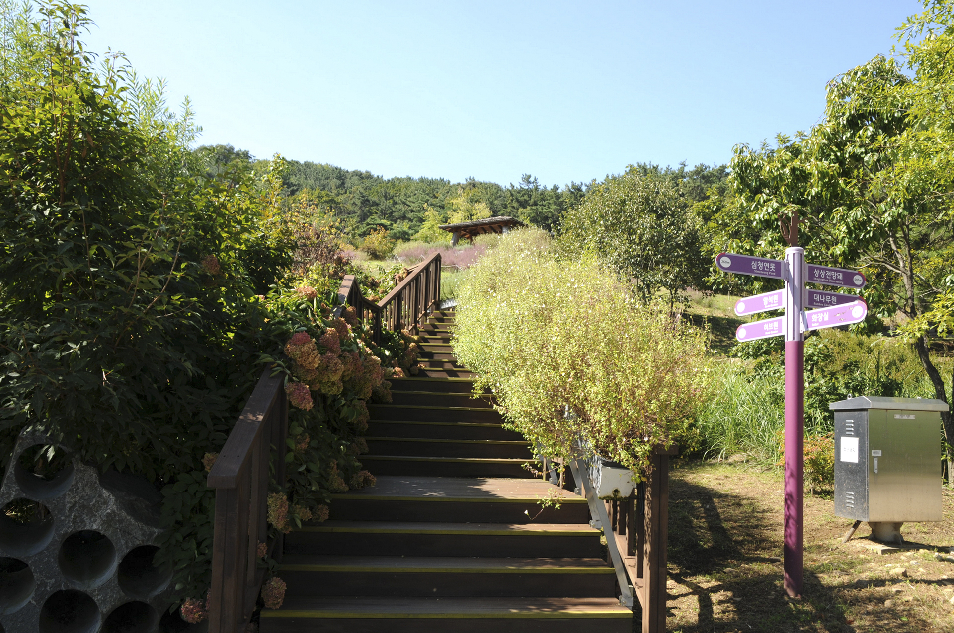 허브원과 암석원으로 가는 계단길, 계단이 힘든 분들이라면 대나무원 방향으로 올라가도 허브원으로 갈수 있다.