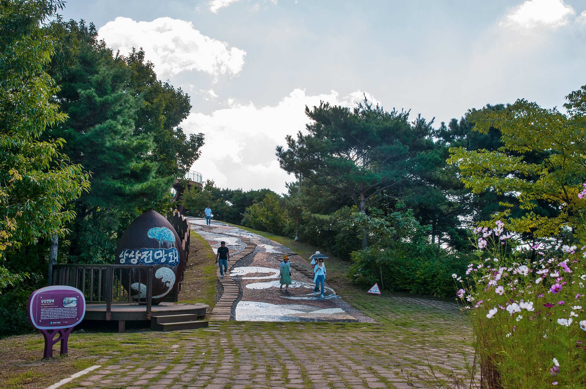상상전망돼로 가는 길, 휴일이라 많은 방문객들이 찾아왔다.