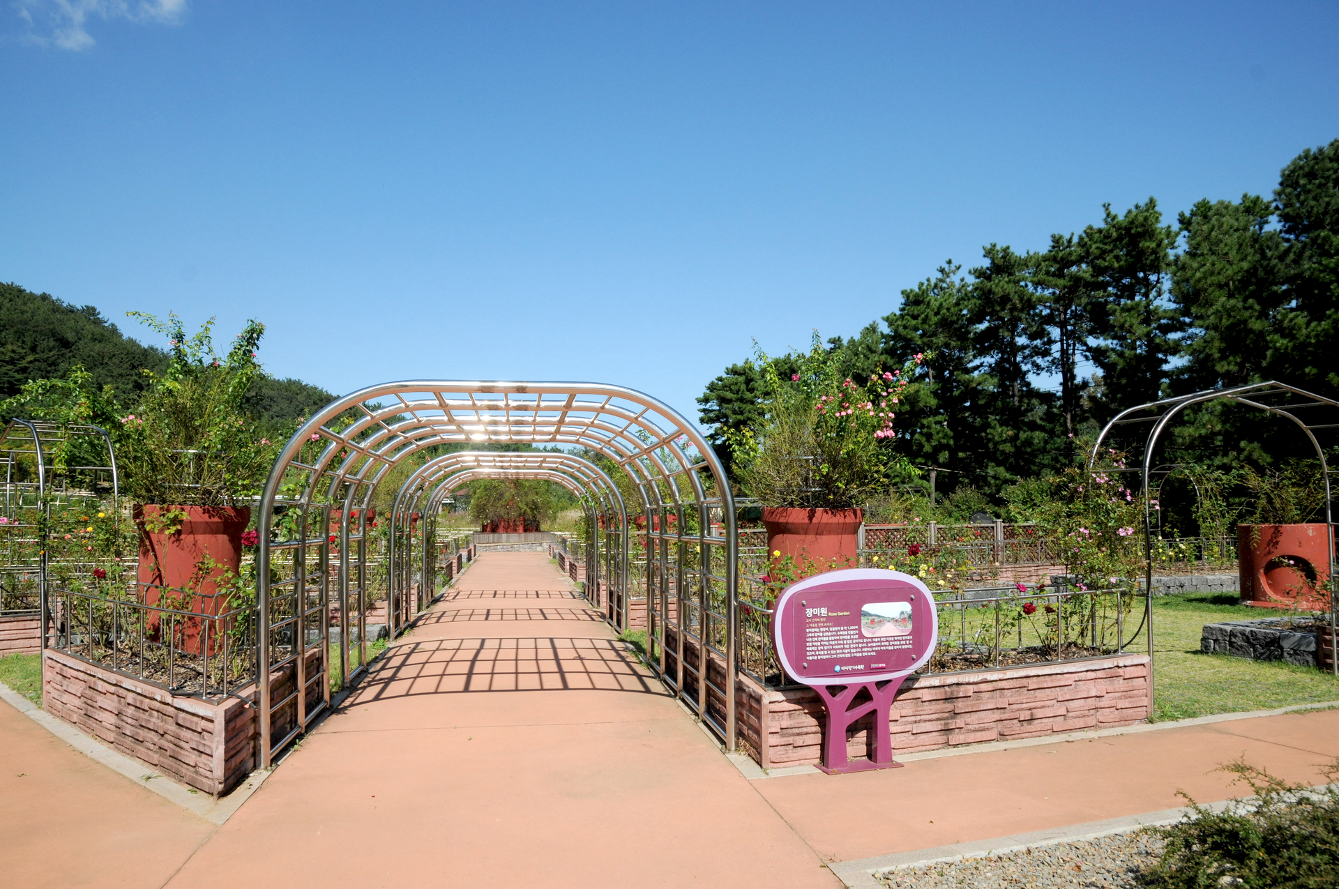 황금바위원 옆에는 땅장미, 덩굴장미 등 1,300여 그루의 장미를 심겨져 있는 장미원이 위치해 있다.