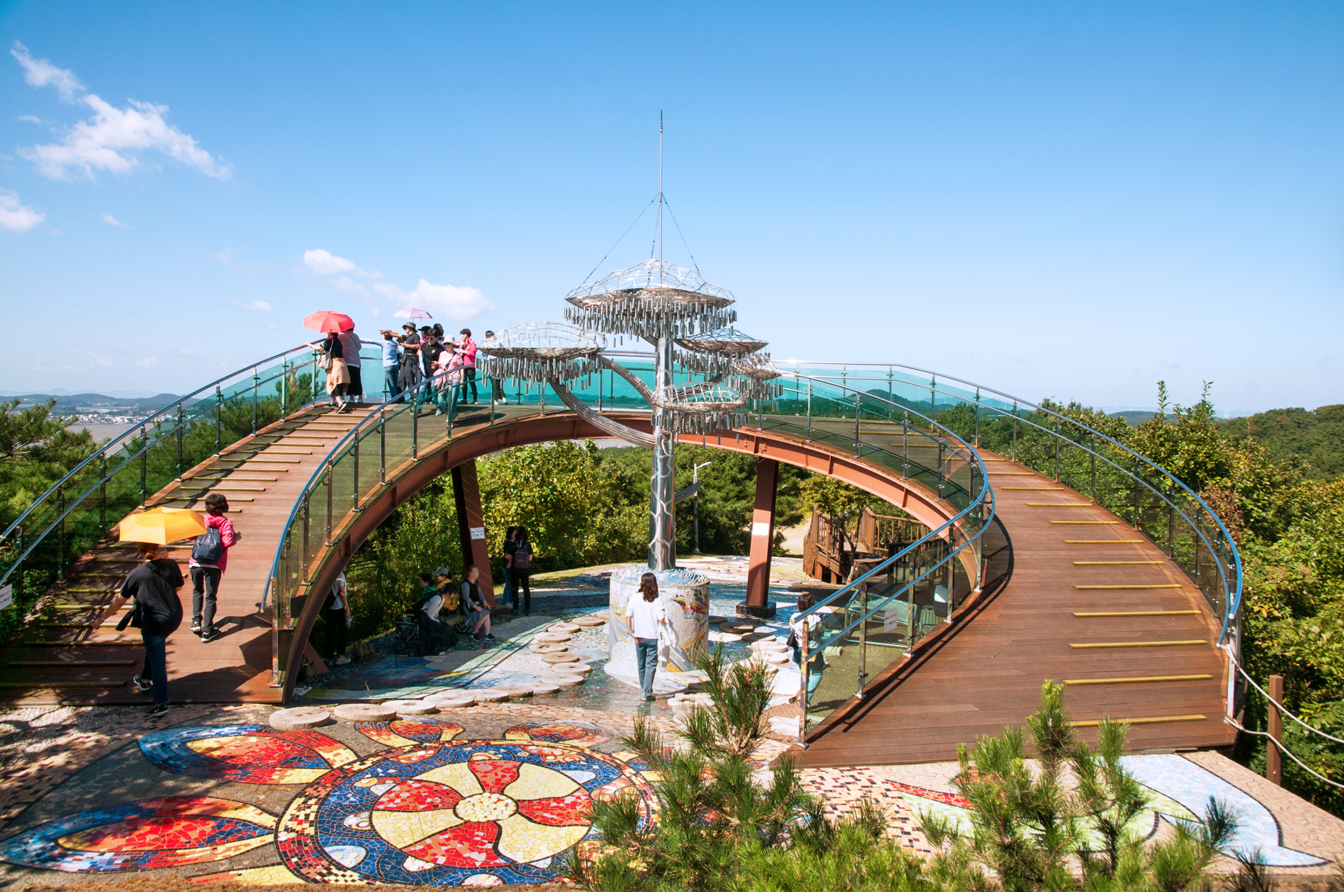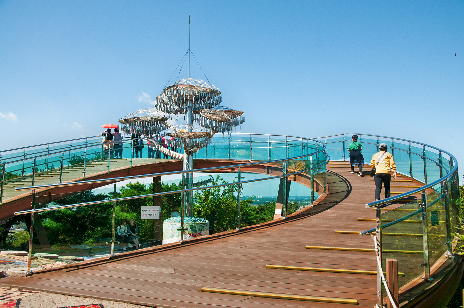 아래에서는 완전하게 보이지 않던 '소리나는 꿈나무'가 전망대 한 가운데 세워져 있다.