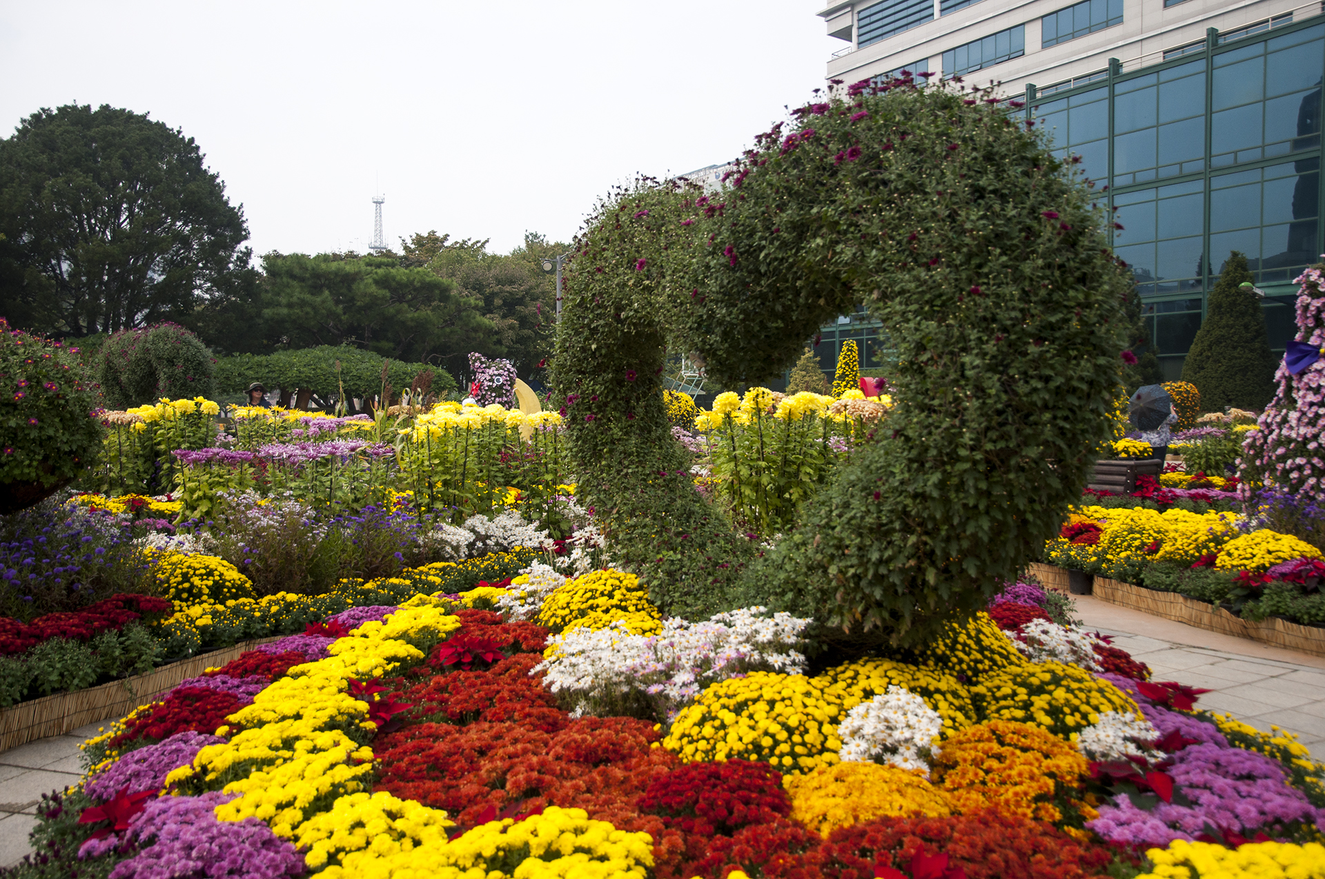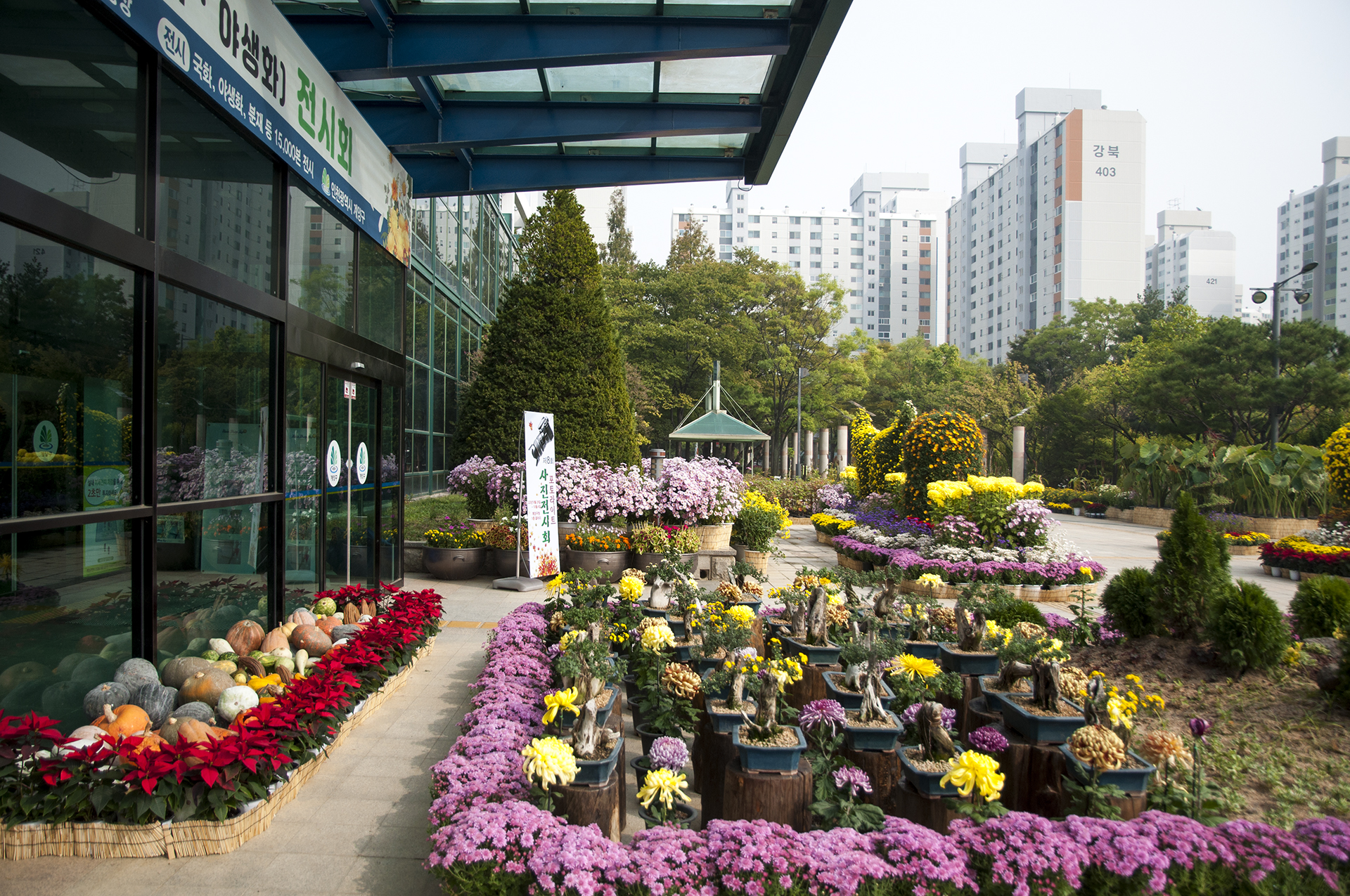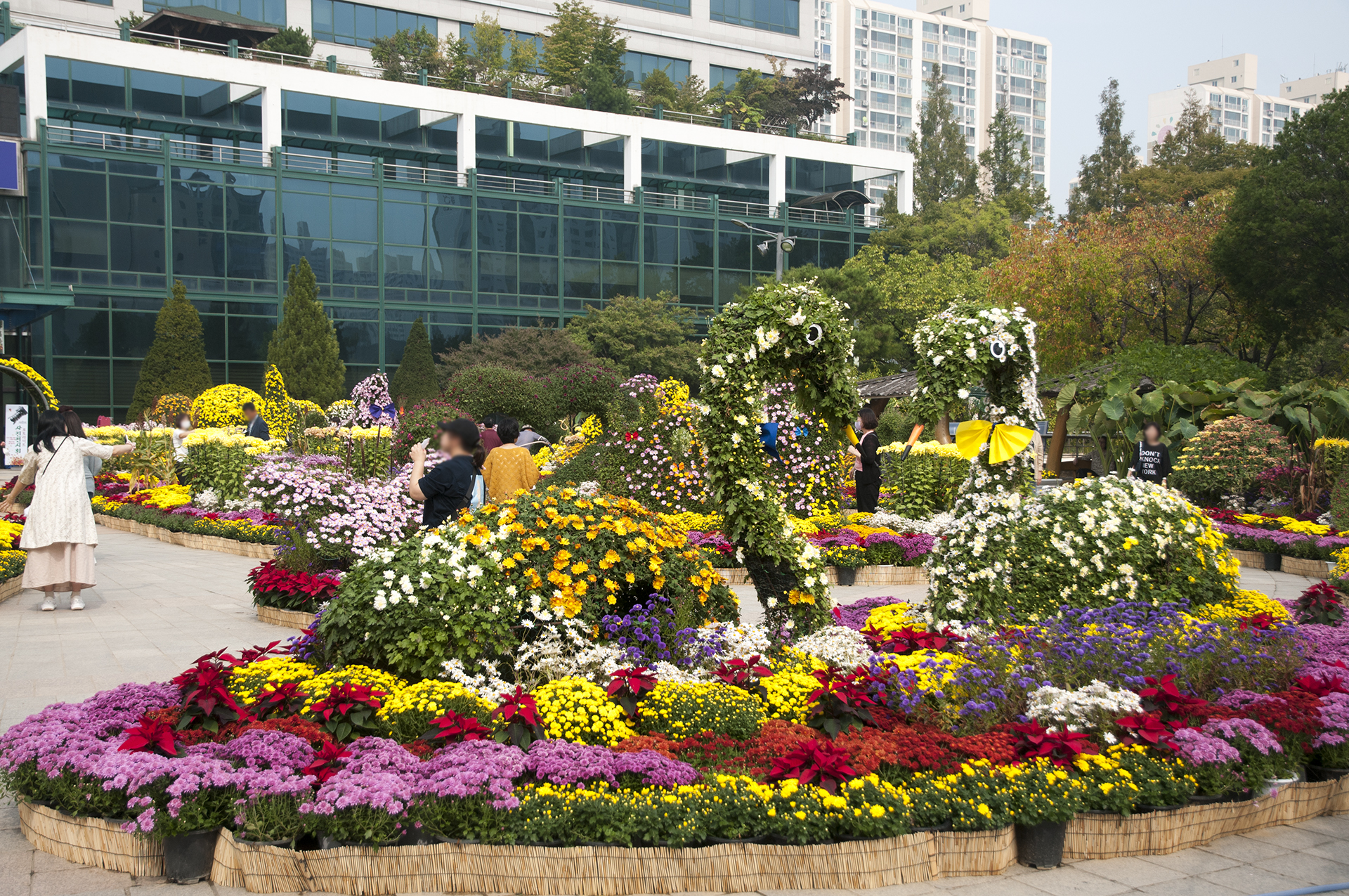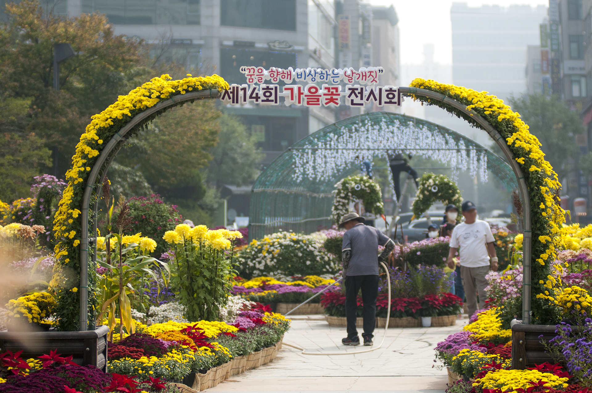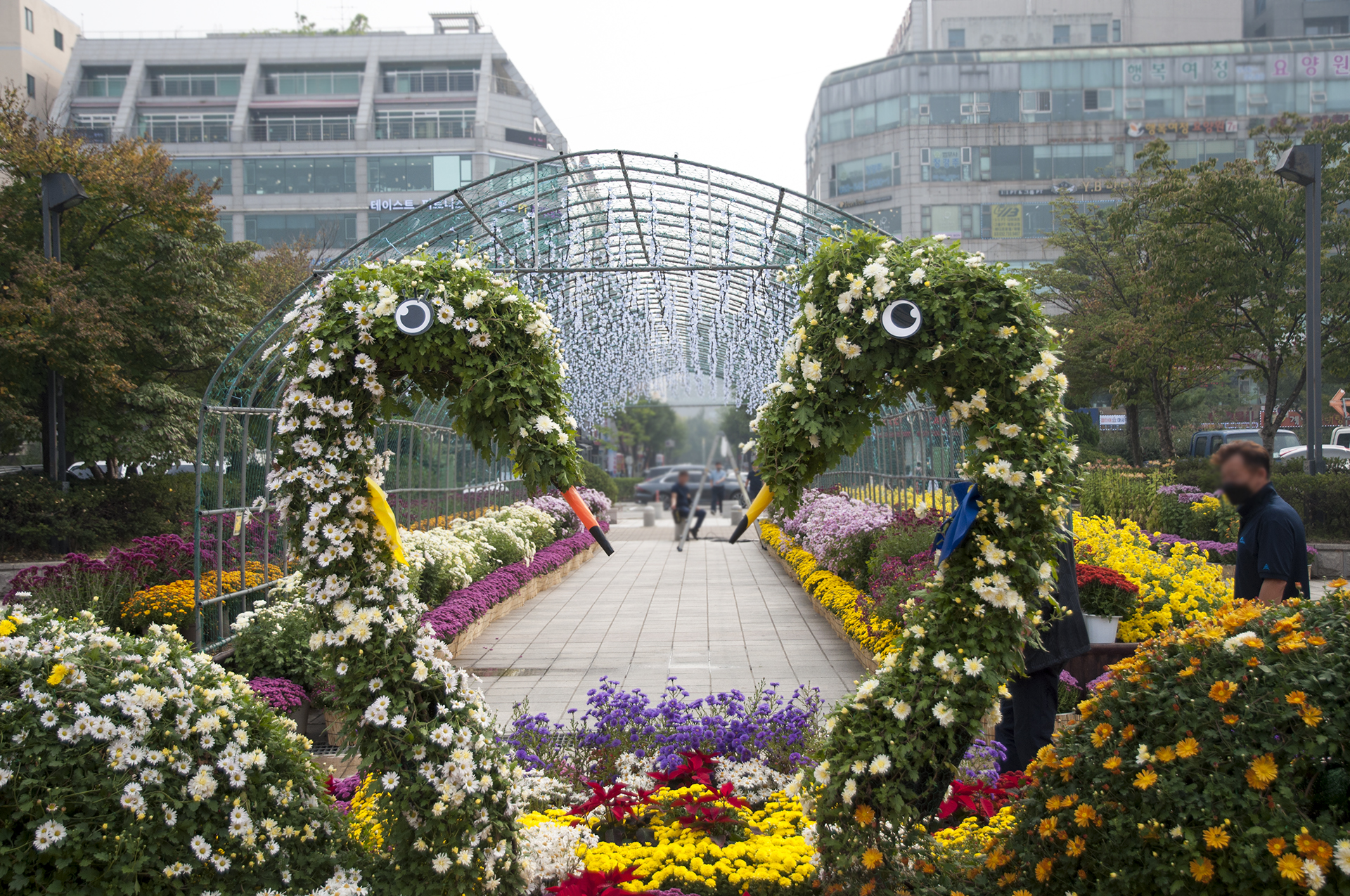 작년에는 계양꽃마루에 국화를 전시했었는데, 올해는 구청 광장에 국화와 야생화, 분재 등 15,000본을 전시하였다.
